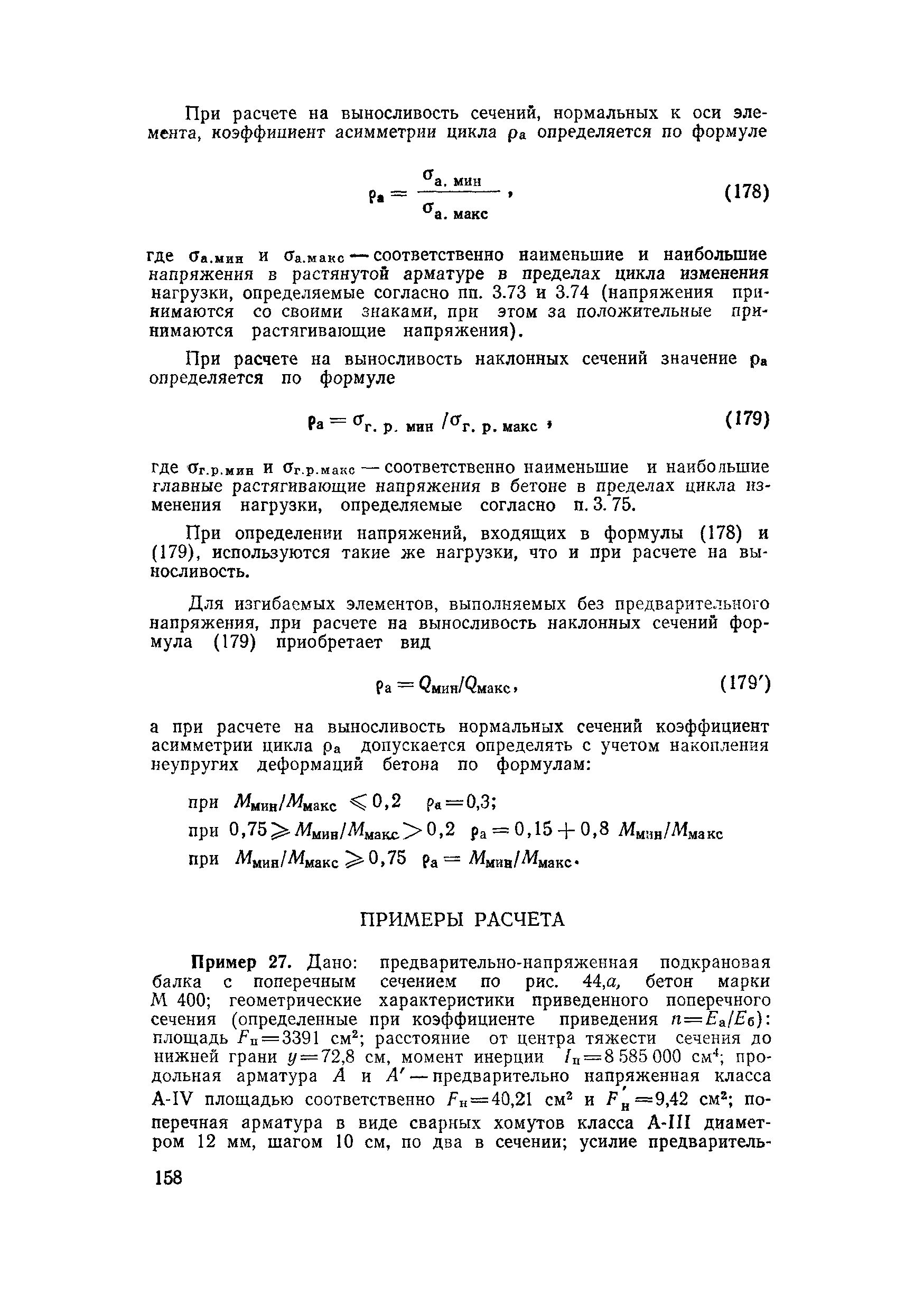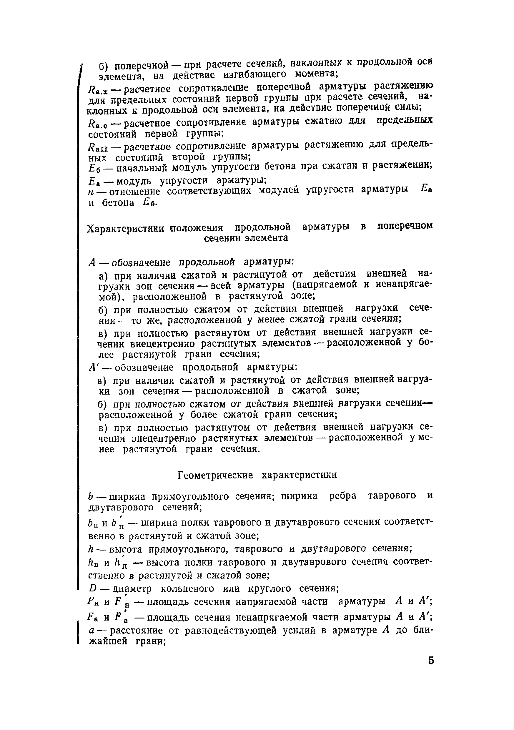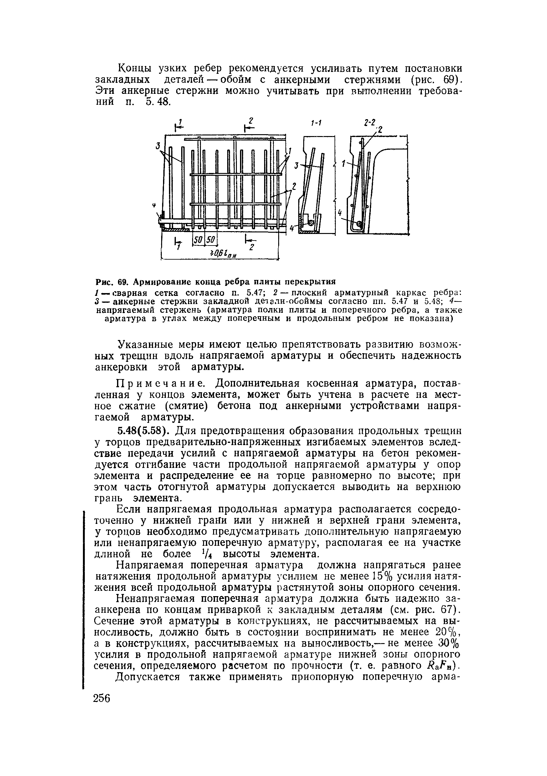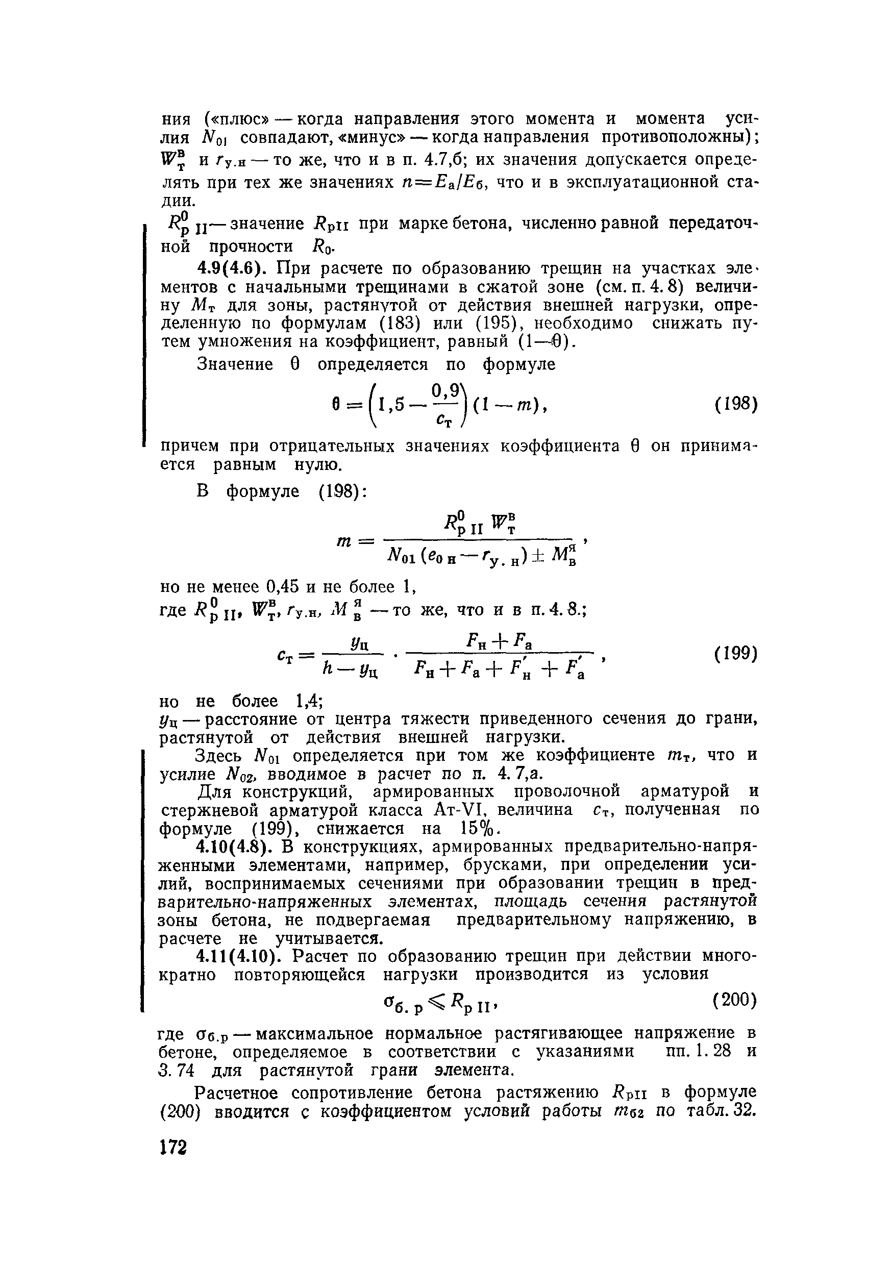 | Оглавление: | Предисловие Основные буквенные обозначения 1. Общие указания Основные положения Основные расчетные требования Предварительные напряжения в железобетонных конструкциях Примеры расчета 2. Материалы для железобетонных конструкций Бетон Нормативные и расчетные характеристики бетона Арматура Нормативные и расчетные характеристики арматуры 3. Расчет элементов железобетонных конструкций по предельным состояниям первой группы Расчет железобетонных элементов по прочности Общие указания Изгибаемые элементы Расчет сечений, нормальных к продольной оси элемента Прямоугольные сечения Тавровые и двутавровые сечения Тавровые и двутавровые сечения Элементы, работающие на косой изгиб Общий случай расчета нормальных сечений изгибаемых элементов Расчет сечений, наклонных к продольной оси элемента Расчет элементов постоянного по длине сечения, армированных хомутами без отгибов Расчет элементов постоянного сечения с отогнутыми стержнями Расчет элементов с переменной высотой сечения Расчет элементов без поперечного армирования Расчет наклонных сечений по поперечной силе при косом изгибе Расчет наклонных сечений по изгибающему моменту Внецентренно сжатые элементы Учет влияния прогиба элемента Расчет элементов симметричного сечения при расположении продольной силы в плоскости симметрии Кольцевые сечения Расчет элементов на воздействие предварительного обжатия Центрально и внецентренно растянутые элементы Центрально растянутые элементы Внецентренно растянутые элементы Расчет элементов прямоугольного сечения при расположении продольной силы в плоскости оси симметрии Расчет сечений, наклонных к продольной оси элементов Элементы, работающие на кручение с изгибом Элементы прямоугольного сечения Элементы таврового, двутаврового и других сечений, имеющих входящие углы Элементы кольцевого сечения с продольной арматурой, равномерно распределенной по окружности Примеры расчета Расчет железобетонных конструкций на выносливость Примеры расчета 4. Расчет элементов железобетонных конструкций по предельным состояниям второй группы Расчет железобетонных элементов по образованию трещин Расчет по образованию трещин, нормальных к продольной оси элемента Расчет по образованию трещин, наклонных к продольной оси элемента Расчет железобетонных элементов по раскрытию трещин Расчет по раскрытию трещин, нормальных к продольной оси элемента Расчет по раскрытию трещин, наклонных к продольной оси элемента Расчет железобетонных элементов по закрытию трещин Расчет по закрытию трещин, нормальных к продольной оси элемента Расчет по закрытию трещин, наклонных к продольной оси элемента Расчет элементов железобетонных конструкций по деформациям Определение кривизны железобетонных элементов на участках без трещин в растянутой зоне Определение кривизны железобетонных элементов на участках с трещинами в растянутой зоне Определение прогибов Определение продольных деформаций Приближенные методы расчета деформаций Примеры расчета 5. Конструктивные требования Общие требования Габариты и очертания элементов конструкций Защитный слой бетона Минимальные расстояния между стержнями арматуры Анкеровка арматуры Анкеровка напрягаемой арматуры Указания по армированию железобетонных элементов Продольное арм