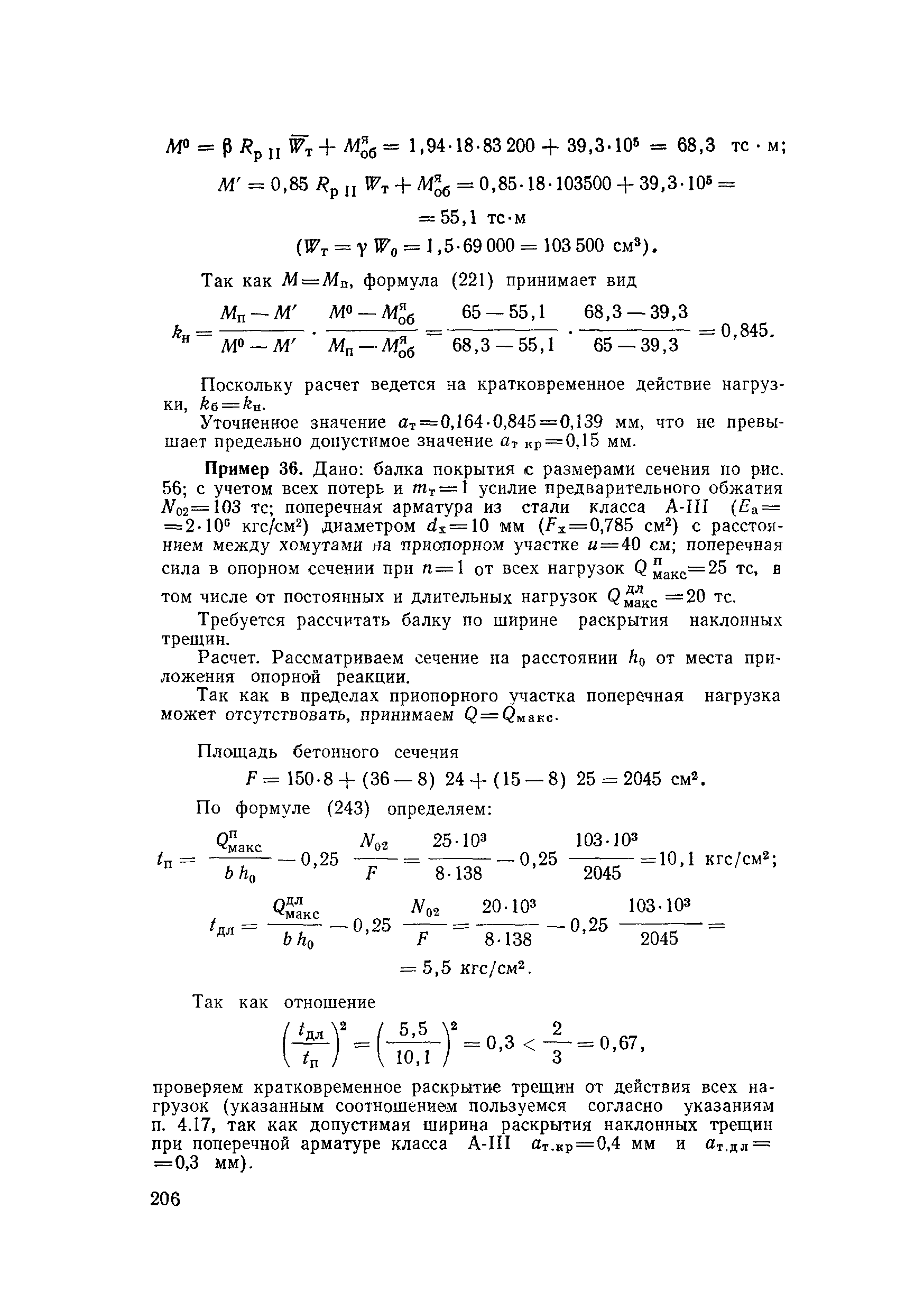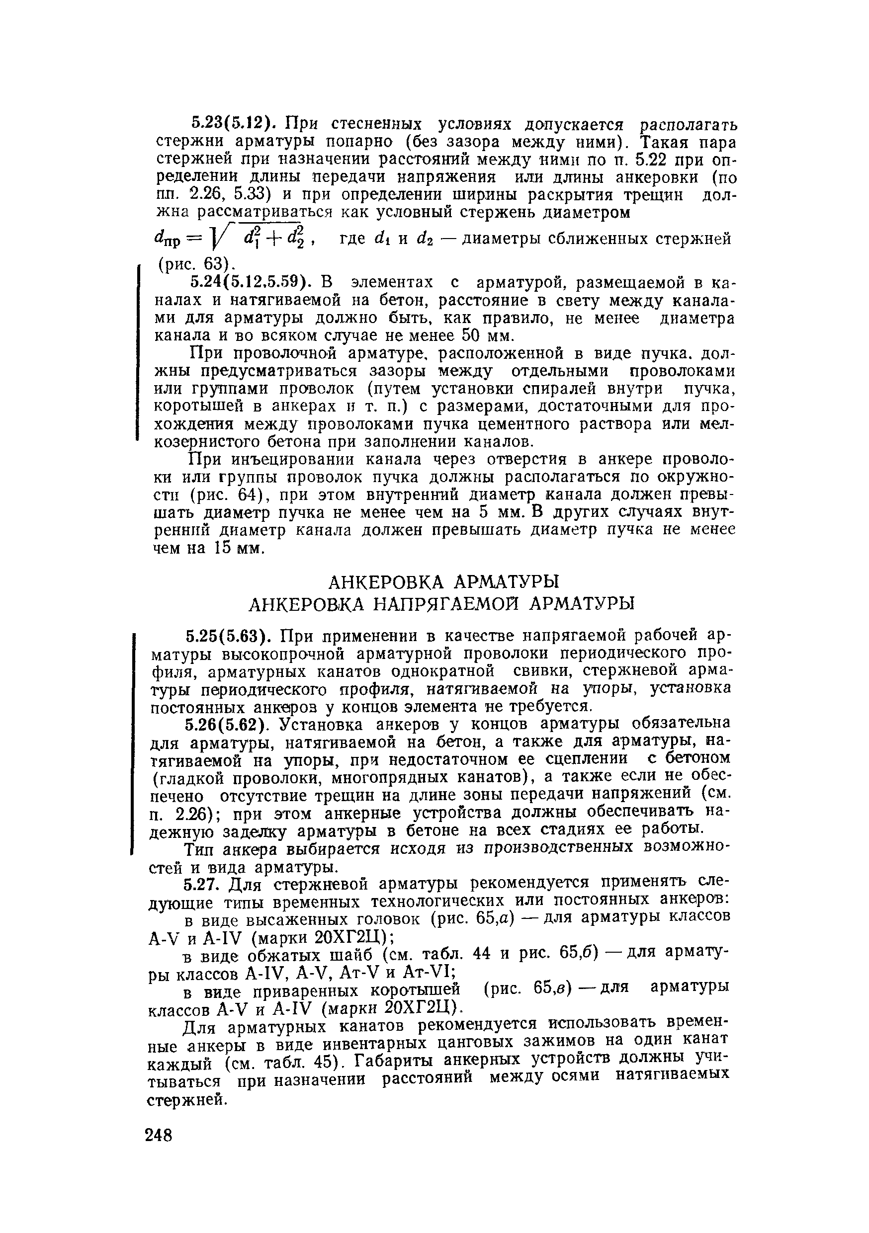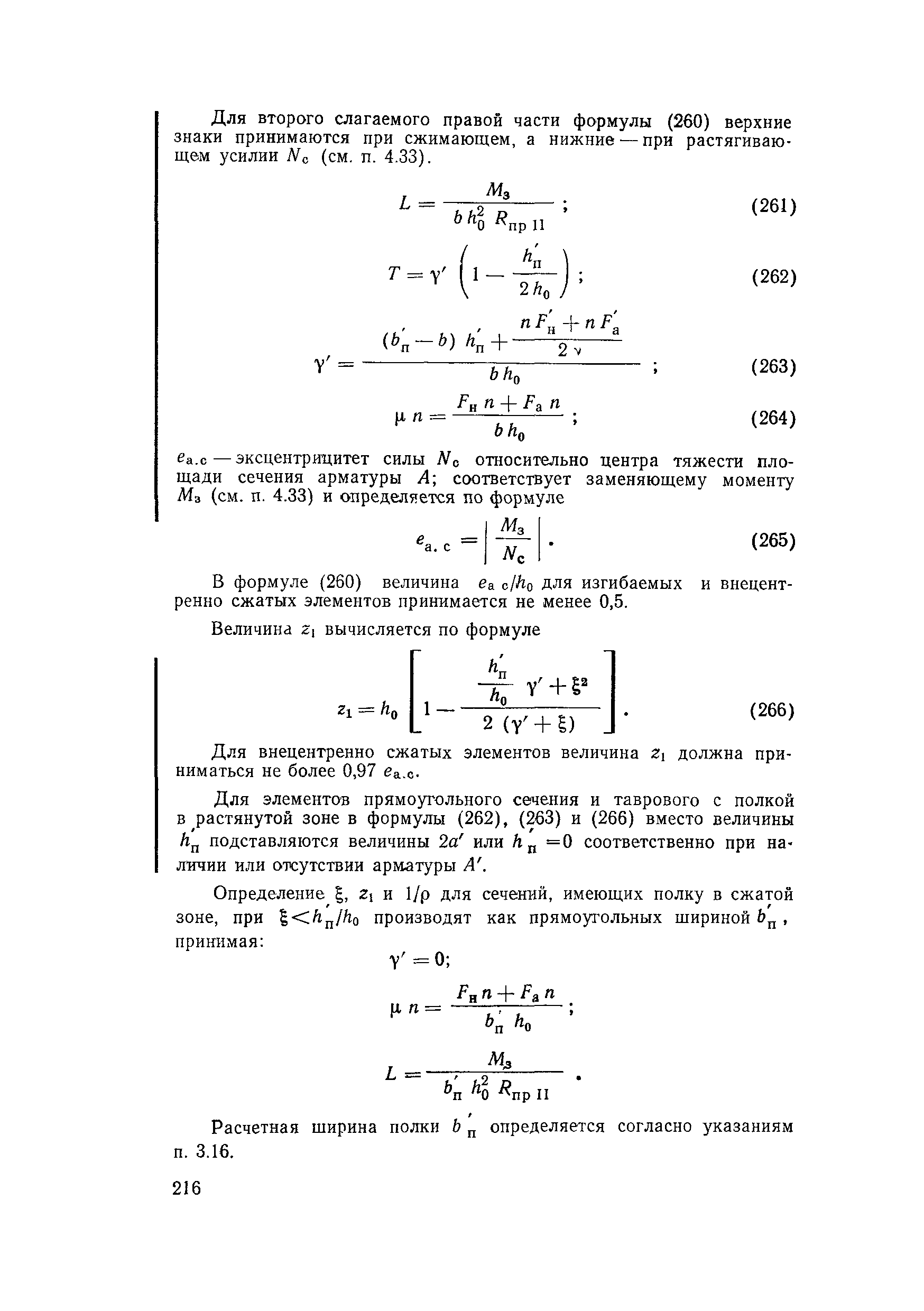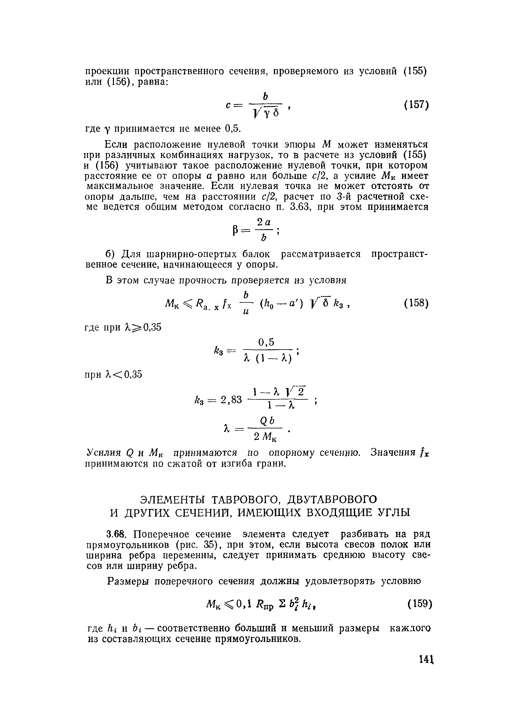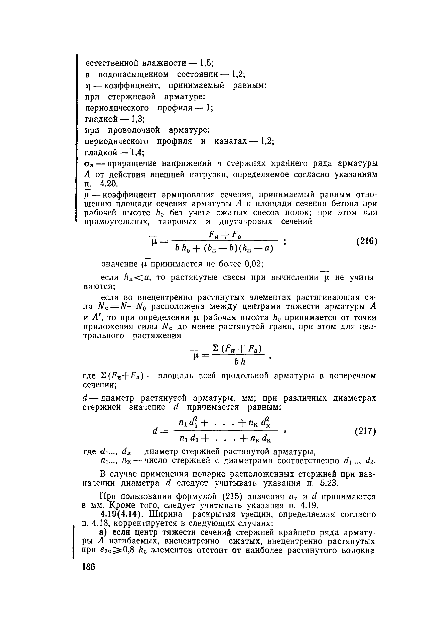 | Оглавление: | Предисловие Основные буквенные обозначения 1. Общие указания Основные положения Основные расчетные требования Предварительные напряжения в железобетонных конструкциях Примеры расчета 2. Материалы для железобетонных конструкций Бетон Нормативные и расчетные характеристики бетона Арматура Нормативные и расчетные характеристики арматуры 3. Расчет элементов железобетонных конструкций по предельным состояниям первой группы Расчет железобетонных элементов по прочности Общие указания Изгибаемые элементы Расчет сечений, нормальных к продольной оси элемента Прямоугольные сечения Тавровые и двутавровые сечения Тавровые и двутавровые сечения Элементы, работающие на косой изгиб Общий случай расчета нормальных сечений изгибаемых элементов Расчет сечений, наклонных к продольной оси элемента Расчет элементов постоянного по длине сечения, армированных хомутами без отгибов Расчет элементов постоянного сечения с отогнутыми стержнями Расчет элементов с переменной высотой сечения Расчет элементов без поперечного армирования Расчет наклонных сечений по поперечной силе при косом изгибе Расчет наклонных сечений по изгибающему моменту Внецентренно сжатые элементы Учет влияния прогиба элемента Расчет элементов симметричного сечения при расположении продольной силы в плоскости симметрии Кольцевые сечения Расчет элементов на воздействие предварительного обжатия Центрально и внецентренно растянутые элементы Центрально растянутые элементы Внецентренно растянутые элементы Расчет элементов прямоугольного сечения при расположении продольной силы в плоскости оси симметрии Расчет сечений, наклонных к продольной оси элементов Элементы, работающие на кручение с изгибом Элементы прямоугольного сечения Элементы таврового, двутаврового и других сечений, имеющих входящие углы Элементы кольцевого сечения с продольной арматурой, равномерно распределенной по окружности Примеры расчета Расчет железобетонных конструкций на выносливость Примеры расчета 4. Расчет элементов железобетонных конструкций по предельным состояниям второй группы Расчет железобетонных элементов по образованию трещин Расчет по образованию трещин, нормальных к продольной оси элемента Расчет по образованию трещин, наклонных к продольной оси элемента Расчет железобетонных элементов по раскрытию трещин Расчет по раскрытию трещин, нормальных к продольной оси элемента Расчет по раскрытию трещин, наклонных к продольной оси элемента Расчет железобетонных элементов по закрытию трещин Расчет по закрытию трещин, нормальных к продольной оси элемента Расчет по закрытию трещин, наклонных к продольной оси элемента Расчет элементов железобетонных конструкций по деформациям Определение кривизны железобетонных элементов на участках без трещин в растянутой зоне Определение кривизны железобетонных элементов на участках с трещинами в растянутой зоне Определение прогибов Определение продольных деформаций Приближенные методы расчета деформаций Примеры расчета 5. Конструктивные требования Общие требования Габариты и очертания элементов конструкций Защитный слой бетона Минимальные расстояния между стержнями арматуры Анкеровка арматуры Анкеровка напрягаемой арматуры Указания по армированию железобетонных элементов Продольное арм