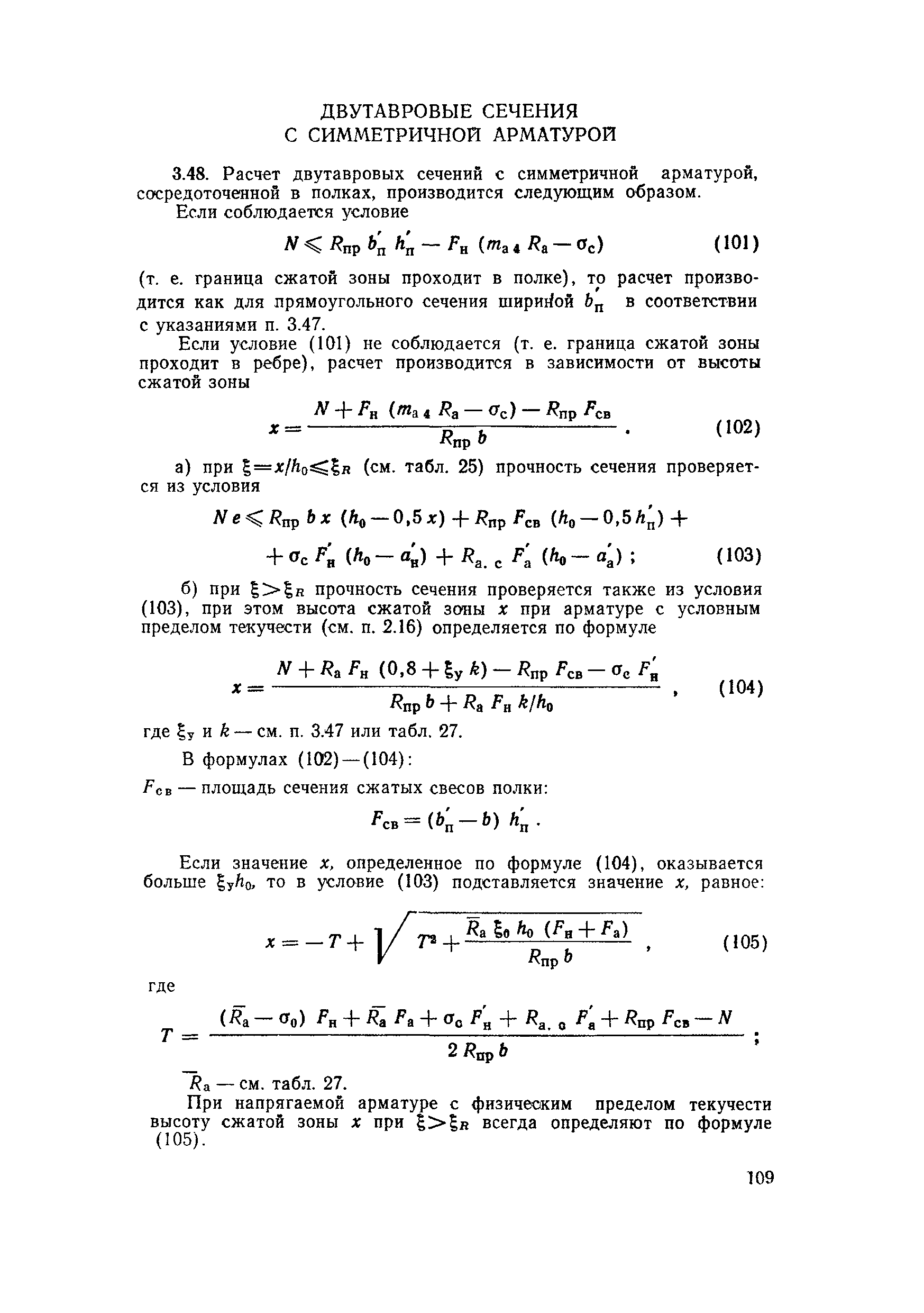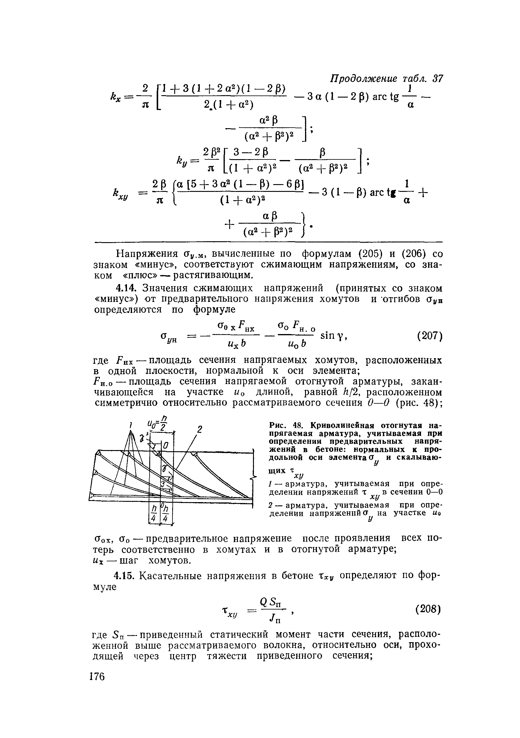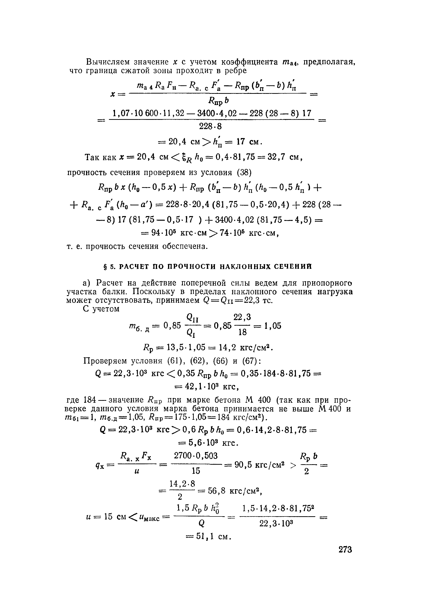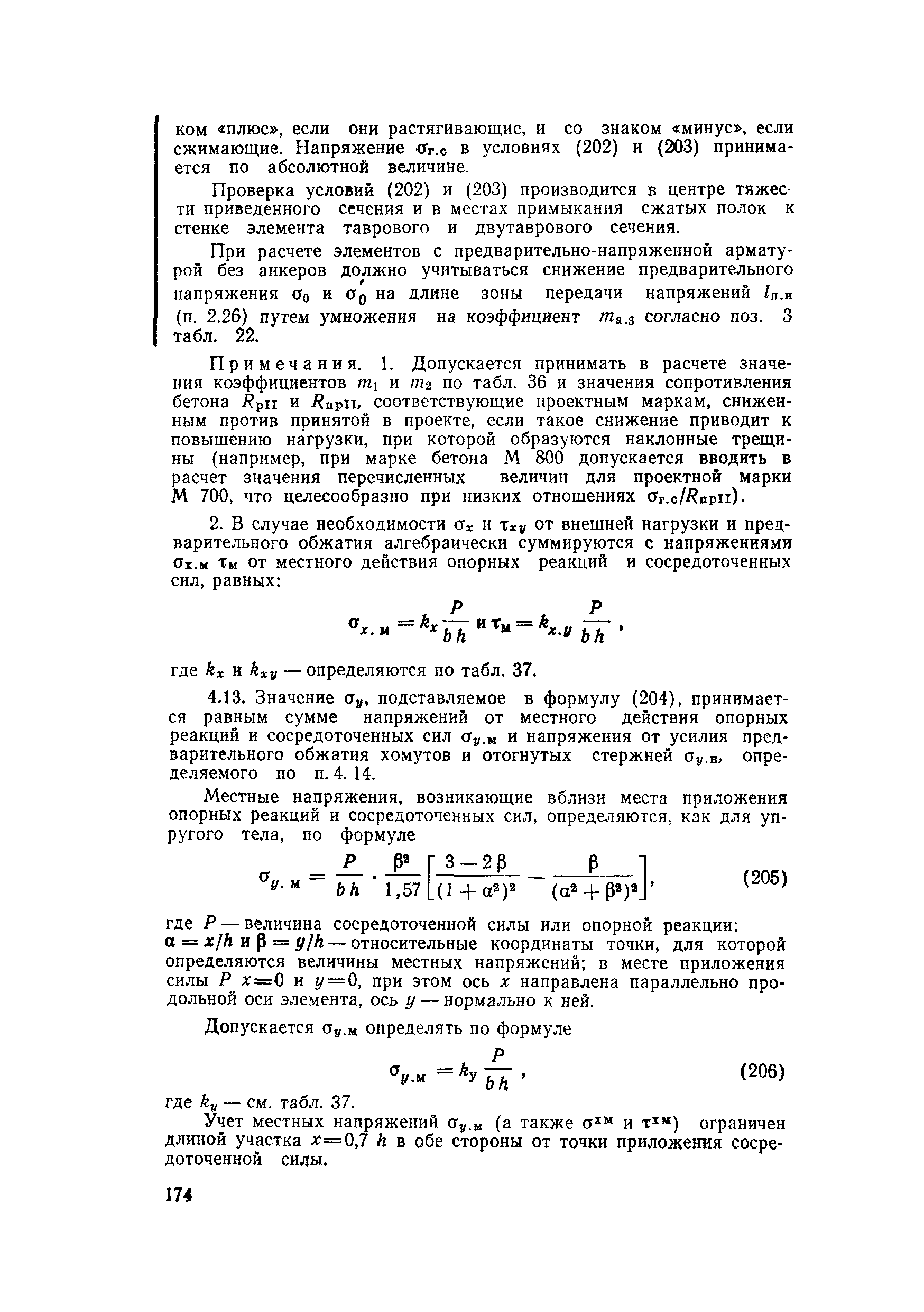 | Оглавление: | Предисловие Основные буквенные обозначения 1. Общие указания Основные положения Основные расчетные требования Предварительные напряжения в железобетонных конструкциях Примеры расчета 2. Материалы для железобетонных конструкций Бетон Нормативные и расчетные характеристики бетона Арматура Нормативные и расчетные характеристики арматуры 3. Расчет элементов железобетонных конструкций по предельным состояниям первой группы Расчет железобетонных элементов по прочности Общие указания Изгибаемые элементы Расчет сечений, нормальных к продольной оси элемента Прямоугольные сечения Тавровые и двутавровые сечения Тавровые и двутавровые сечения Элементы, работающие на косой изгиб Общий случай расчета нормальных сечений изгибаемых элементов Расчет сечений, наклонных к продольной оси элемента Расчет элементов постоянного по длине сечения, армированных хомутами без отгибов Расчет элементов постоянного сечения с отогнутыми стержнями Расчет элементов с переменной высотой сечения Расчет элементов без поперечного армирования Расчет наклонных сечений по поперечной силе при косом изгибе Расчет наклонных сечений по изгибающему моменту Внецентренно сжатые элементы Учет влияния прогиба элемента Расчет элементов симметричного сечения при расположении продольной силы в плоскости симметрии Кольцевые сечения Расчет элементов на воздействие предварительного обжатия Центрально и внецентренно растянутые элементы Центрально растянутые элементы Внецентренно растянутые элементы Расчет элементов прямоугольного сечения при расположении продольной силы в плоскости оси симметрии Расчет сечений, наклонных к продольной оси элементов Элементы, работающие на кручение с изгибом Элементы прямоугольного сечения Элементы таврового, двутаврового и других сечений, имеющих входящие углы Элементы кольцевого сечения с продольной арматурой, равномерно распределенной по окружности Примеры расчета Расчет железобетонных конструкций на выносливость Примеры расчета 4. Расчет элементов железобетонных конструкций по предельным состояниям второй группы Расчет железобетонных элементов по образованию трещин Расчет по образованию трещин, нормальных к продольной оси элемента Расчет по образованию трещин, наклонных к продольной оси элемента Расчет железобетонных элементов по раскрытию трещин Расчет по раскрытию трещин, нормальных к продольной оси элемента Расчет по раскрытию трещин, наклонных к продольной оси элемента Расчет железобетонных элементов по закрытию трещин Расчет по закрытию трещин, нормальных к продольной оси элемента Расчет по закрытию трещин, наклонных к продольной оси элемента Расчет элементов железобетонных конструкций по деформациям Определение кривизны железобетонных элементов на участках без трещин в растянутой зоне Определение кривизны железобетонных элементов на участках с трещинами в растянутой зоне Определение прогибов Определение продольных деформаций Приближенные методы расчета деформаций Примеры расчета 5. Конструктивные требования Общие требования Габариты и очертания элементов конструкций Защитный слой бетона Минимальные расстояния между стержнями арматуры Анкеровка арматуры Анкеровка напрягаемой арматуры Указания по армированию железобетонных элементов Продольное арм