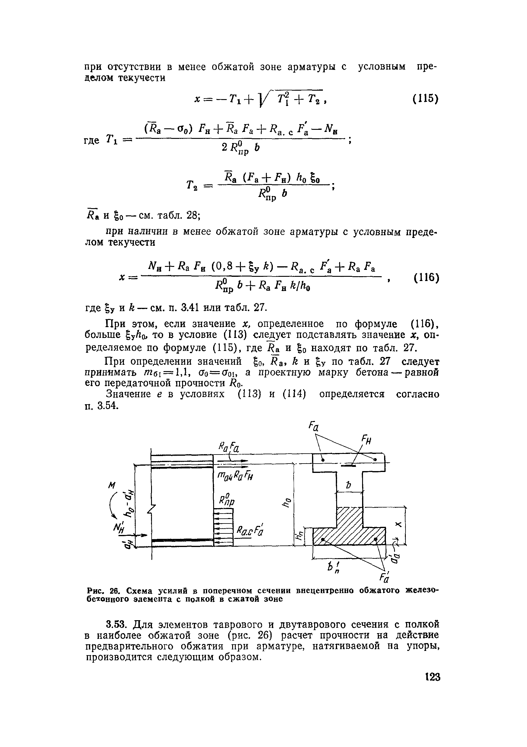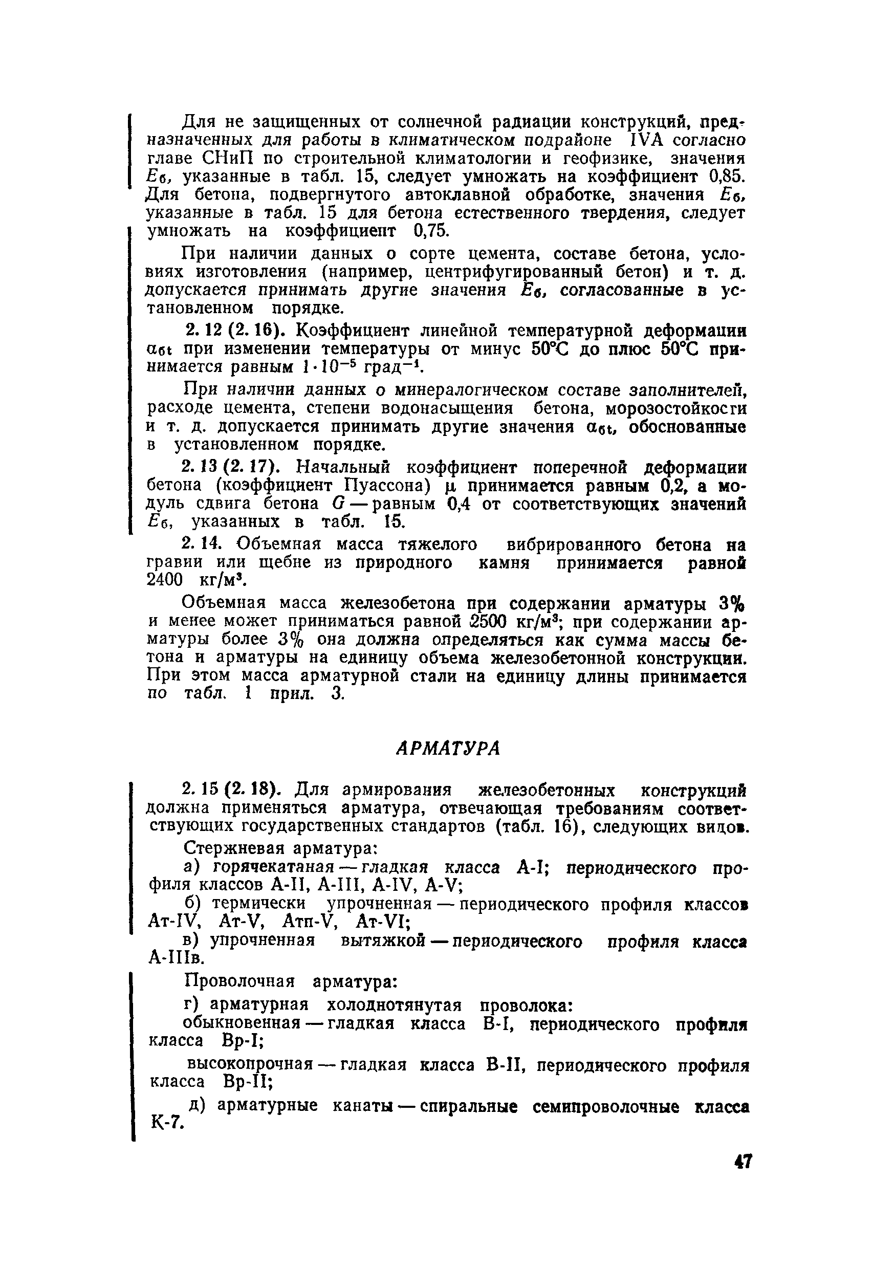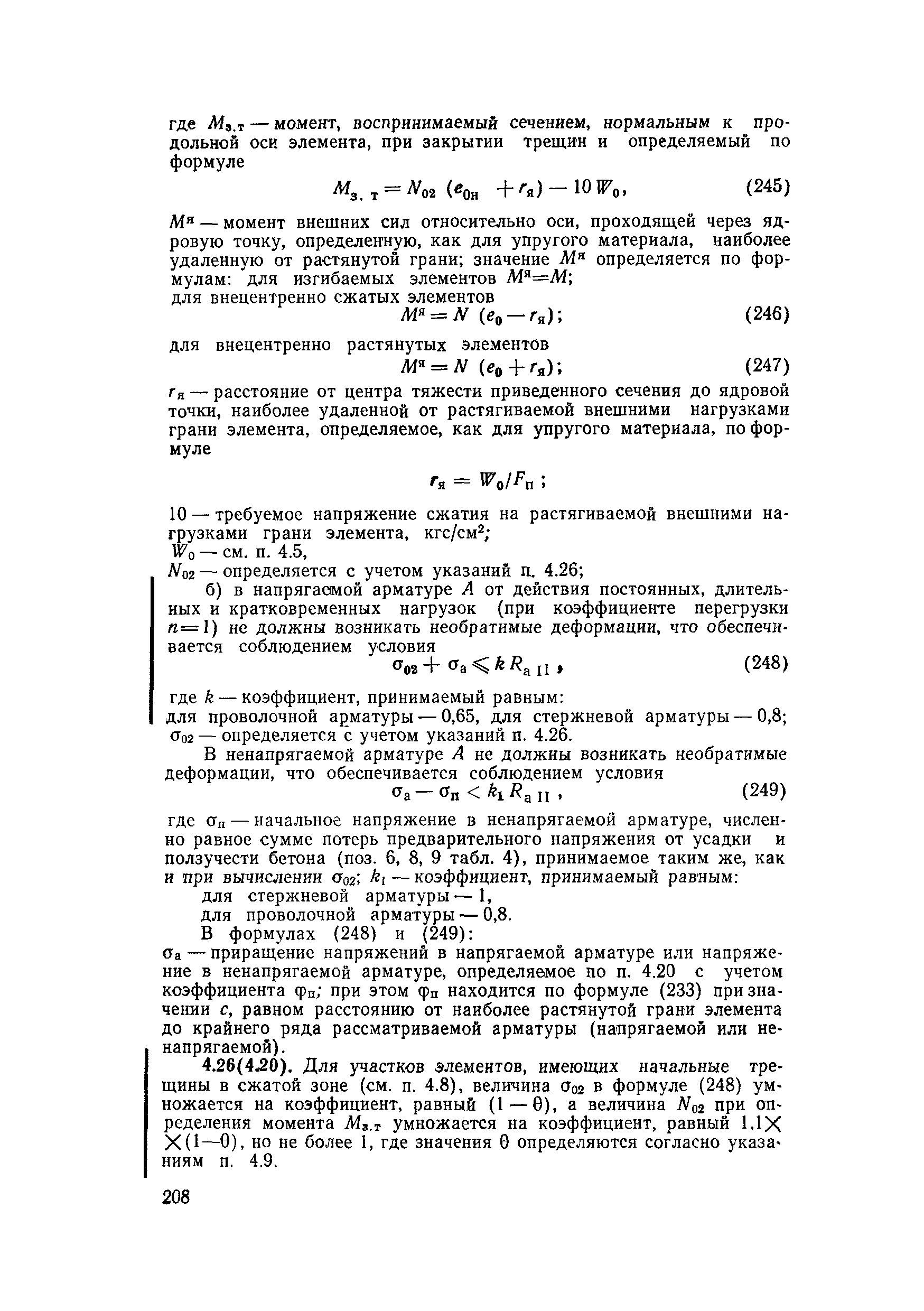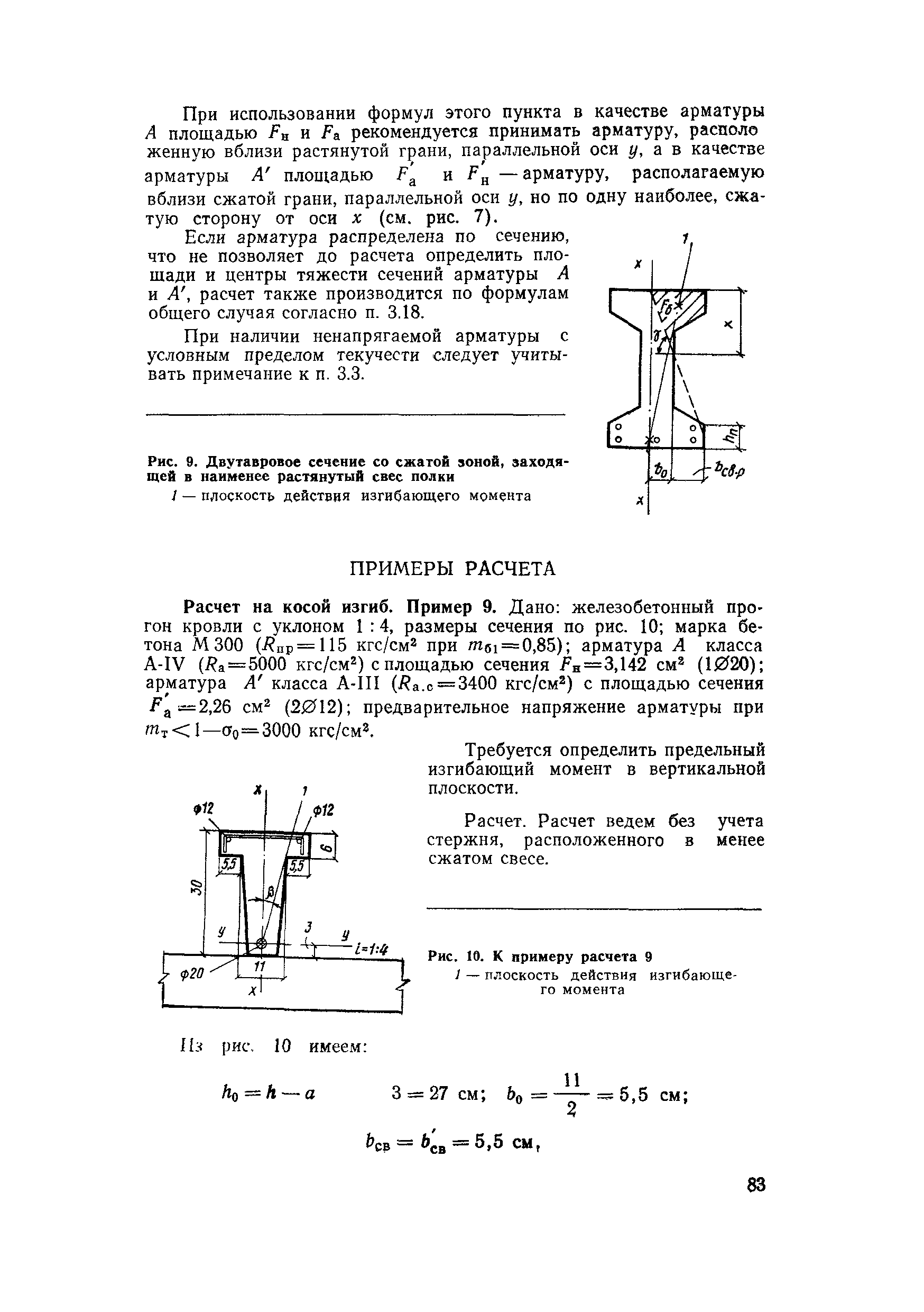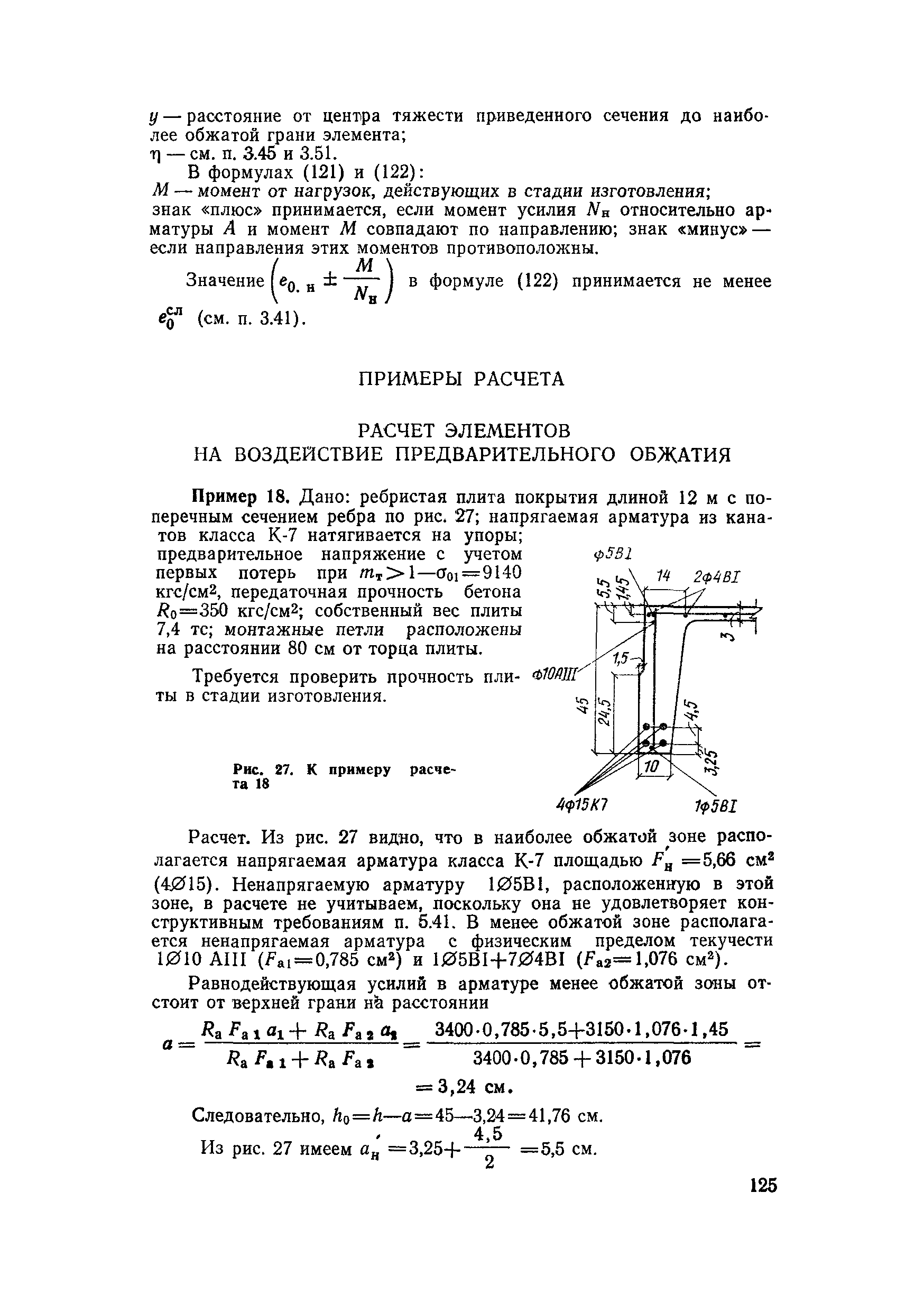 | Оглавление: | Предисловие Основные буквенные обозначения 1. Общие указания Основные положения Основные расчетные требования Предварительные напряжения в железобетонных конструкциях Примеры расчета 2. Материалы для железобетонных конструкций Бетон Нормативные и расчетные характеристики бетона Арматура Нормативные и расчетные характеристики арматуры 3. Расчет элементов железобетонных конструкций по предельным состояниям первой группы Расчет железобетонных элементов по прочности Общие указания Изгибаемые элементы Расчет сечений, нормальных к продольной оси элемента Прямоугольные сечения Тавровые и двутавровые сечения Тавровые и двутавровые сечения Элементы, работающие на косой изгиб Общий случай расчета нормальных сечений изгибаемых элементов Расчет сечений, наклонных к продольной оси элемента Расчет элементов постоянного по длине сечения, армированных хомутами без отгибов Расчет элементов постоянного сечения с отогнутыми стержнями Расчет элементов с переменной высотой сечения Расчет элементов без поперечного армирования Расчет наклонных сечений по поперечной силе при косом изгибе Расчет наклонных сечений по изгибающему моменту Внецентренно сжатые элементы Учет влияния прогиба элемента Расчет элементов симметричного сечения при расположении продольной силы в плоскости симметрии Кольцевые сечения Расчет элементов на воздействие предварительного обжатия Центрально и внецентренно растянутые элементы Центрально растянутые элементы Внецентренно растянутые элементы Расчет элементов прямоугольного сечения при расположении продольной силы в плоскости оси симметрии Расчет сечений, наклонных к продольной оси элементов Элементы, работающие на кручение с изгибом Элементы прямоугольного сечения Элементы таврового, двутаврового и других сечений, имеющих входящие углы Элементы кольцевого сечения с продольной арматурой, равномерно распределенной по окружности Примеры расчета Расчет железобетонных конструкций на выносливость Примеры расчета 4. Расчет элементов железобетонных конструкций по предельным состояниям второй группы Расчет железобетонных элементов по образованию трещин Расчет по образованию трещин, нормальных к продольной оси элемента Расчет по образованию трещин, наклонных к продольной оси элемента Расчет железобетонных элементов по раскрытию трещин Расчет по раскрытию трещин, нормальных к продольной оси элемента Расчет по раскрытию трещин, наклонных к продольной оси элемента Расчет железобетонных элементов по закрытию трещин Расчет по закрытию трещин, нормальных к продольной оси элемента Расчет по закрытию трещин, наклонных к продольной оси элемента Расчет элементов железобетонных конструкций по деформациям Определение кривизны железобетонных элементов на участках без трещин в растянутой зоне Определение кривизны железобетонных элементов на участках с трещинами в растянутой зоне Определение прогибов Определение продольных деформаций Приближенные методы расчета деформаций Примеры расчета 5. Конструктивные требования Общие требования Габариты и очертания элементов конструкций Защитный слой бетона Минимальные расстояния между стержнями арматуры Анкеровка арматуры Анкеровка напрягаемой арматуры Указания по армированию железобетонных элементов Продольное арм