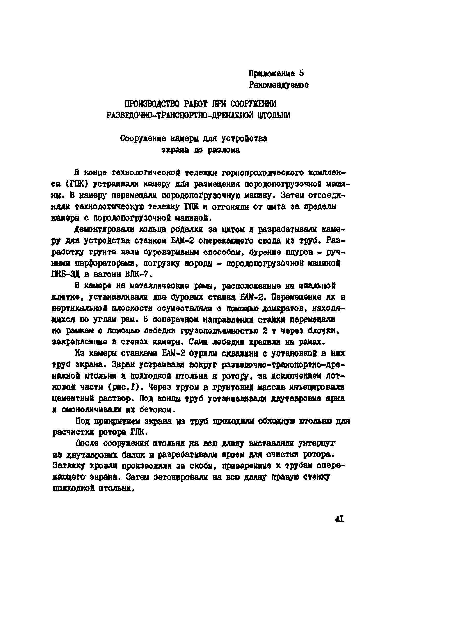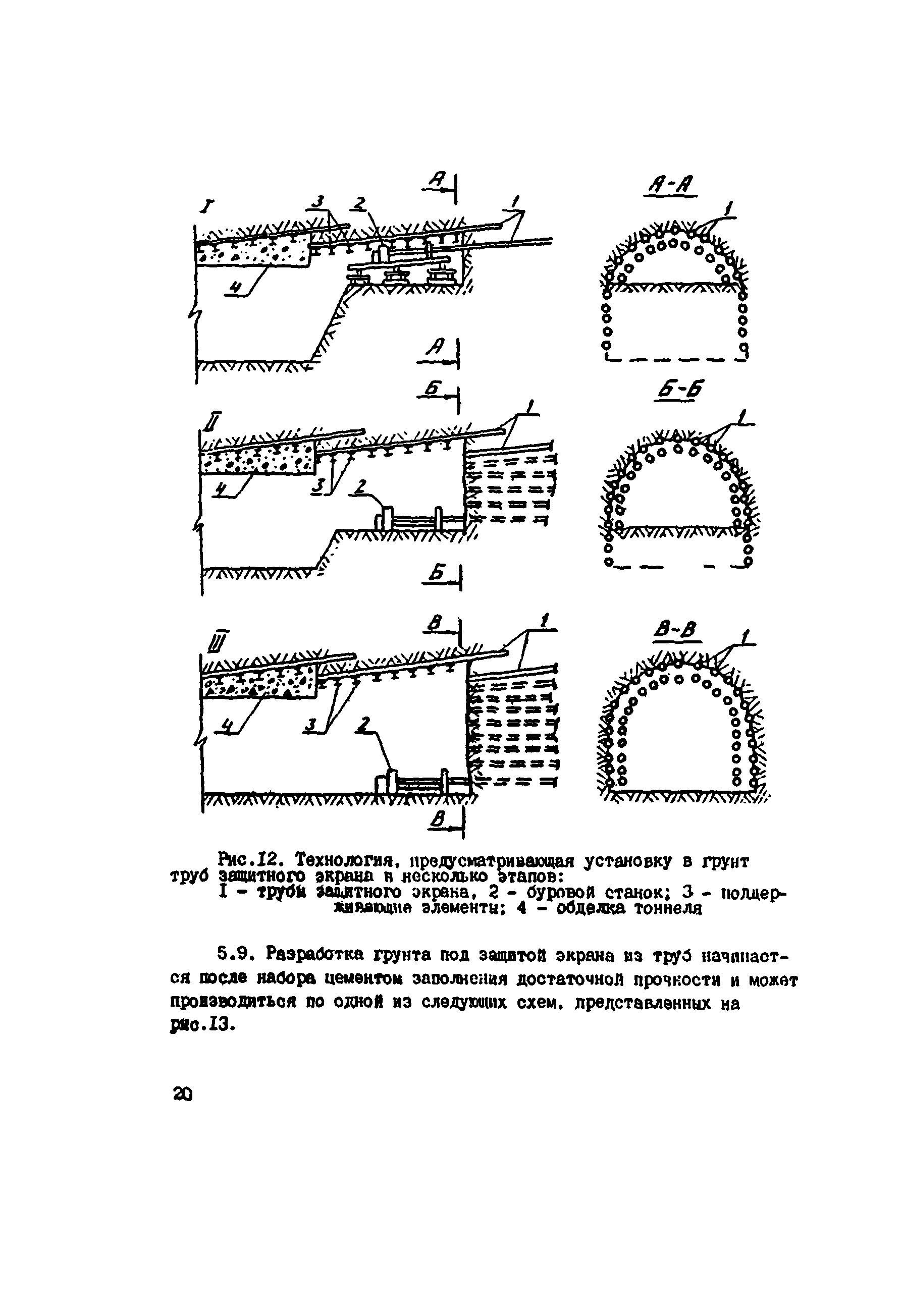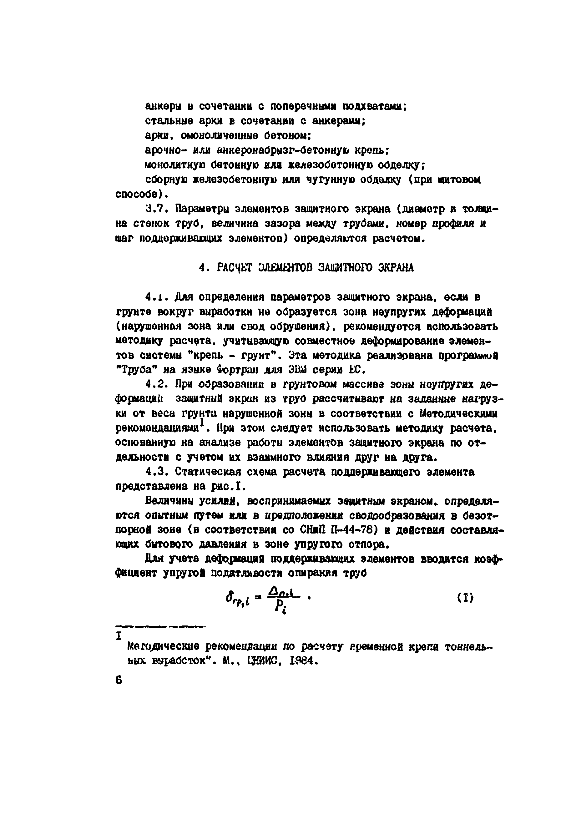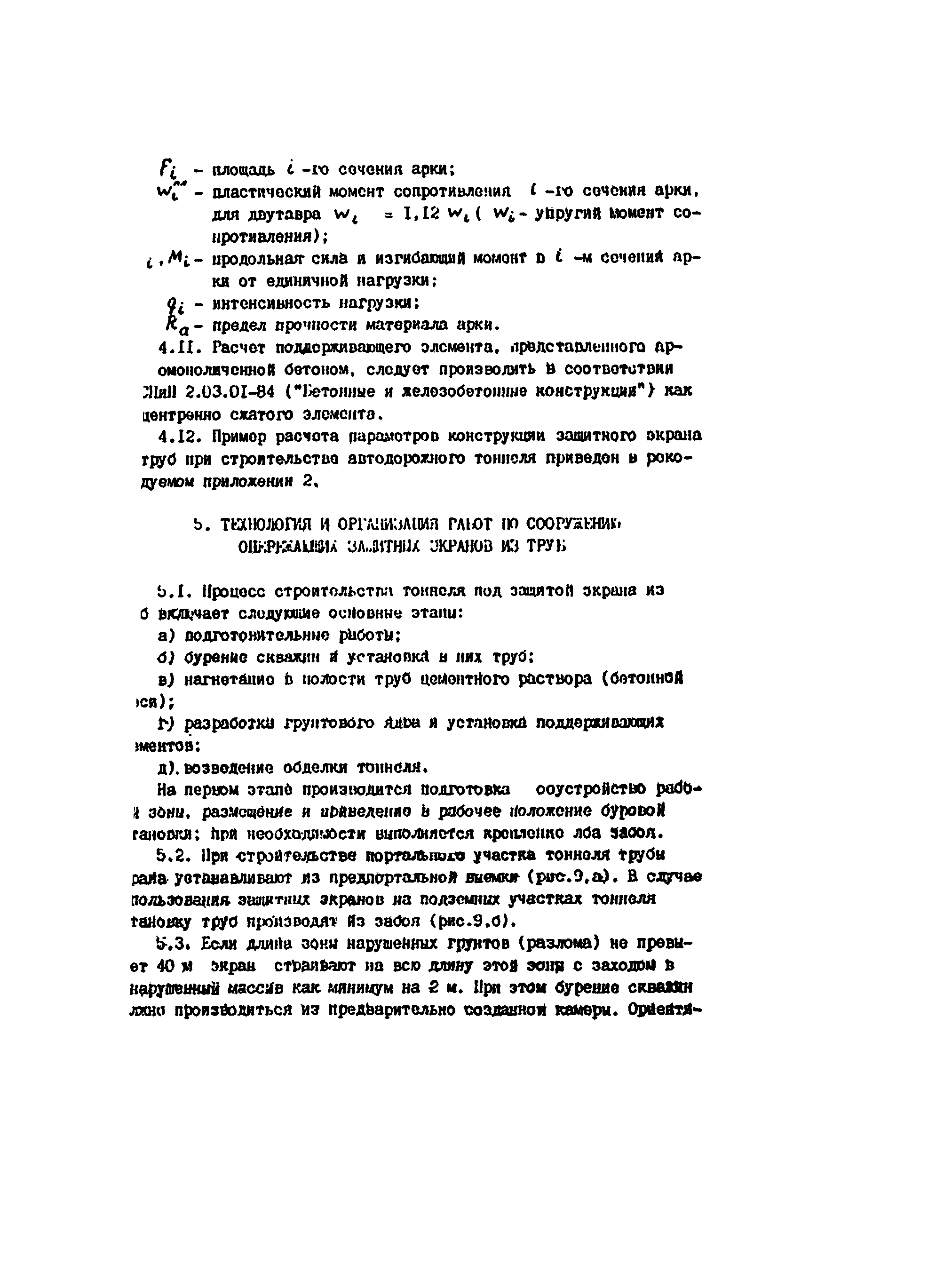 | Оглавление: | Предисловие 1 Общие положения 2 Области применения опирающих защитных экранов из труб 3 Конструкции защитных экранов из труб 4 Расчет элементов занятного экрана 5 Технология и организация работ по сооружению опережающих защитных экранов из труб 6 Мероприятия по охране труда и технике безопасности Приложение 1 Характеристики грунтов труб, используемые при расчете параметров конструкция защитного экрана Приложение 2 Пример расчета параметров конструкции опережающего экрана из труб приложение 3 Характеристики бурового оборудования, используемого для создания экранов из труб Приложение 4 Производство работ при сооружении железнодорожного тоннеля Приложение 5 Производство работ при сооружении разведочно-транспортно-дренажной штольни |