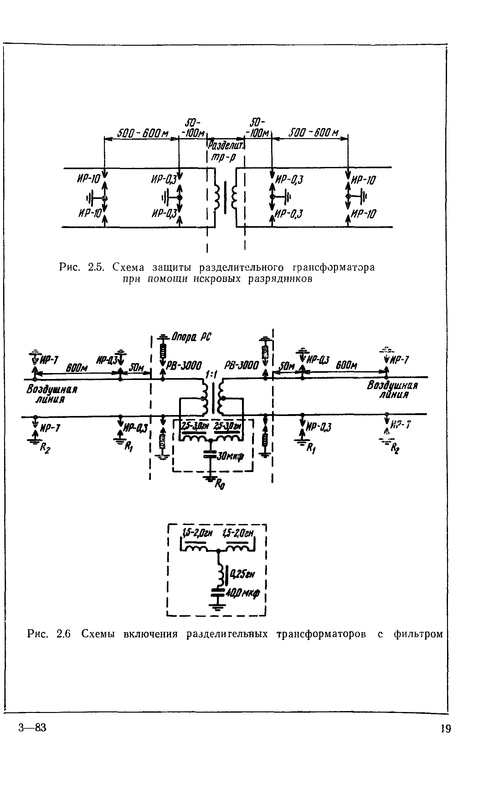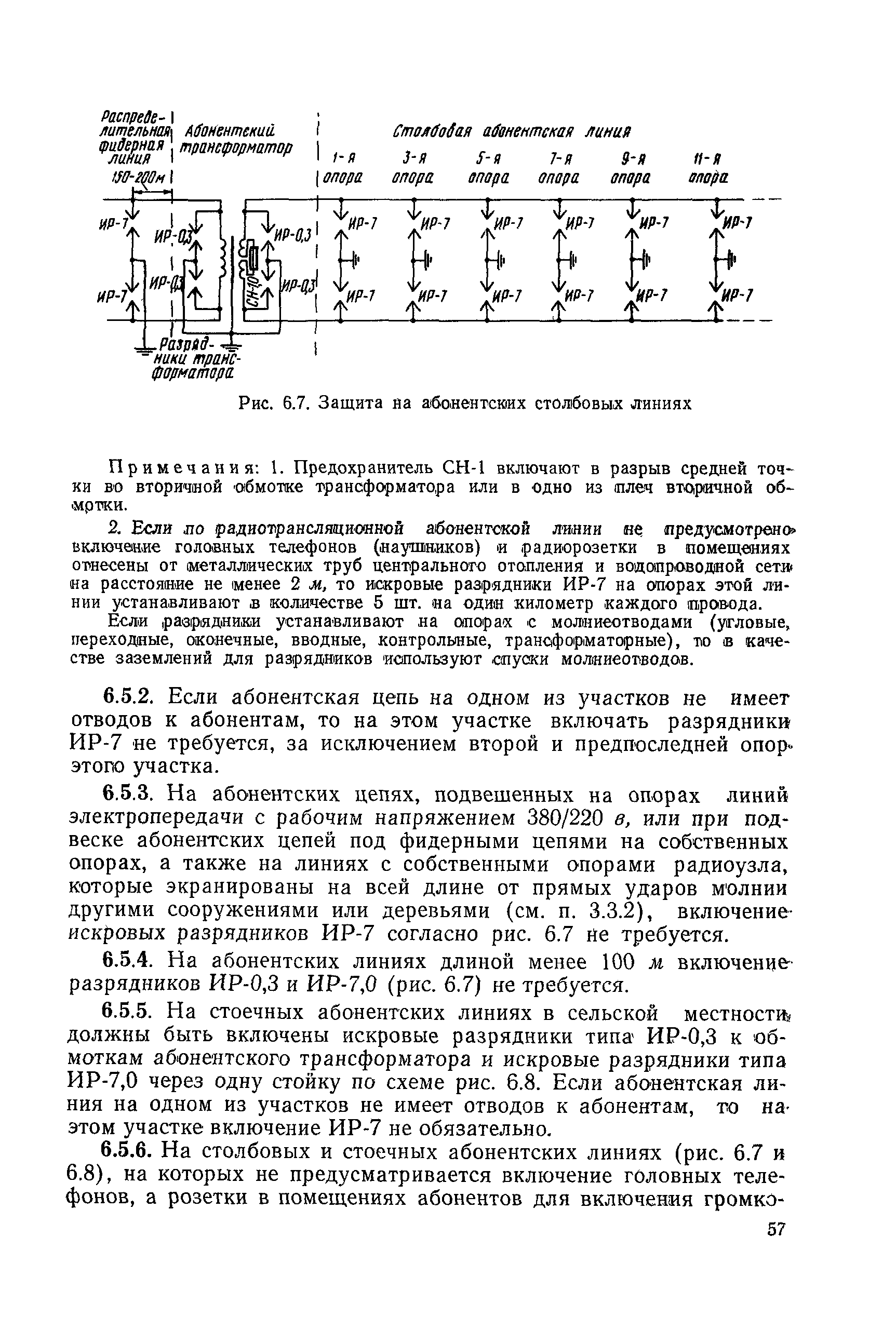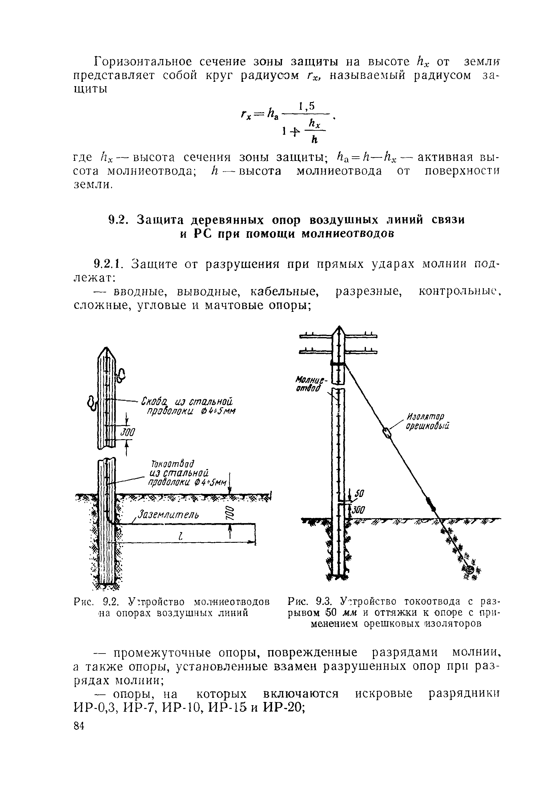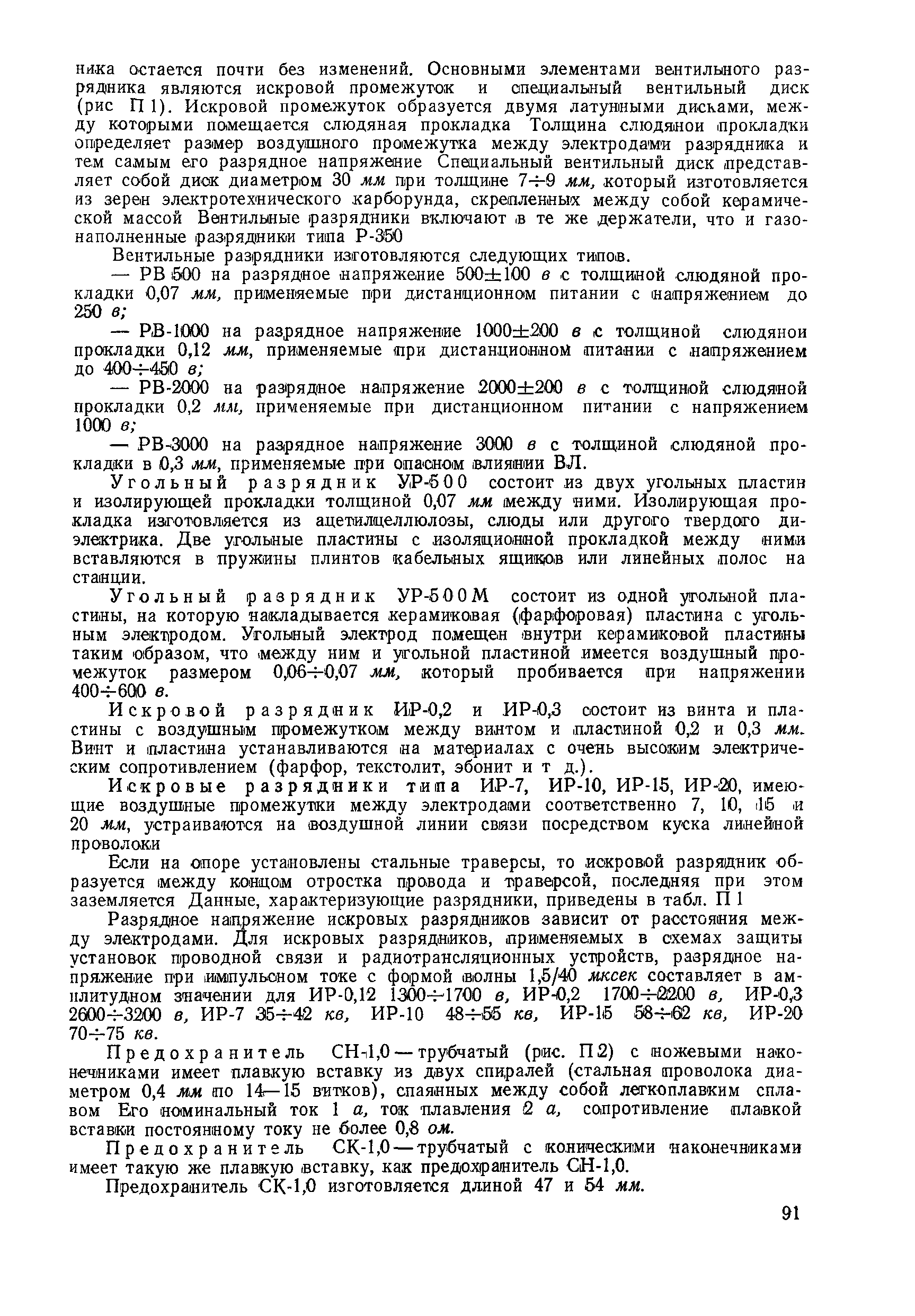 | Оглавление: | Предисловие 1. Опасные напряжения на проводах линий связи и радиотрансляционных сетей 1.1. Источники опасных напряжений. Некоторые понятия и определения 1.2. Индуктивное влияние высоковольтных воздушных линий электропередач и контактных сетей электрических железных дорог переменного тока 1.3. Влияние грозовых разрядов 1.4. Опасные напряжения на проводах ЛС и РС при непосредственном касании с проводами электрической силовой сети 2. Меры защиты от опасного влияния ВЛ и эл. Ж. д. 2.1. Меры, применяемые для защиты от влияния ВЛ и эл.ж.д 2.2. Относ воздушных линий от ВЛ и эл. ж.д. на критические расстояния 2.3. Защита специальными разрядниками 2.4. Защита разделительными трансформаторами 2.5. Защита дренажными катушками 2.6. Защита заземленными тросами из цветных металлов 2.7. Защита отсасывающими трансформаторами 2.8. Частичная или полная замена воздушных линий кабельными 3. Меры защиты от опасных напряжений, возникающих при грозовых разрядах и при соприкосновениях проводов ЛС (РС) с ВЛ напряжением до 600 В и эл. Ж. д. постоянного тока 3.1. Меры защиты от опасных напряжений, возникающих при грозовых разрядах 3.2. Меры защиты от опасных напряжений и токов, возникающих при соприкосновениях проводов ЛС (РС) с ВЛ напряжением до 600 В и эл.ж.д. постоянного тока 4. Защита установок междугородной проводной связи 4.1. Включение искровых разрядников на подходе воздушных линий к станции и УП 4.2. Схемы защиты на вводе воздушных линий связи при отсутствии опасного влияния ВЛ 4.3. Схемы защиты на вводе воздушных линий связи при наличии опасного влияния ВЛ 4.4. Включение элементов защиты 4.5. Защита установок избирательной железнодорожной связи 5. Защита установок проводной связи городских и сельских телефонных сетей и сетей местной железнодорожной связи 5.1. Включение искровых разрядников на подходе воздушных линий к станции 5.2. Схемы защиты на вводе воздушных линий и кабелей с металлической оболочкой при отсутствии опасного влияния ВЛ 5.3. Схемы защиты на вводе кабелей с пластмассовой оболочкой 5.4. Включение элементов защиты 6. Защита абонентов и установок проводного вещания 6.1. Защита оборудования, подключенного к фидерным магистральным линиям 6.2. Защита оборудования на фидерных цепях РС, подвешенных на опорах линий электропередачи напряжением 3/10 Кв 6.3. Защита оборудования с включенными фидерными распределительными линиями РС напряжением до 120 В 6.4. Защита оборудования с включенными фидерными распределительными линиями РС напряжением 240 и 340 В 6.5. Защита абонентов и оборудования на абонентских линиях напряжением 15 и 30 В 6.6. Защита кабельных вставок и катушек пупинизации 6.7. Защита аппаратуры на вводе приемных антенн 6.8. Дополнительная защита на фидерных цепях напряжением 480/2000 В 6.9. Включение элементов защиты 7. Защита на участках пересечения линий связи и РС с ВЛ 7.1. Защита при пересечении линий связи или РС с ВЛ напряжением до 1000 В 7.2. Защита при пересечении линий связи или РС с ВЛ напряжением выше 1000 В 8. Заземление 8.1. Нормы сопротивления заземлений 8.2. Устройство заземлений 8.3. Устройство заземлений в грунтах с высоким удельным сопротивлением 9. Защита опор разрушения при прямых ударах молнии 9.1. Общие указания 9.2. Защита деревянных опор воздушных линий связи и РС при помощи молниеотводов Приложение 1. Приборы защиты Приложение 2. Расчетные формулы для определен