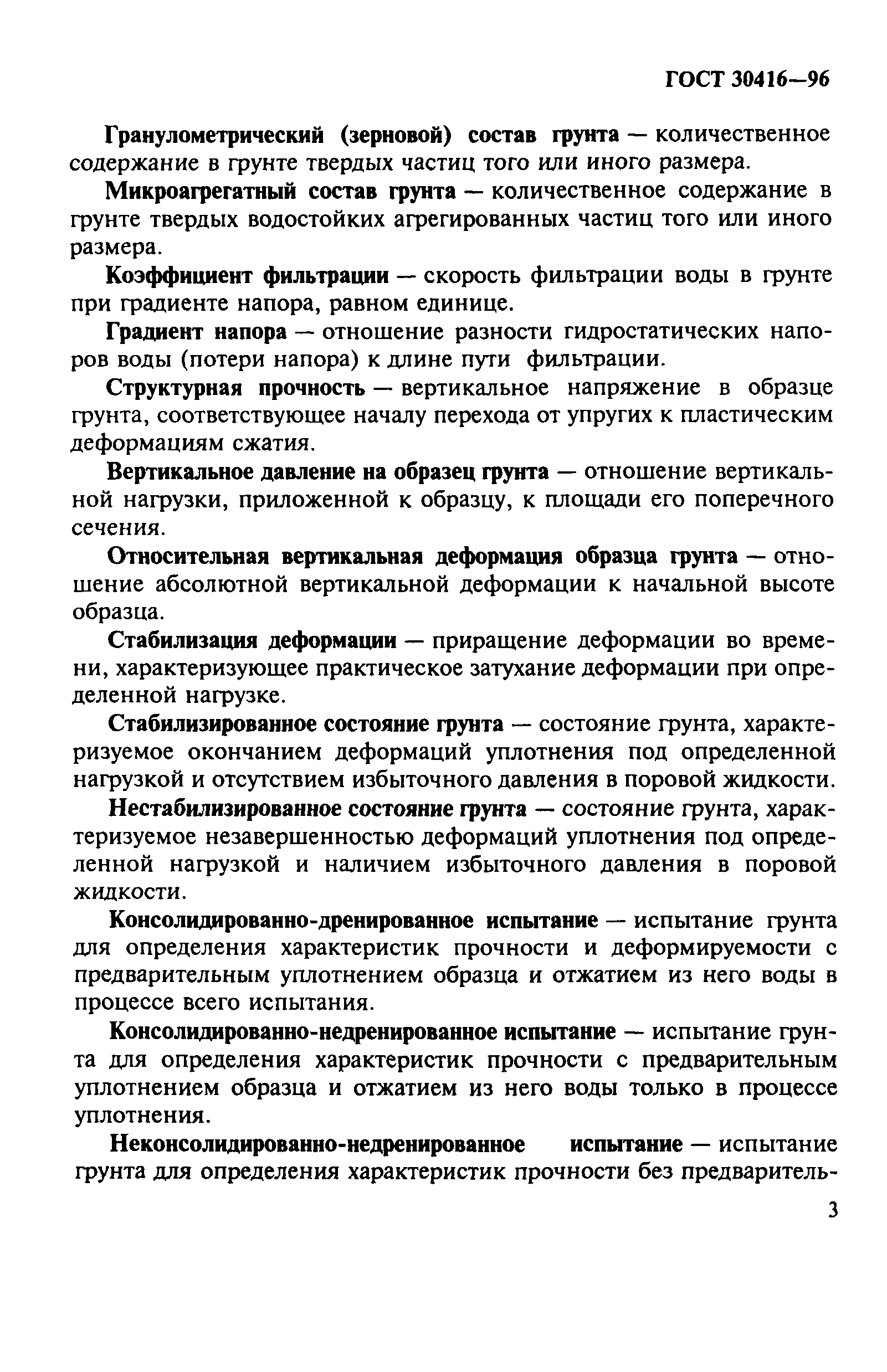 | Оглавление: | 1 Область применения 2 Нормативные ссылки 3 Определения 4 Общие положения 5 Подготовка образцов грунта для испытаний 6 Требования к установкам для проведения испытаний, приборам и оборудованию Приложение А Методы лабораторных испытаний грунтов Приложение Б Методика изготовления образцов полускального грунта Приложение В Методика изготовления образцов фунта с заданными значениями влажности и плотности сухого грунта |