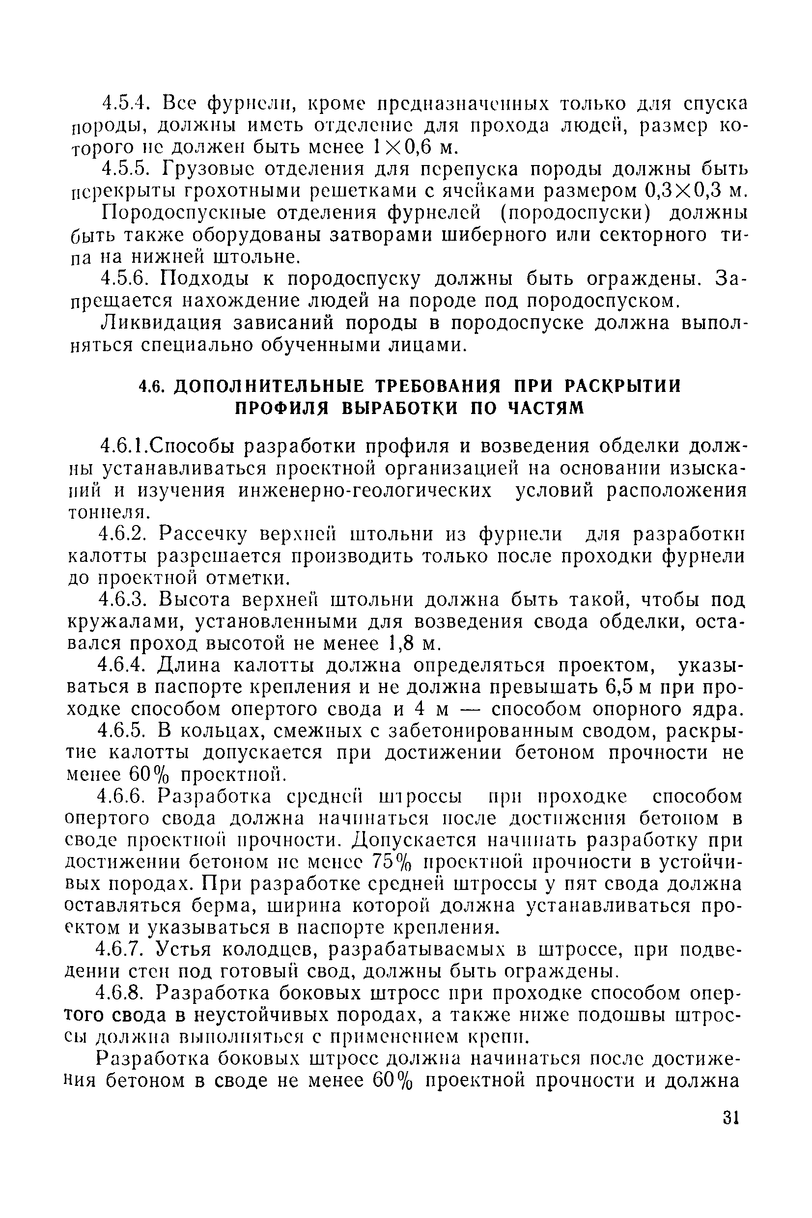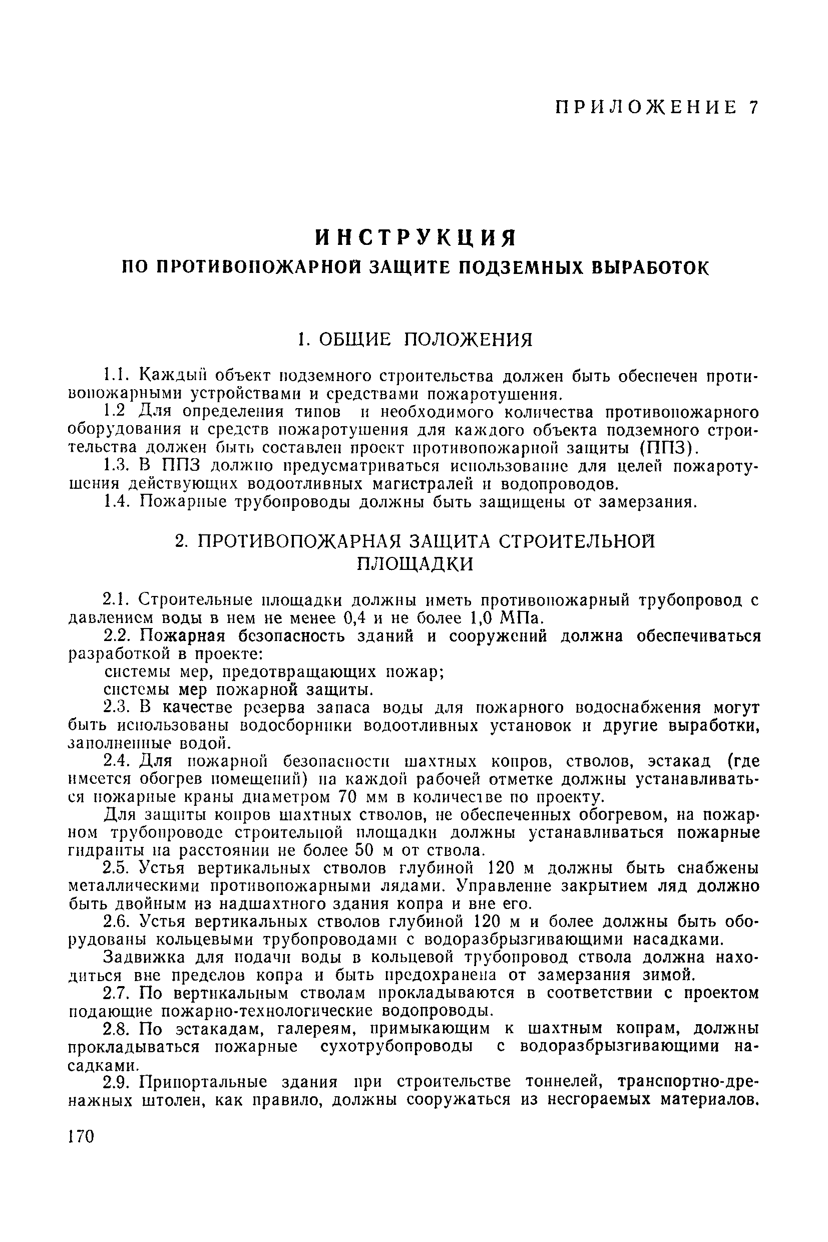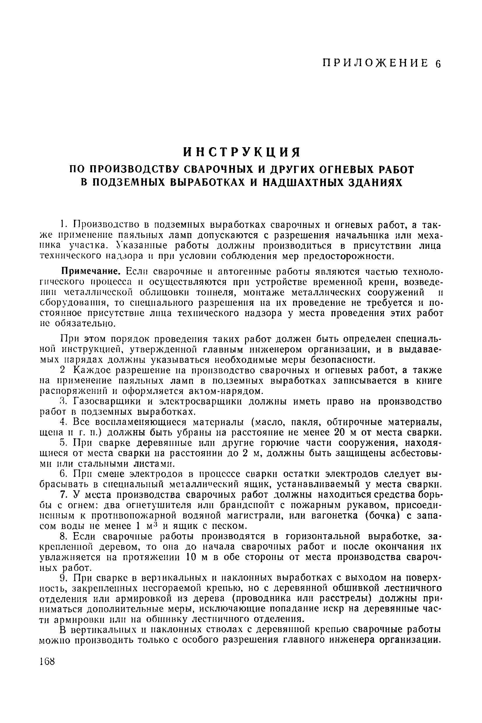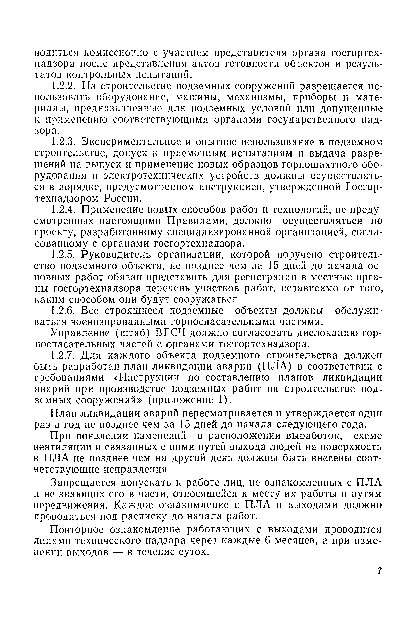 | Оглавление: | 1 Общие положения 1.1 Область применения, проектная документация 1.2 Разрешение на эксплуатацию; противоаварийное обеспечение 1.3 Требования к персоналу 1.4 Организация ведомственного контроля 1.5 Требования к рабочим местам и оборудованию 1.6 Порядок расследования аварий и несчастных случаев 2 Строительная площадка 3 Строительство метрополитенов и подземных сооружений открытым способом 4 Строительство метрополитенов и подземных сооружений закрытым способом 4.1 Проходка и крепление 4.2 Дополнительные требования при проходке и креплении наклонных выработок 4.3 Проходка вертикальных выработок 4.4 Дополнительные требования при проходке стволов с опережающим креплением (забивная и опускная крепь) 4.5 Дополнительные требования при проходке и креплении восстающих выработок 4.6 Дополнительные требования при раскрытии профиля выработок по частям 4.7 Дополнительные требования при проходке выработок в замороженных или химически закрепленных грунтах 4.8 Бурение шпуров и скважин в подземных выработках 4.9 Уборка породы 4.10 Строительство тоннелей со сборной обделкой при помощи проходческих комплексов 4.11 Строительство подземных выработок в особо опасных горно-геологических условиях 4.12 Монтаж и демонтаж сборных обделок 4.13 Возведение монолитных обделок и установка анкерной крепи 4.14 Сооружение горизонтальных горных выработок способами продавливания, прокола и бурения 4.15 Содержание, ремонт и ликвидация подземных выработок 4.16 Дополнительные требования при сооружении в коллекторных тоннелей 5 Проветривание подземных выработок 5.1 Рудничный (шахтный) воздух 5.2 Общие правила проветривания подземных выработок 5.3 Вентиляционные устройства 5.4 Платные вентиляторные установки 5.5 Проветривание тупиковых выработок 5.6 Контроль за состоянием рудничной атмосферы и контрольно-измерительная аппаратура 6 Специальные работы 6.1 Бурение скважин с поверхности 6.2 Искусственное замораживание грунтов 6.3 Дополнительные требования при низкотемпературном (азотном) замораживании 6.4 Химическое закрепление грунтов 6.5 Искусственное водопонижение 6.6 Отделочные работы 6.7 Дополнительные требования при выполнении работ по антикоррозионной защите 7 Маркшейдерское обеспечение 7.1 Требования к маркшейдерской службе 7.2 Безопасность ведения маркшейдерских работ 8 Подземный транспорт и подъем 8.1 Подземный транспорт по вертикальным выработкам 8.2 Подъемные машины и лебедки 8.3 Канаты, прицепные устройства и шкивы 8.4 Транспорт по наклонным выработкам 8.5 Подземный транспорт по горизонтальным выработкам 9 Самоходное оборудование с двигателями внутреннего сгорания в подземных выработках 10 Водоотлив 11 Электрические сети и электропотребители 11.1 Электрические сети 11.2 Электрооборудование 11.3 Подземный центральный распределительный пункт 11.4 Защитное заземление, зануление 11.5 Электросварочные и газопламенные работы 11.6 Электроинструмент 11.7 Телефонная связь 11.8 Освещение 12 Противопожарная защита 13 Санитарно-бытовое обеспечение 14 Ответственность за нарушение правил безопасности Приложение 1. Инструкция по составлению и реализации планов ликвидации аварий на строительстве подземных сооружений Приложение 2. Инструкция по составлению паспортов крепления горных выработок Инструкция 3. Инструкция по проверке действия реверсивных устройств вентиляторных ус