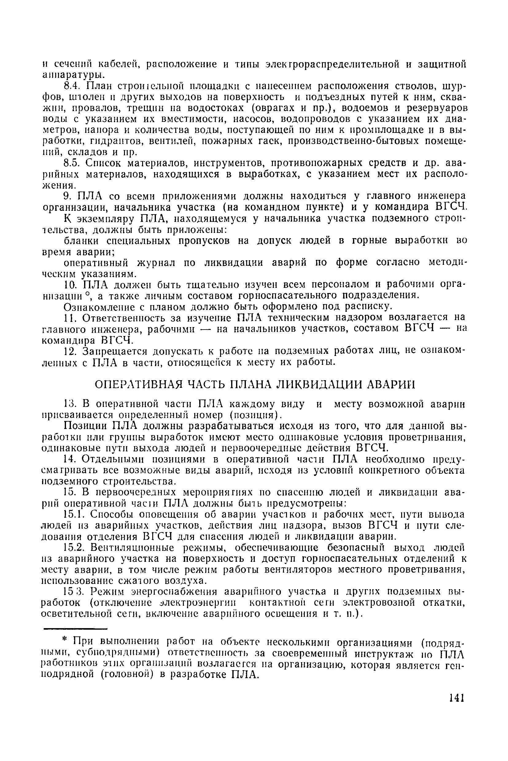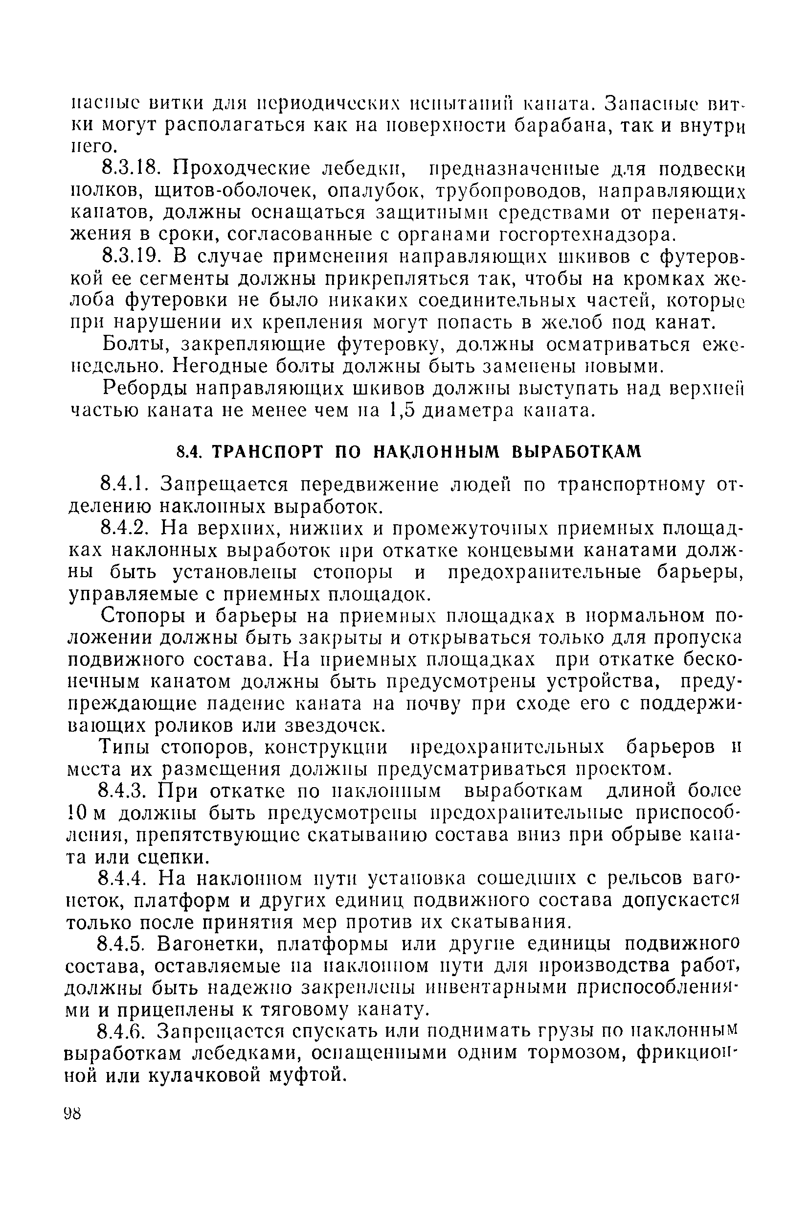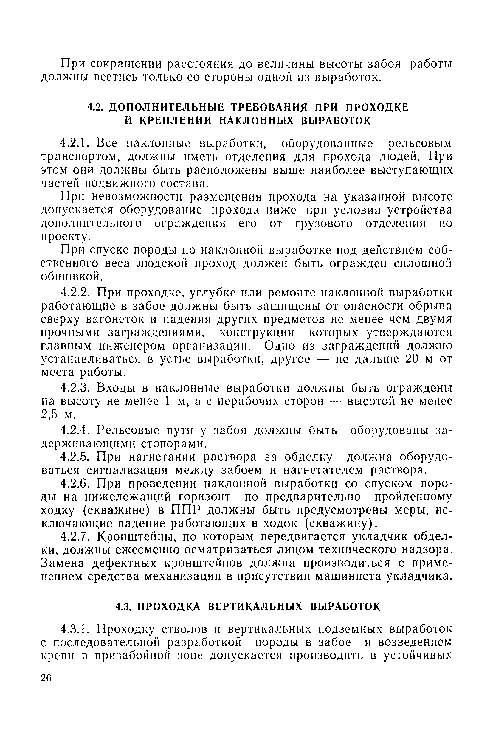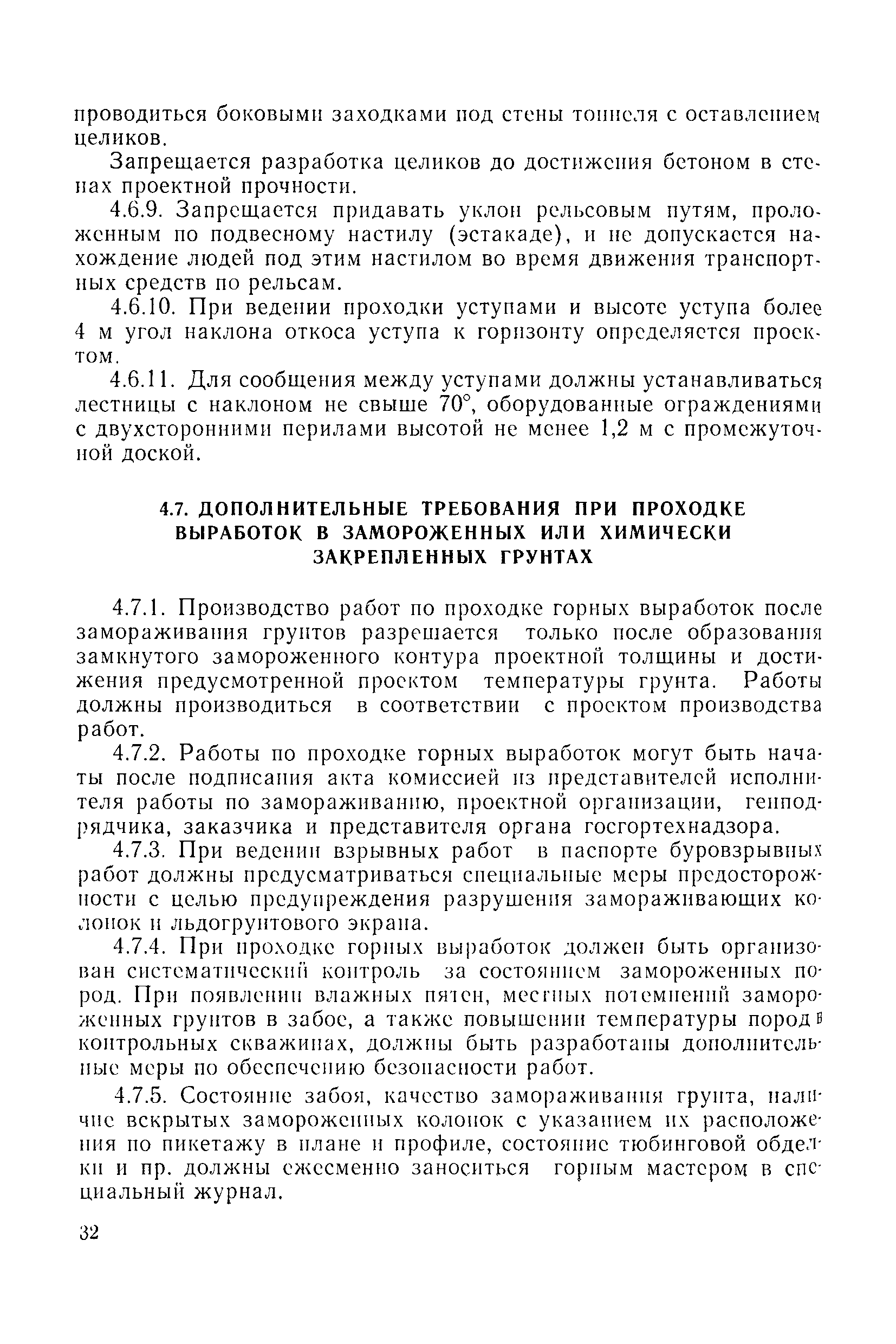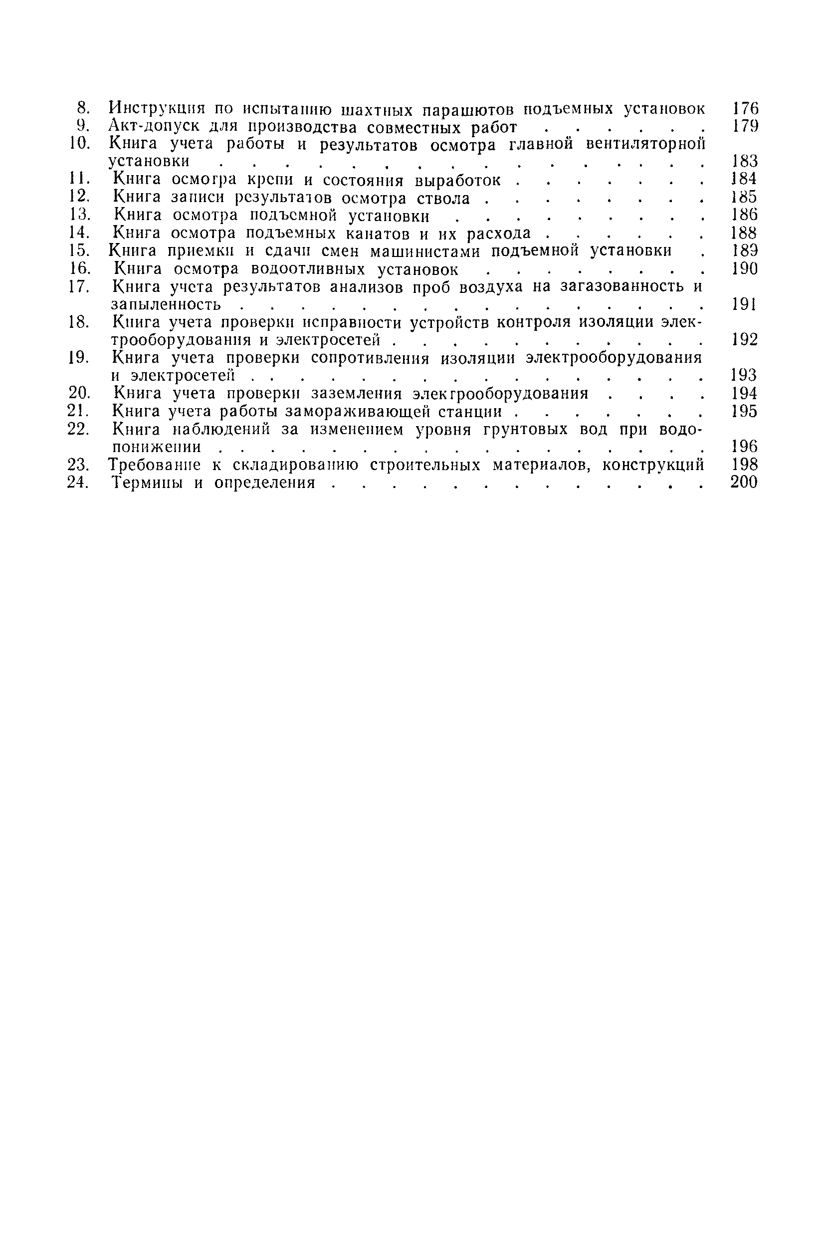 | Оглавление: | 1 Общие положения 1.1 Область применения, проектная документация 1.2 Разрешение на эксплуатацию; противоаварийное обеспечение 1.3 Требования к персоналу 1.4 Организация ведомственного контроля 1.5 Требования к рабочим местам и оборудованию 1.6 Порядок расследования аварий и несчастных случаев 2 Строительная площадка 3 Строительство метрополитенов и подземных сооружений открытым способом 4 Строительство метрополитенов и подземных сооружений закрытым способом 4.1 Проходка и крепление 4.2 Дополнительные требования при проходке и креплении наклонных выработок 4.3 Проходка вертикальных выработок 4.4 Дополнительные требования при проходке стволов с опережающим креплением (забивная и опускная крепь) 4.5 Дополнительные требования при проходке и креплении восстающих выработок 4.6 Дополнительные требования при раскрытии профиля выработок по частям 4.7 Дополнительные требования при проходке выработок в замороженных или химически закрепленных грунтах 4.8 Бурение шпуров и скважин в подземных выработках 4.9 Уборка породы 4.10 Строительство тоннелей со сборной обделкой при помощи проходческих комплексов 4.11 Строительство подземных выработок в особо опасных горно-геологических условиях 4.12 Монтаж и демонтаж сборных обделок 4.13 Возведение монолитных обделок и установка анкерной крепи 4.14 Сооружение горизонтальных горных выработок способами продавливания, прокола и бурения 4.15 Содержание, ремонт и ликвидация подземных выработок 4.16 Дополнительные требования при сооружении в коллекторных тоннелей 5 Проветривание подземных выработок 5.1 Рудничный (шахтный) воздух 5.2 Общие правила проветривания подземных выработок 5.3 Вентиляционные устройства 5.4 Платные вентиляторные установки 5.5 Проветривание тупиковых выработок 5.6 Контроль за состоянием рудничной атмосферы и контрольно-измерительная аппаратура 6 Специальные работы 6.1 Бурение скважин с поверхности 6.2 Искусственное замораживание грунтов 6.3 Дополнительные требования при низкотемпературном (азотном) замораживании 6.4 Химическое закрепление грунтов 6.5 Искусственное водопонижение 6.6 Отделочные работы 6.7 Дополнительные требования при выполнении работ по антикоррозионной защите 7 Маркшейдерское обеспечение 7.1 Требования к маркшейдерской службе 7.2 Безопасность ведения маркшейдерских работ 8 Подземный транспорт и подъем 8.1 Подземный транспорт по вертикальным выработкам 8.2 Подъемные машины и лебедки 8.3 Канаты, прицепные устройства и шкивы 8.4 Транспорт по наклонным выработкам 8.5 Подземный транспорт по горизонтальным выработкам 9 Самоходное оборудование с двигателями внутреннего сгорания в подземных выработках 10 Водоотлив 11 Электрические сети и электропотребители 11.1 Электрические сети 11.2 Электрооборудование 11.3 Подземный центральный распределительный пункт 11.4 Защитное заземление, зануление 11.5 Электросварочные и газопламенные работы 11.6 Электроинструмент 11.7 Телефонная связь 11.8 Освещение 12 Противопожарная защита 13 Санитарно-бытовое обеспечение 14 Ответственность за нарушение правил безопасности Приложение 1. Инструкция по составлению и реализации планов ликвидации аварий на строительстве подземных сооружений Приложение 2. Инструкция по составлению паспортов крепления горных выработок Инструкция 3. Инструкция по проверке действия реверсивных устройств вентиляторных ус