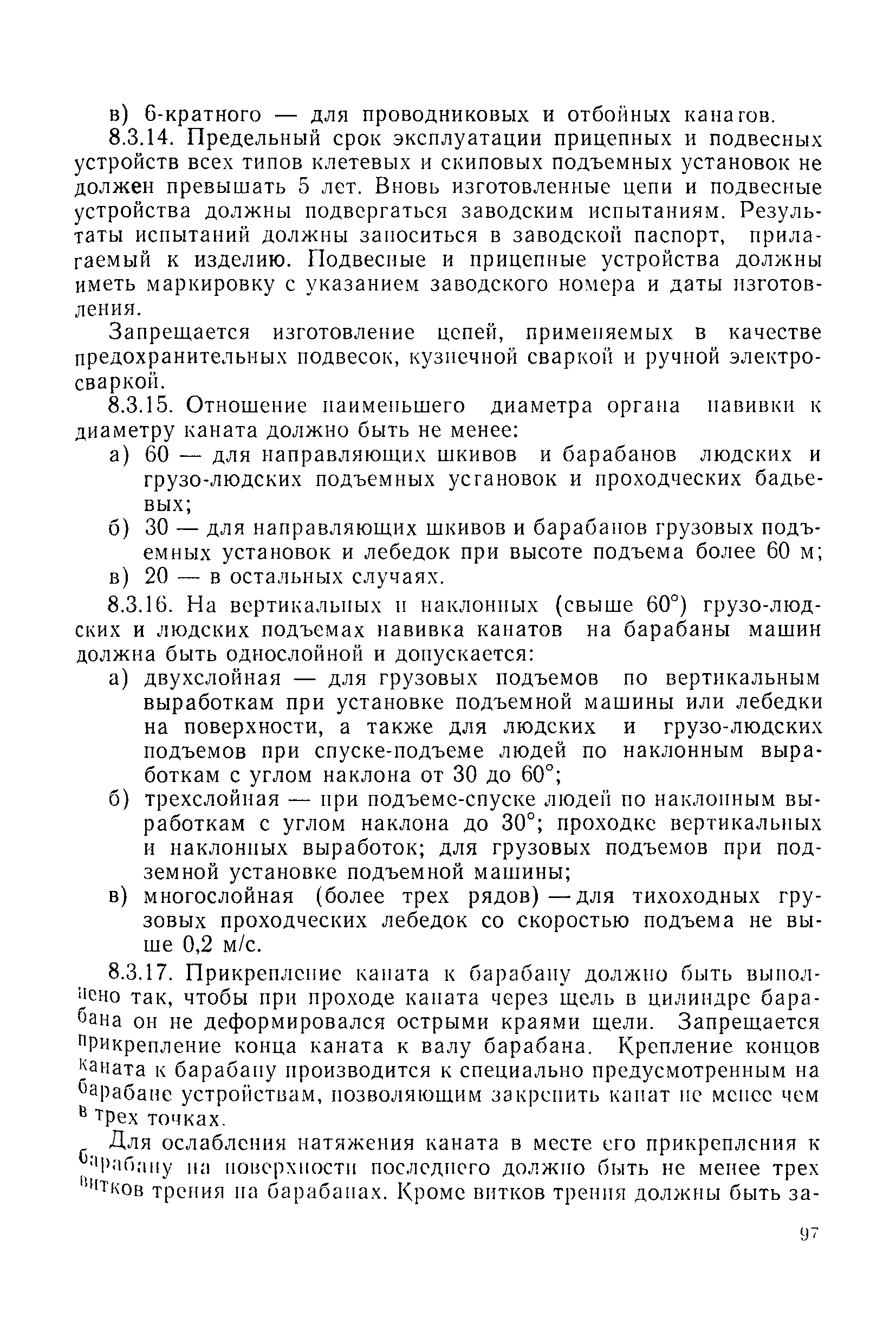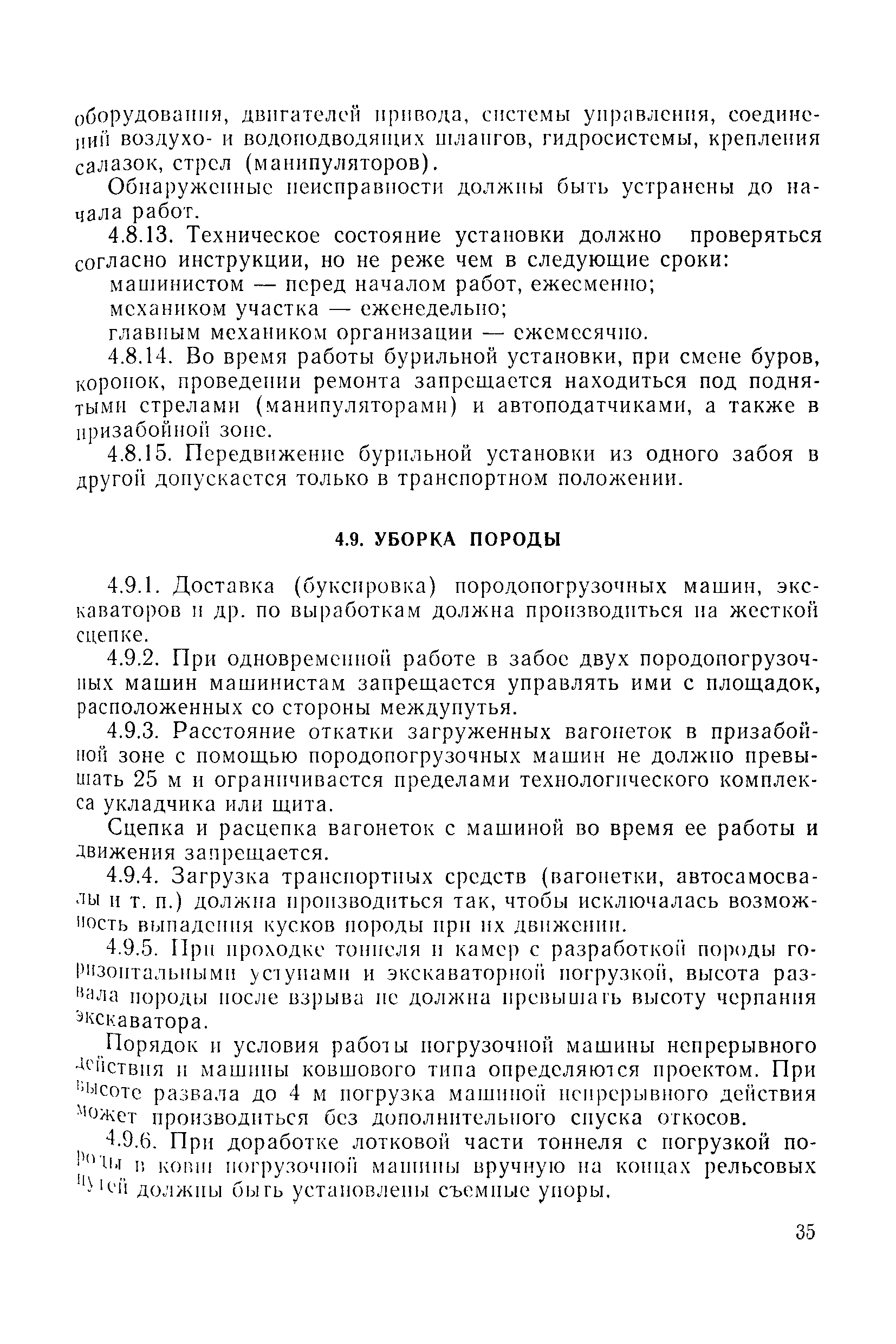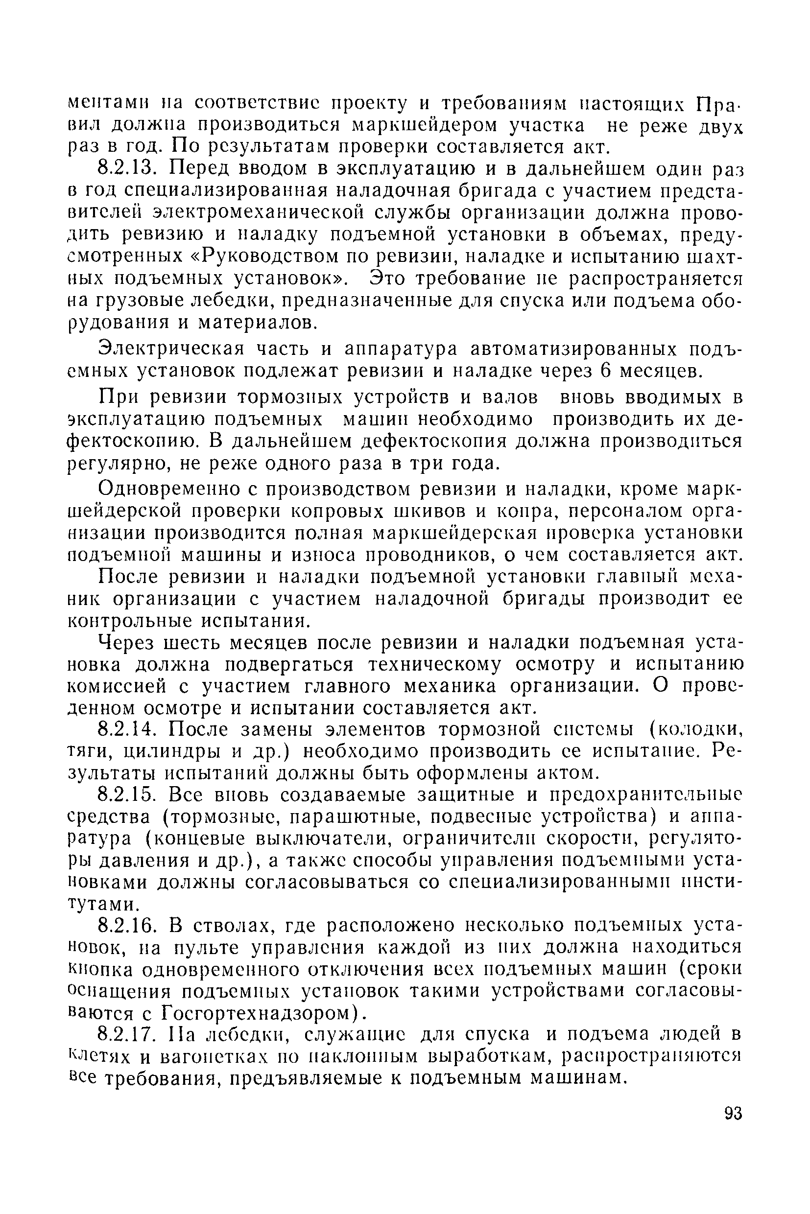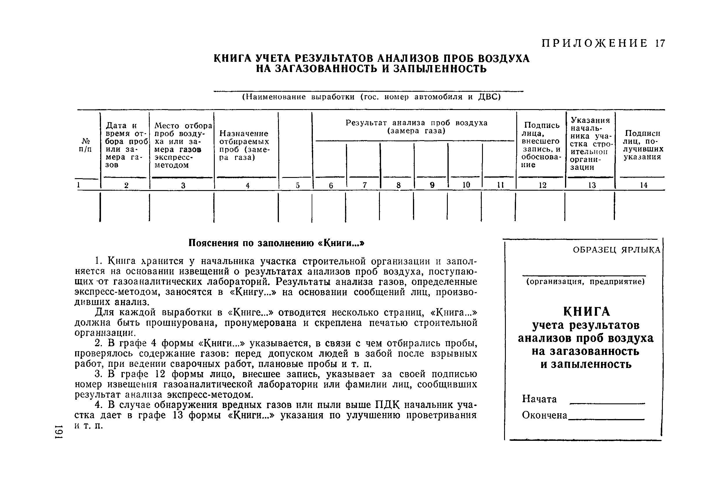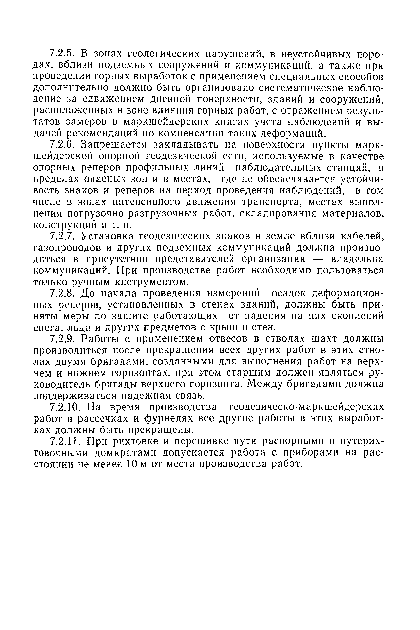 | Оглавление: | 1 Общие положения 1.1 Область применения, проектная документация 1.2 Разрешение на эксплуатацию; противоаварийное обеспечение 1.3 Требования к персоналу 1.4 Организация ведомственного контроля 1.5 Требования к рабочим местам и оборудованию 1.6 Порядок расследования аварий и несчастных случаев 2 Строительная площадка 3 Строительство метрополитенов и подземных сооружений открытым способом 4 Строительство метрополитенов и подземных сооружений закрытым способом 4.1 Проходка и крепление 4.2 Дополнительные требования при проходке и креплении наклонных выработок 4.3 Проходка вертикальных выработок 4.4 Дополнительные требования при проходке стволов с опережающим креплением (забивная и опускная крепь) 4.5 Дополнительные требования при проходке и креплении восстающих выработок 4.6 Дополнительные требования при раскрытии профиля выработок по частям 4.7 Дополнительные требования при проходке выработок в замороженных или химически закрепленных грунтах 4.8 Бурение шпуров и скважин в подземных выработках 4.9 Уборка породы 4.10 Строительство тоннелей со сборной обделкой при помощи проходческих комплексов 4.11 Строительство подземных выработок в особо опасных горно-геологических условиях 4.12 Монтаж и демонтаж сборных обделок 4.13 Возведение монолитных обделок и установка анкерной крепи 4.14 Сооружение горизонтальных горных выработок способами продавливания, прокола и бурения 4.15 Содержание, ремонт и ликвидация подземных выработок 4.16 Дополнительные требования при сооружении в коллекторных тоннелей 5 Проветривание подземных выработок 5.1 Рудничный (шахтный) воздух 5.2 Общие правила проветривания подземных выработок 5.3 Вентиляционные устройства 5.4 Платные вентиляторные установки 5.5 Проветривание тупиковых выработок 5.6 Контроль за состоянием рудничной атмосферы и контрольно-измерительная аппаратура 6 Специальные работы 6.1 Бурение скважин с поверхности 6.2 Искусственное замораживание грунтов 6.3 Дополнительные требования при низкотемпературном (азотном) замораживании 6.4 Химическое закрепление грунтов 6.5 Искусственное водопонижение 6.6 Отделочные работы 6.7 Дополнительные требования при выполнении работ по антикоррозионной защите 7 Маркшейдерское обеспечение 7.1 Требования к маркшейдерской службе 7.2 Безопасность ведения маркшейдерских работ 8 Подземный транспорт и подъем 8.1 Подземный транспорт по вертикальным выработкам 8.2 Подъемные машины и лебедки 8.3 Канаты, прицепные устройства и шкивы 8.4 Транспорт по наклонным выработкам 8.5 Подземный транспорт по горизонтальным выработкам 9 Самоходное оборудование с двигателями внутреннего сгорания в подземных выработках 10 Водоотлив 11 Электрические сети и электропотребители 11.1 Электрические сети 11.2 Электрооборудование 11.3 Подземный центральный распределительный пункт 11.4 Защитное заземление, зануление 11.5 Электросварочные и газопламенные работы 11.6 Электроинструмент 11.7 Телефонная связь 11.8 Освещение 12 Противопожарная защита 13 Санитарно-бытовое обеспечение 14 Ответственность за нарушение правил безопасности Приложение 1. Инструкция по составлению и реализации планов ликвидации аварий на строительстве подземных сооружений Приложение 2. Инструкция по составлению паспортов крепления горных выработок Инструкция 3. Инструкция по проверке действия реверсивных устройств вентиляторных ус
