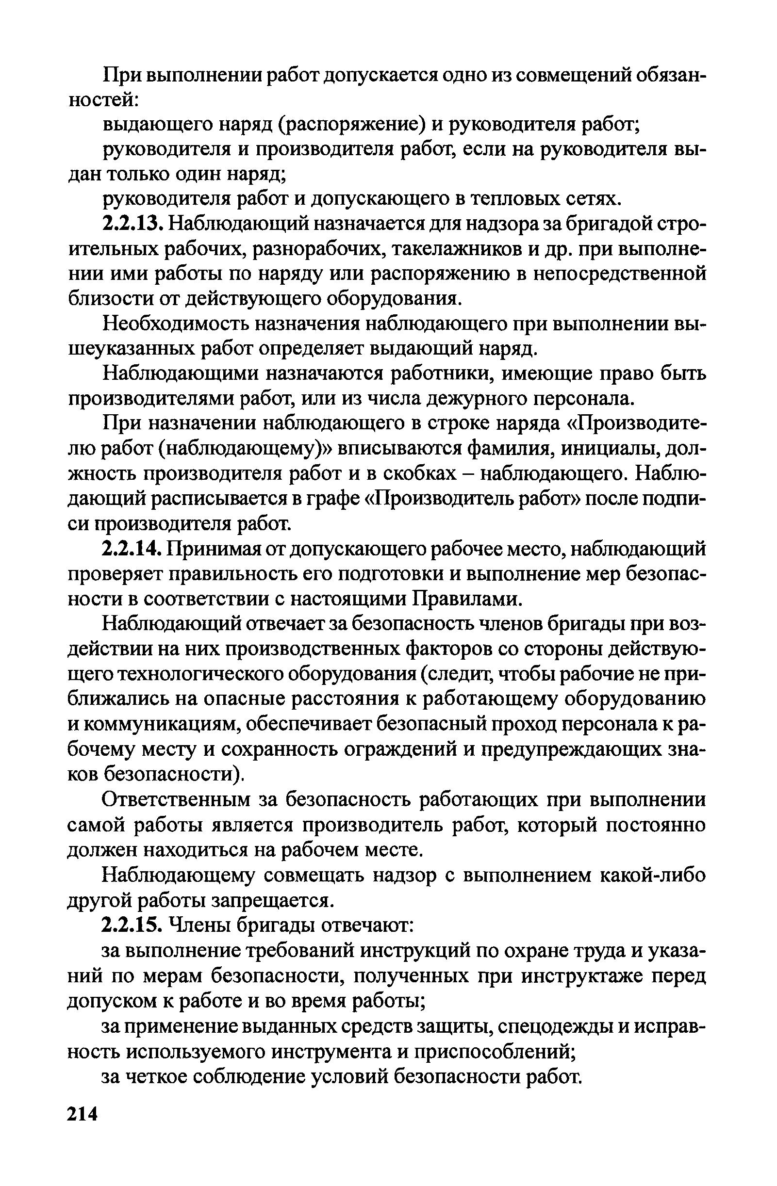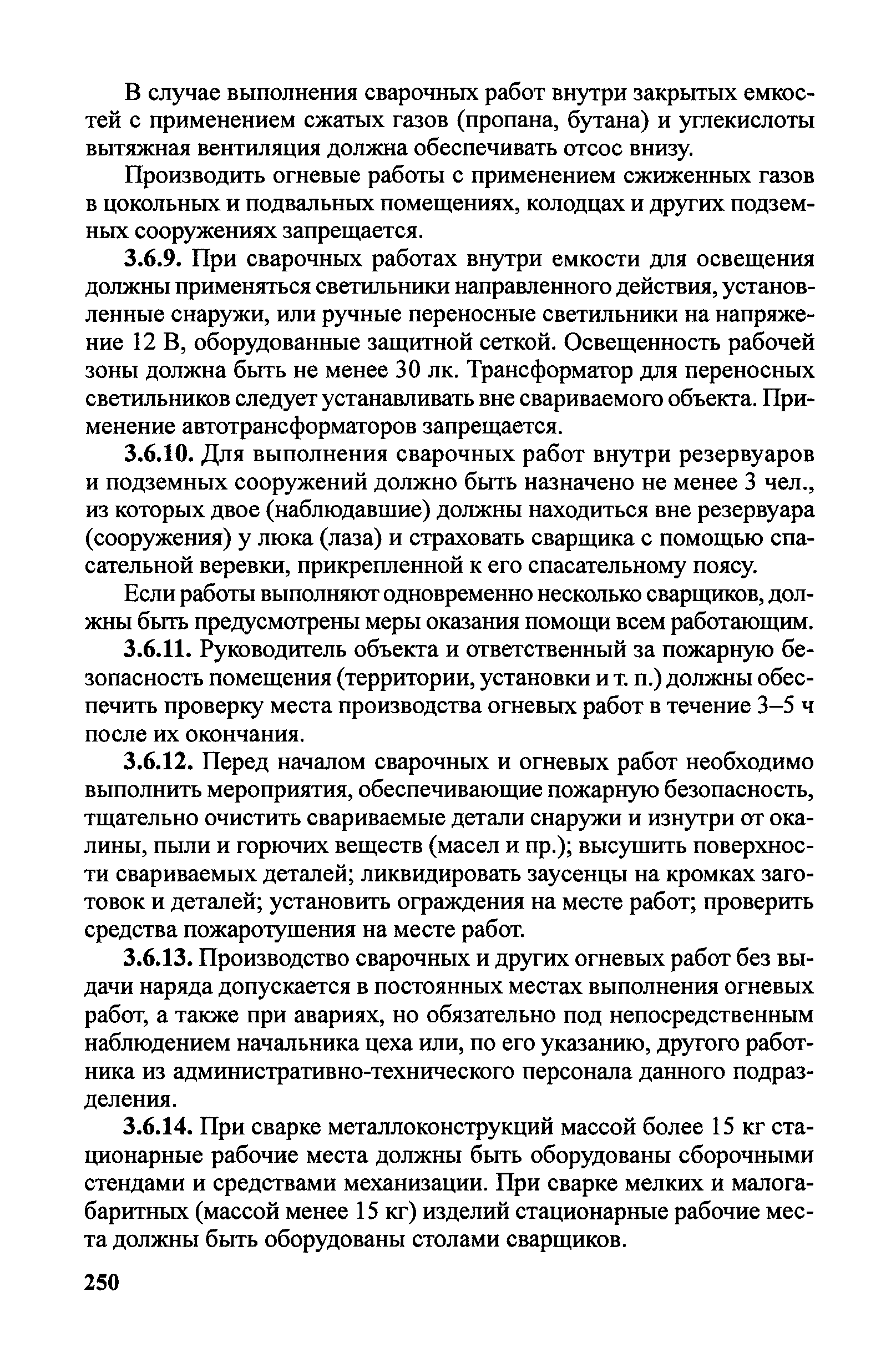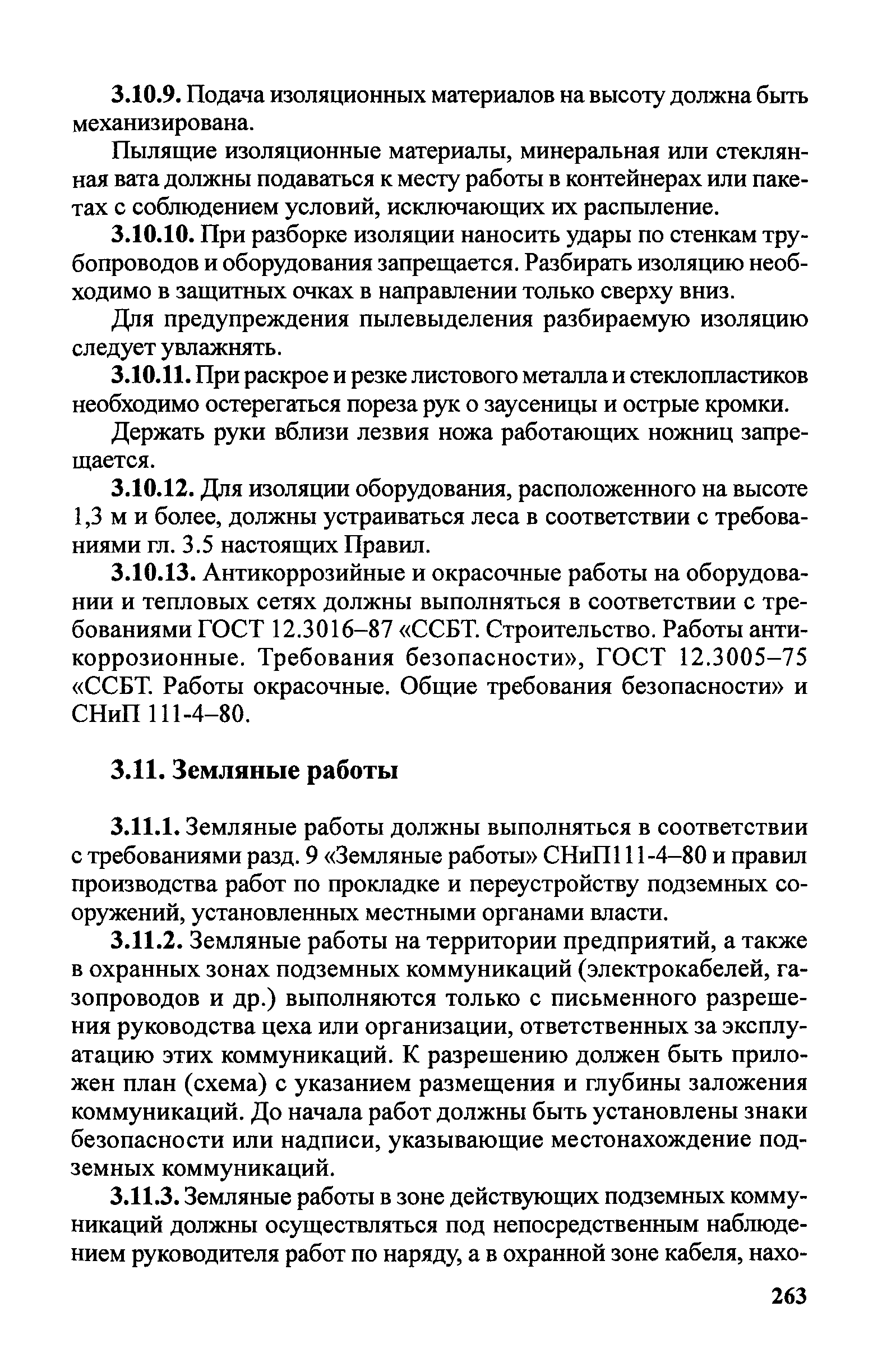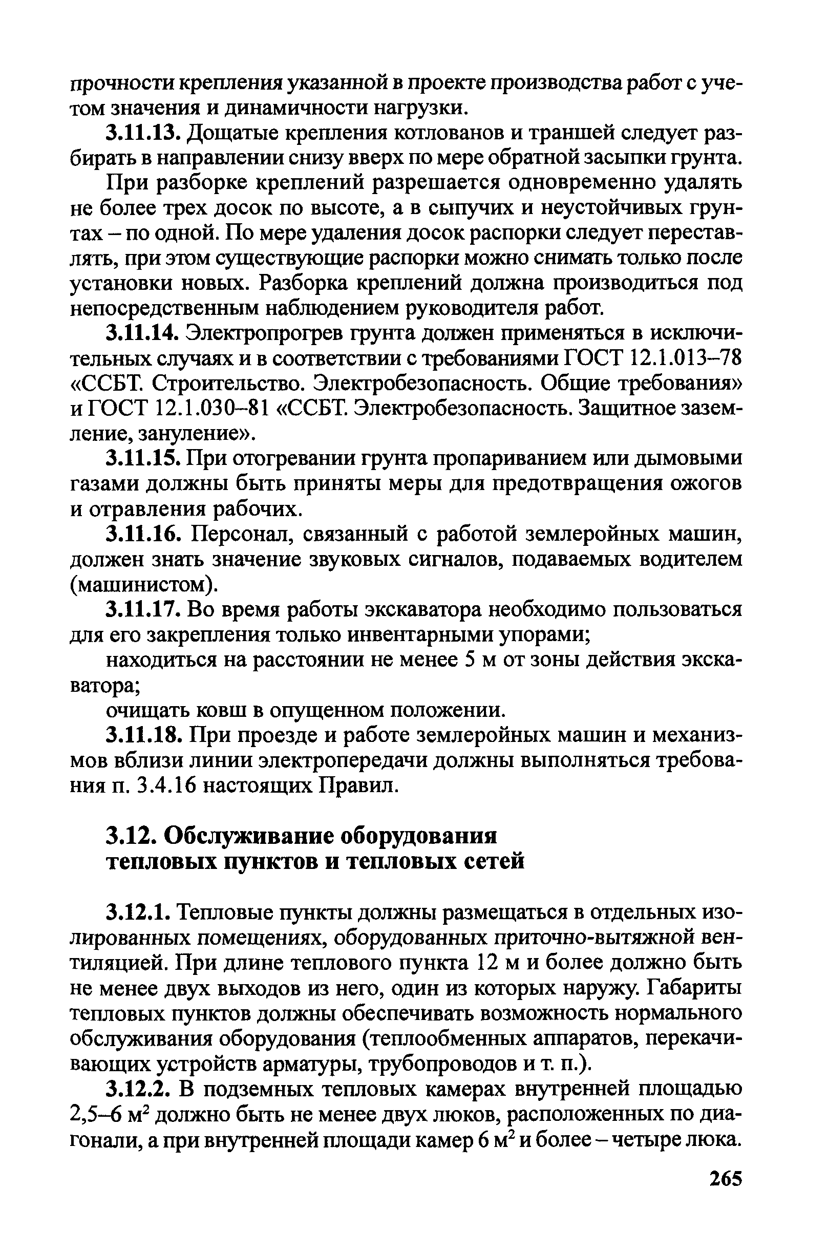 | Оглавление: | Предисловие 1 Общие положения 1.1 Область и порядок применения правил 1.2 Требования к персоналу 2 Организация мероприятия, обеспечивающие безопасность работ 2.1 Наряд, распоряжение 2.2 Ответственные за безопасность работ, их права и обязанности 2.3 Порядок выдачи и оформления наряда 2.4 Допуск бригады к работе 2.5 Надзор во время работы. Изменения в составе бригады 2.6 Оформление перерывов в работе 2.7 Окончание работы. Сдача-приемка рабочего места. Закрытие наряда 2.8 Работа подрядных организаций 3 Правила техники безопасности при выполнении отдельных работ 3.1 Территория, помещения и рабочие места 3.2 Требования к оборудованию 3.3 Обслуживание оборудования 3.4 Подъем и транспортирование тяжестей 3.5 Работа на высоте, с лесов, подмостей и других приспособлений 3.6 Сварочные работы и работы с паяльной лампой 3.7 Работа в подземных сооружениях и резервуарах 3.8 Обслуживание теплопотребляющих установок и трубопроводов 3.9 Ремонт вращающихся механизмов 3.10 Теплоизоляционные, антикоррозийные и окрасочные работы 3.11 Земляные работы 3.12 Обслуживание оборудования тепловых пунктов и тепловых сетей 3.13 Обслуживание приборов тепловой автоматики и измерений Приложение 1 Форма наряд-допуска Приложение 2 Журнал учета работ по нарядам и распоряжениям Приложение 3 Предельно допустимые концентрации вредных веществ в воздухе рабочей зоны (по ГОСТ 12.1.005-88) Приложение 4 Пределы воспламенения горючих газов в воздухе, % (по объему) Приложение 5 Знаки безопасности Приложение 6 Журнал приемки и осмотра лесов и подмостей Приложение 7 Характеристика взрывоопасных и вредных газов, наиболее часто встречающихся в резервуарах и подземных сооружениях Приложение 8 Постановление правительства Российской Федерации "О вредных и (или) опасных производственных факторах и работах, при выполнении которых проводятся предварительные и периодические медицинские осмотры (обследования), и порядке проведения этих осмотров (обследований)" Приказ Министерства здравоохранения и социального развития Российской Федерации от 16.08.2004 г. № 83 "Об утверждении перечней вредных и (или) опасных производственных факторах и работ, при выполнении которых проводятся предварительные и периодические медицинские осмотры (обследования), и порядке проведения этих осмотров (обследований)" Приложение 1 Перечень вредных и (или) опасных производственных факторах и работ, при выполнении которых проводятся предварительные и периодические медицинские осмотры (обследования) Приложение 2 Перечень работ, при выполнении которых проводятся предварительные и периодические медицинские осмотры (обследования) |