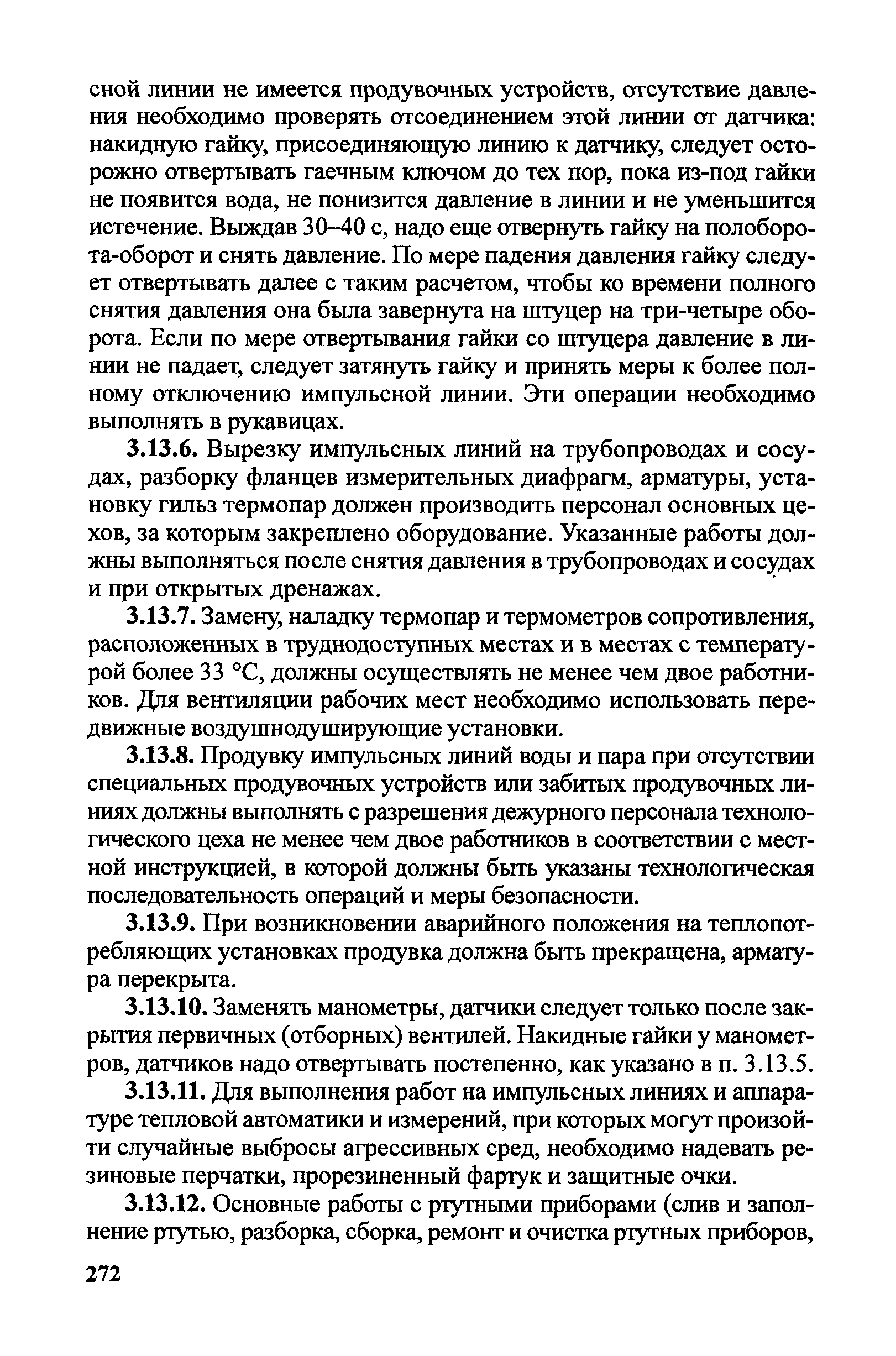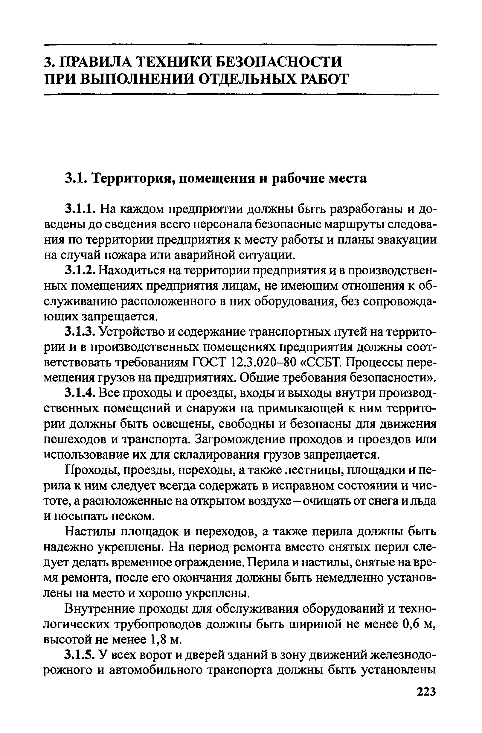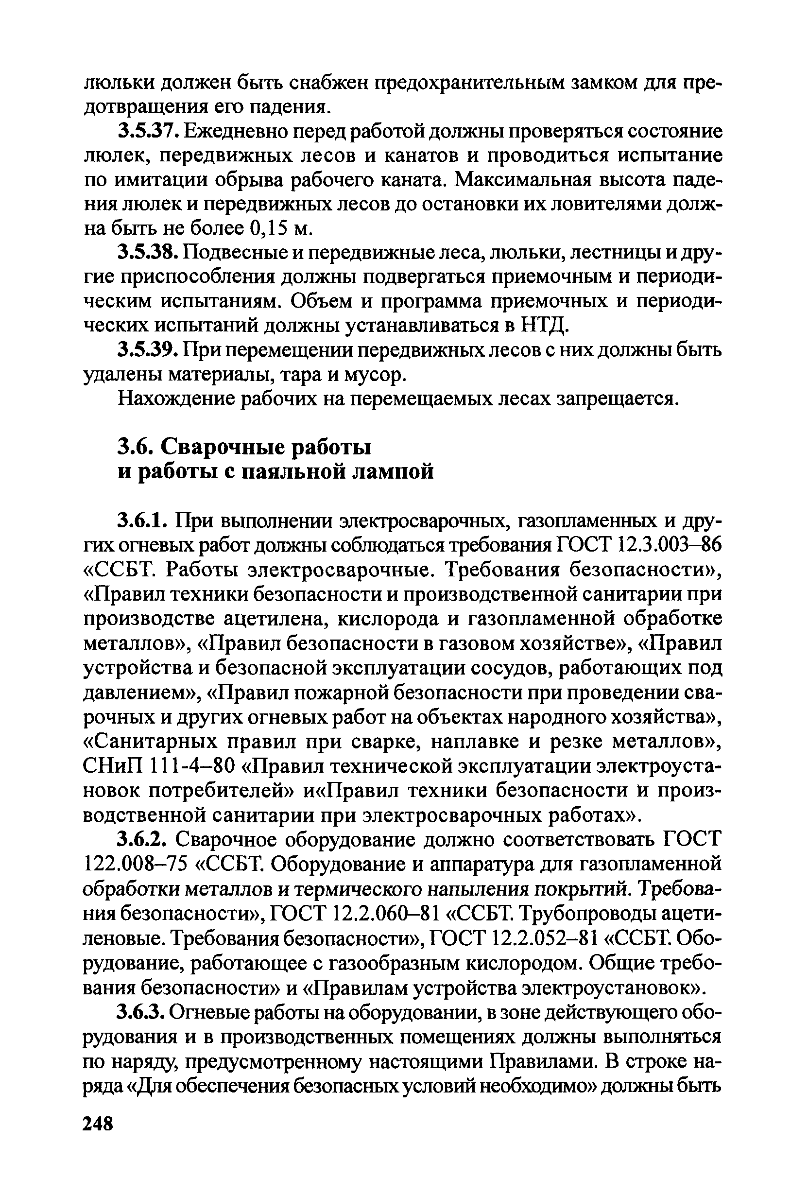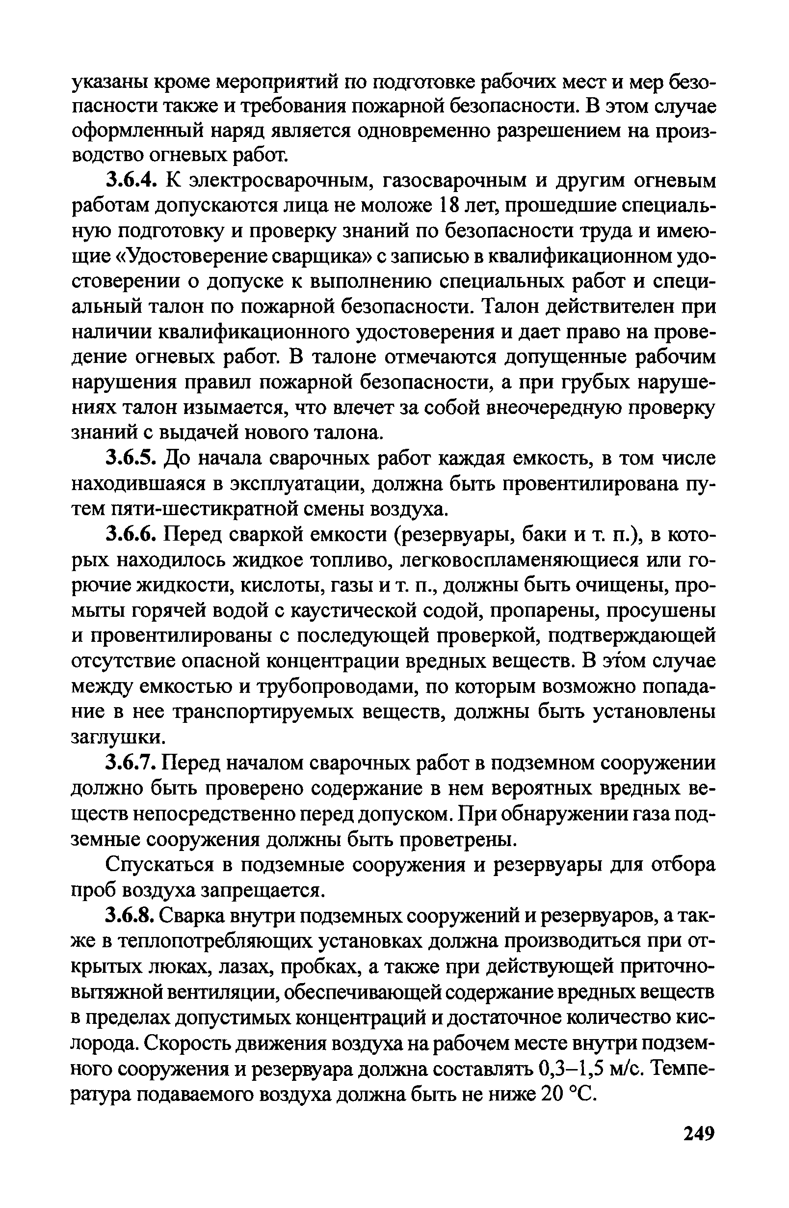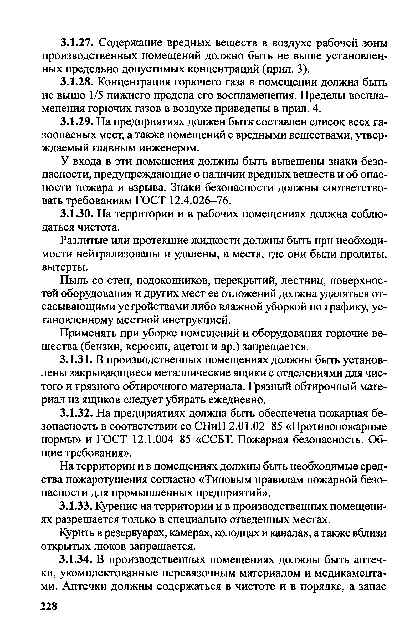 | Оглавление: | Предисловие 1 Общие положения 1.1 Область и порядок применения правил 1.2 Требования к персоналу 2 Организация мероприятия, обеспечивающие безопасность работ 2.1 Наряд, распоряжение 2.2 Ответственные за безопасность работ, их права и обязанности 2.3 Порядок выдачи и оформления наряда 2.4 Допуск бригады к работе 2.5 Надзор во время работы. Изменения в составе бригады 2.6 Оформление перерывов в работе 2.7 Окончание работы. Сдача-приемка рабочего места. Закрытие наряда 2.8 Работа подрядных организаций 3 Правила техники безопасности при выполнении отдельных работ 3.1 Территория, помещения и рабочие места 3.2 Требования к оборудованию 3.3 Обслуживание оборудования 3.4 Подъем и транспортирование тяжестей 3.5 Работа на высоте, с лесов, подмостей и других приспособлений 3.6 Сварочные работы и работы с паяльной лампой 3.7 Работа в подземных сооружениях и резервуарах 3.8 Обслуживание теплопотребляющих установок и трубопроводов 3.9 Ремонт вращающихся механизмов 3.10 Теплоизоляционные, антикоррозийные и окрасочные работы 3.11 Земляные работы 3.12 Обслуживание оборудования тепловых пунктов и тепловых сетей 3.13 Обслуживание приборов тепловой автоматики и измерений Приложение 1 Форма наряд-допуска Приложение 2 Журнал учета работ по нарядам и распоряжениям Приложение 3 Предельно допустимые концентрации вредных веществ в воздухе рабочей зоны (по ГОСТ 12.1.005-88) Приложение 4 Пределы воспламенения горючих газов в воздухе, % (по объему) Приложение 5 Знаки безопасности Приложение 6 Журнал приемки и осмотра лесов и подмостей Приложение 7 Характеристика взрывоопасных и вредных газов, наиболее часто встречающихся в резервуарах и подземных сооружениях Приложение 8 Постановление правительства Российской Федерации "О вредных и (или) опасных производственных факторах и работах, при выполнении которых проводятся предварительные и периодические медицинские осмотры (обследования), и порядке проведения этих осмотров (обследований)" Приказ Министерства здравоохранения и социального развития Российской Федерации от 16.08.2004 г. № 83 "Об утверждении перечней вредных и (или) опасных производственных факторах и работ, при выполнении которых проводятся предварительные и периодические медицинские осмотры (обследования), и порядке проведения этих осмотров (обследований)" Приложение 1 Перечень вредных и (или) опасных производственных факторах и работ, при выполнении которых проводятся предварительные и периодические медицинские осмотры (обследования) Приложение 2 Перечень работ, при выполнении которых проводятся предварительные и периодические медицинские осмотры (обследования) |