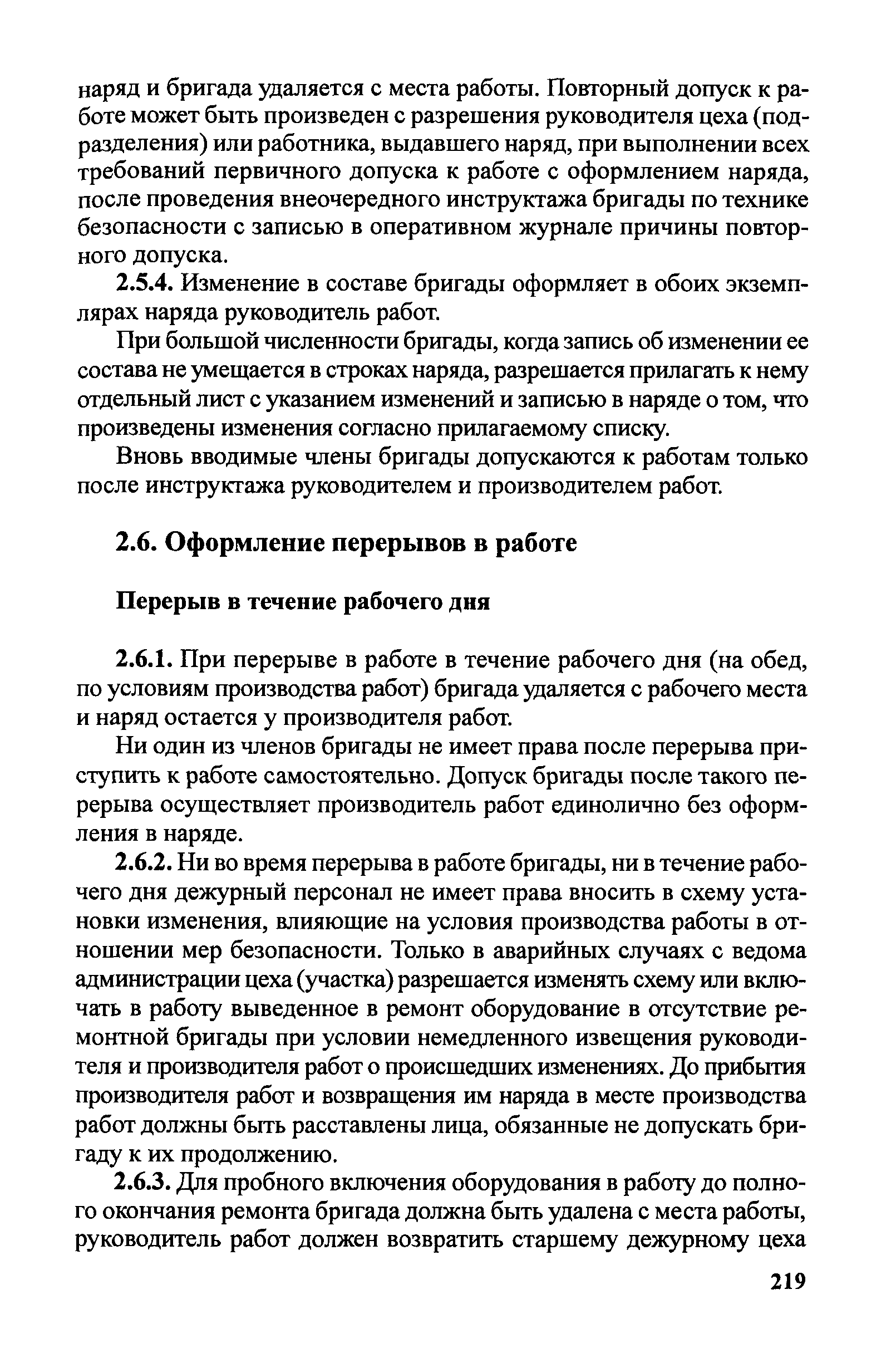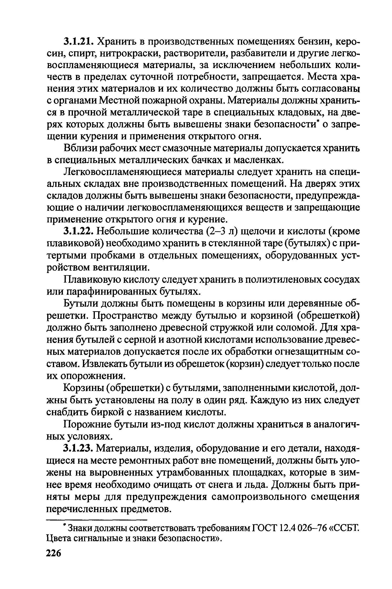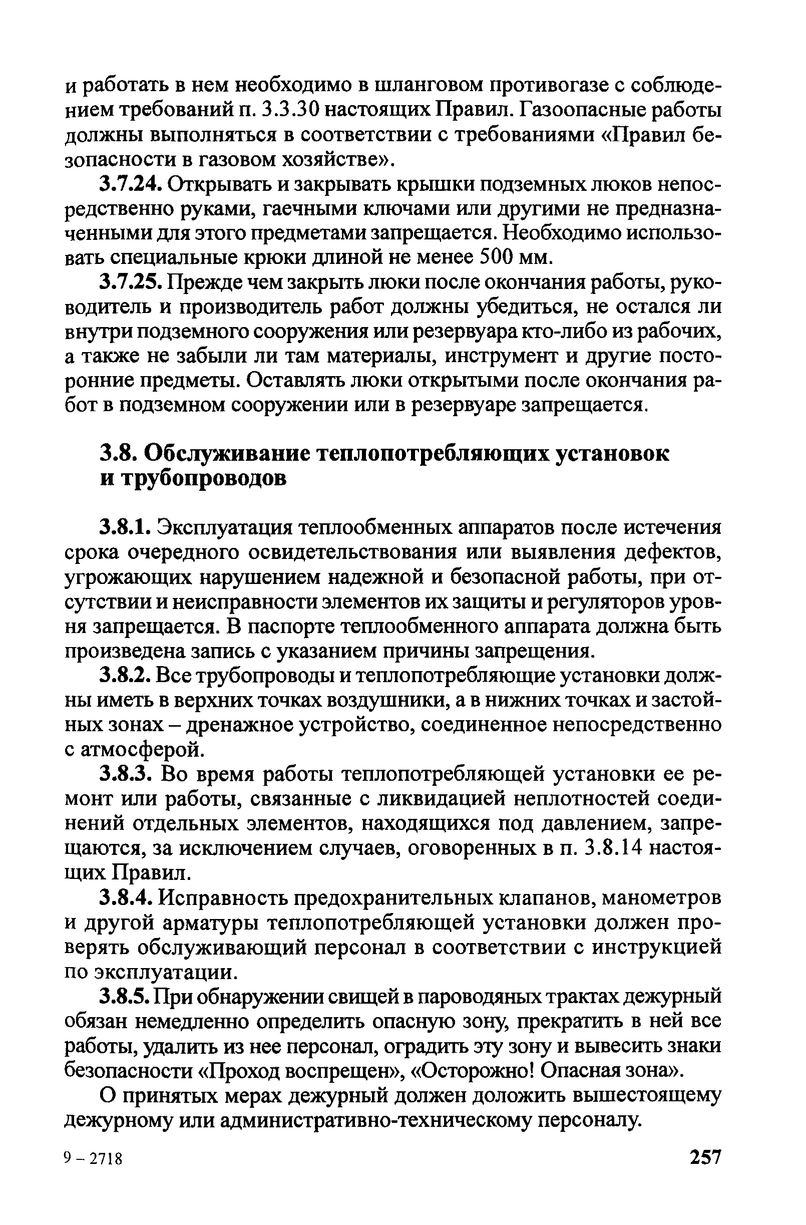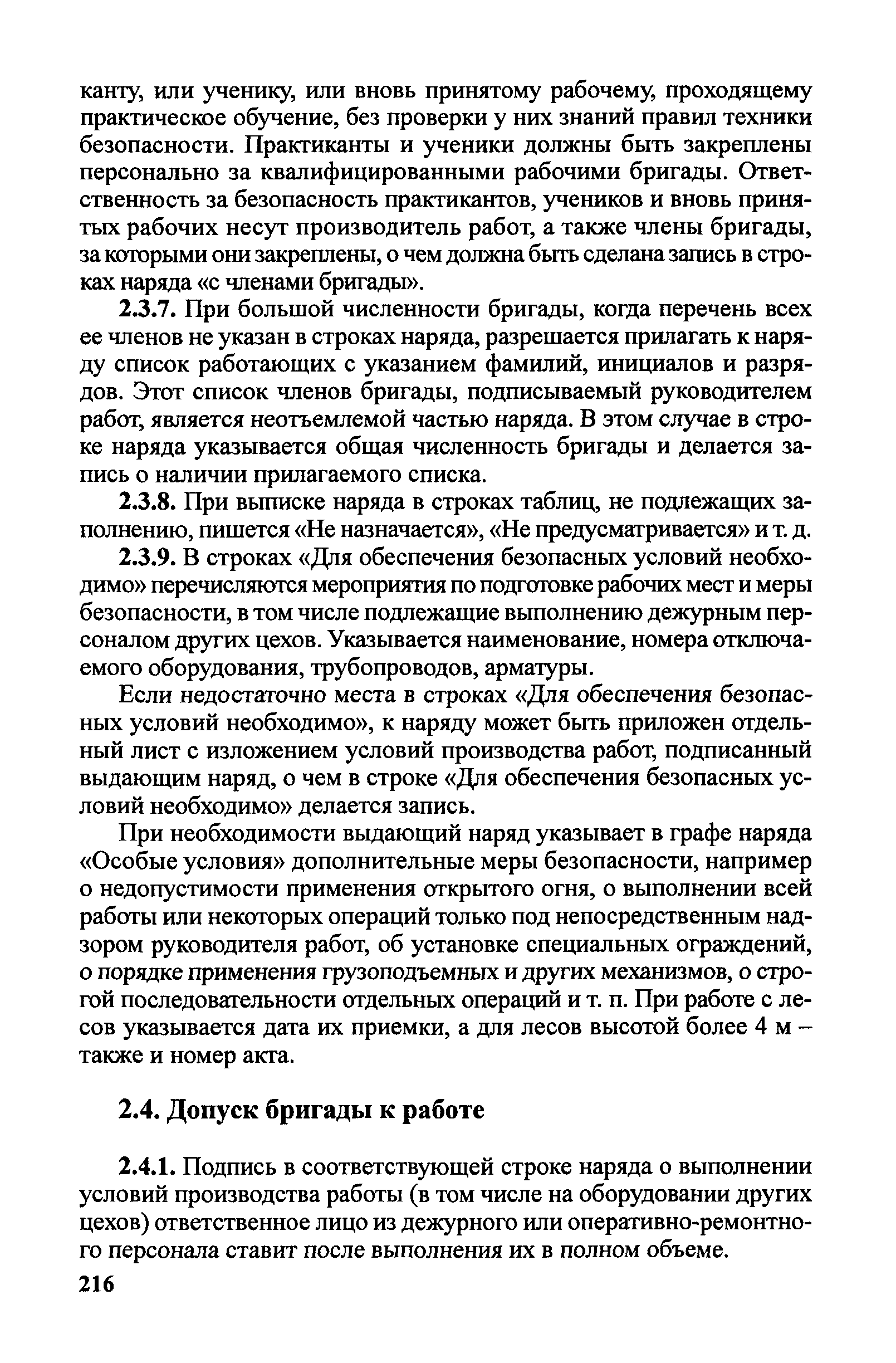 | Оглавление: | Предисловие 1 Общие положения 1.1 Область и порядок применения правил 1.2 Требования к персоналу 2 Организация мероприятия, обеспечивающие безопасность работ 2.1 Наряд, распоряжение 2.2 Ответственные за безопасность работ, их права и обязанности 2.3 Порядок выдачи и оформления наряда 2.4 Допуск бригады к работе 2.5 Надзор во время работы. Изменения в составе бригады 2.6 Оформление перерывов в работе 2.7 Окончание работы. Сдача-приемка рабочего места. Закрытие наряда 2.8 Работа подрядных организаций 3 Правила техники безопасности при выполнении отдельных работ 3.1 Территория, помещения и рабочие места 3.2 Требования к оборудованию 3.3 Обслуживание оборудования 3.4 Подъем и транспортирование тяжестей 3.5 Работа на высоте, с лесов, подмостей и других приспособлений 3.6 Сварочные работы и работы с паяльной лампой 3.7 Работа в подземных сооружениях и резервуарах 3.8 Обслуживание теплопотребляющих установок и трубопроводов 3.9 Ремонт вращающихся механизмов 3.10 Теплоизоляционные, антикоррозийные и окрасочные работы 3.11 Земляные работы 3.12 Обслуживание оборудования тепловых пунктов и тепловых сетей 3.13 Обслуживание приборов тепловой автоматики и измерений Приложение 1 Форма наряд-допуска Приложение 2 Журнал учета работ по нарядам и распоряжениям Приложение 3 Предельно допустимые концентрации вредных веществ в воздухе рабочей зоны (по ГОСТ 12.1.005-88) Приложение 4 Пределы воспламенения горючих газов в воздухе, % (по объему) Приложение 5 Знаки безопасности Приложение 6 Журнал приемки и осмотра лесов и подмостей Приложение 7 Характеристика взрывоопасных и вредных газов, наиболее часто встречающихся в резервуарах и подземных сооружениях Приложение 8 Постановление правительства Российской Федерации "О вредных и (или) опасных производственных факторах и работах, при выполнении которых проводятся предварительные и периодические медицинские осмотры (обследования), и порядке проведения этих осмотров (обследований)" Приказ Министерства здравоохранения и социального развития Российской Федерации от 16.08.2004 г. № 83 "Об утверждении перечней вредных и (или) опасных производственных факторах и работ, при выполнении которых проводятся предварительные и периодические медицинские осмотры (обследования), и порядке проведения этих осмотров (обследований)" Приложение 1 Перечень вредных и (или) опасных производственных факторах и работ, при выполнении которых проводятся предварительные и периодические медицинские осмотры (обследования) Приложение 2 Перечень работ, при выполнении которых проводятся предварительные и периодические медицинские осмотры (обследования) |