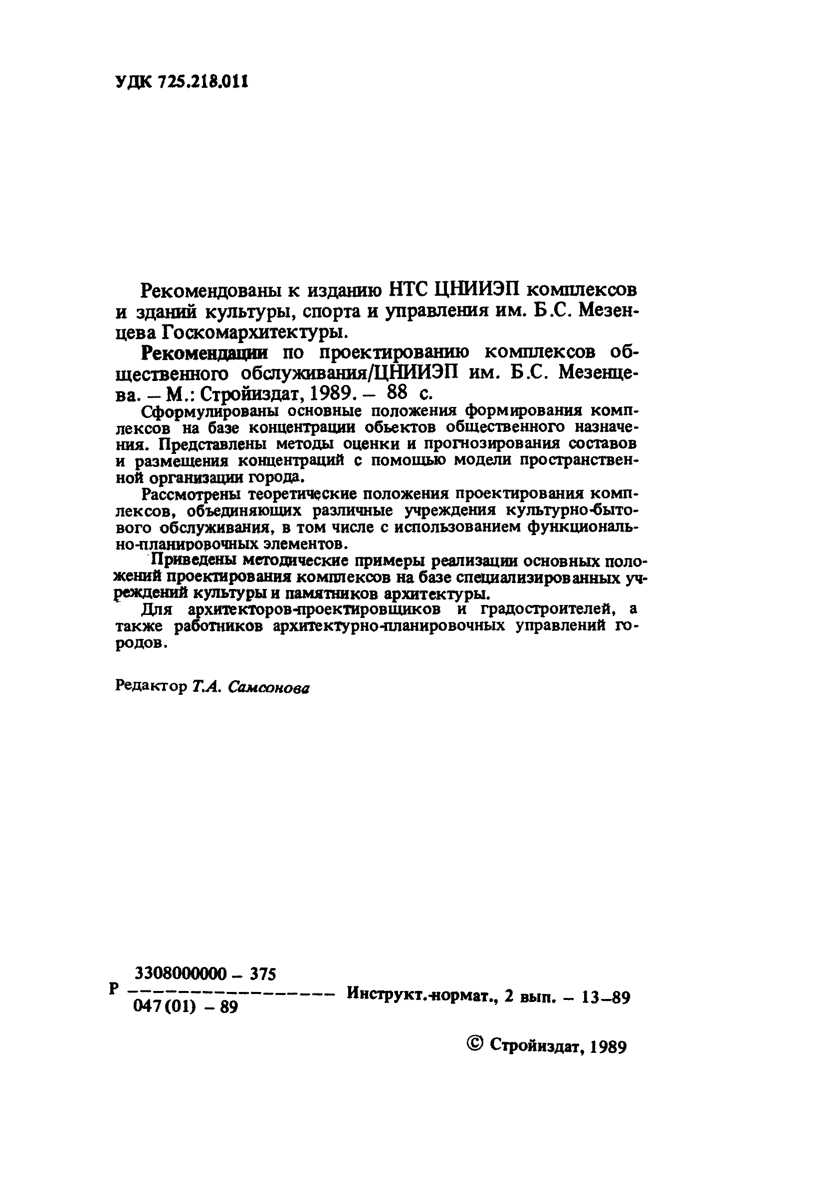 | Название рус.: | Рекомендации по проектированию комплексов общественного обслуживания |