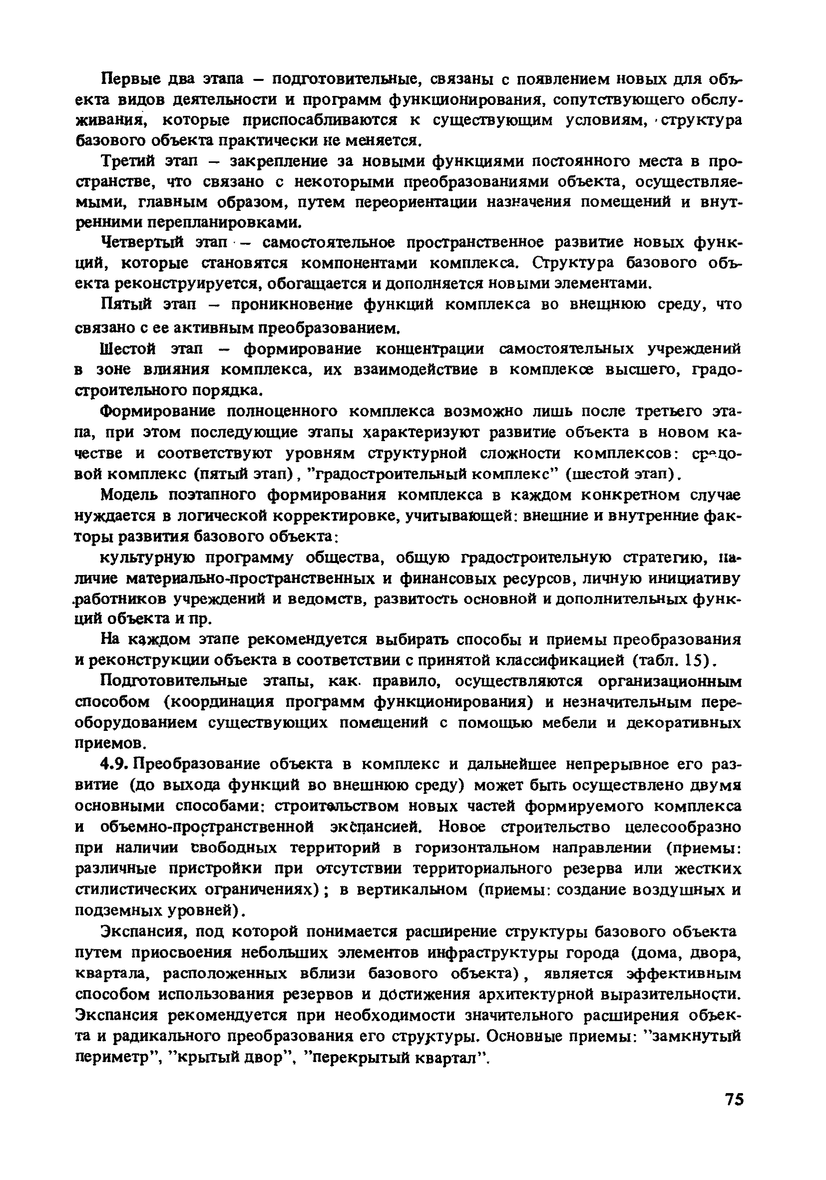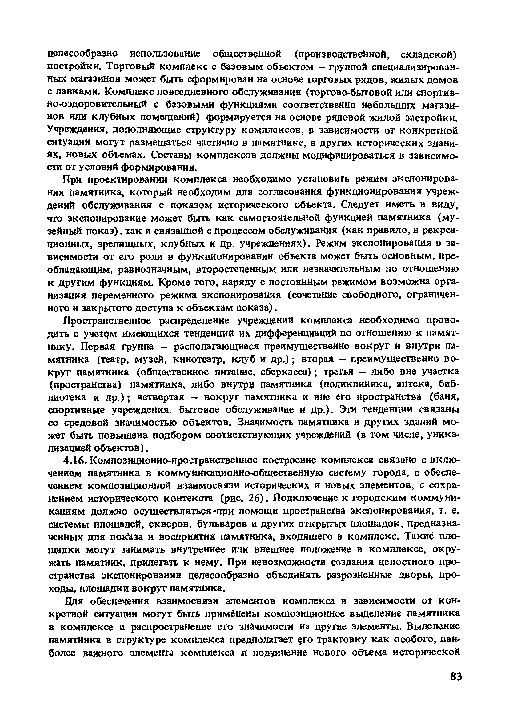 | Область применения: | В документе сформулированы основные положения формирования комплексов на базе концентрации объектов общественного назначения. Представлены методы оценки и прогнозирования составов и размещения концентраций с помощью модели пространственной организация города. Рассмотрены теоретические положения проектирования комплексов, объединяющих различные учреждения культурно-бытового обслуживания, в том числе с использованием функционально-планировочных элементов. Приведены методические примеры реализации основных положений проектирования комплексов на базе специализированных учреждений культуры и памятников архитектуры. Для архитекторов-проектировщиков и градостроителей, а также работников архитектурно-планировочных управлений городов. |