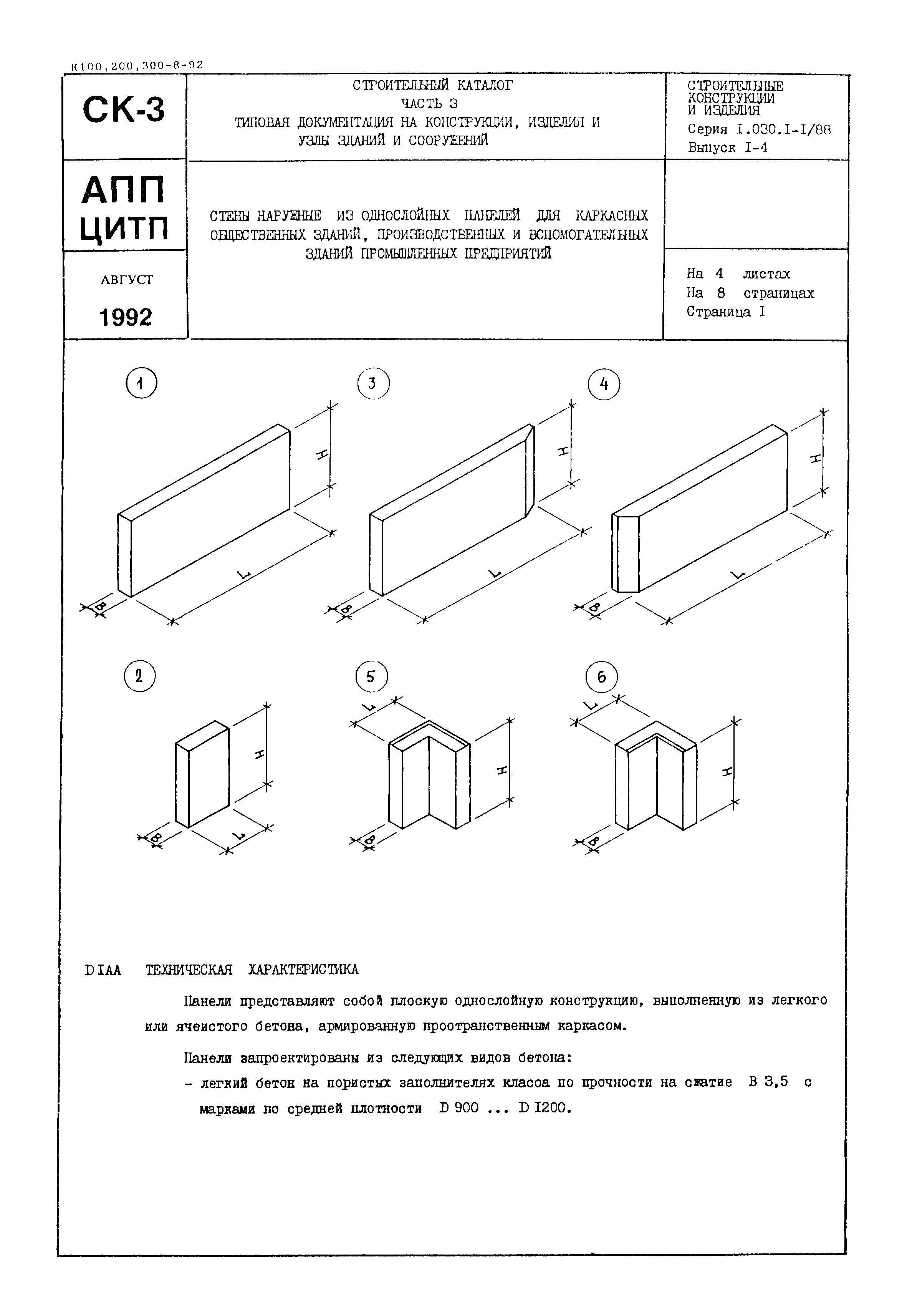 Скачать Серия 1.030.1-1/88 Выпуск 1-4. Панели из легких бетонов толщиной 350 мм для стен общественных зданий и вспомогательных зданий промышленных предприятий. Опалубка и армирование. Рабочие чертежиДата актуализации: 01.01.2021