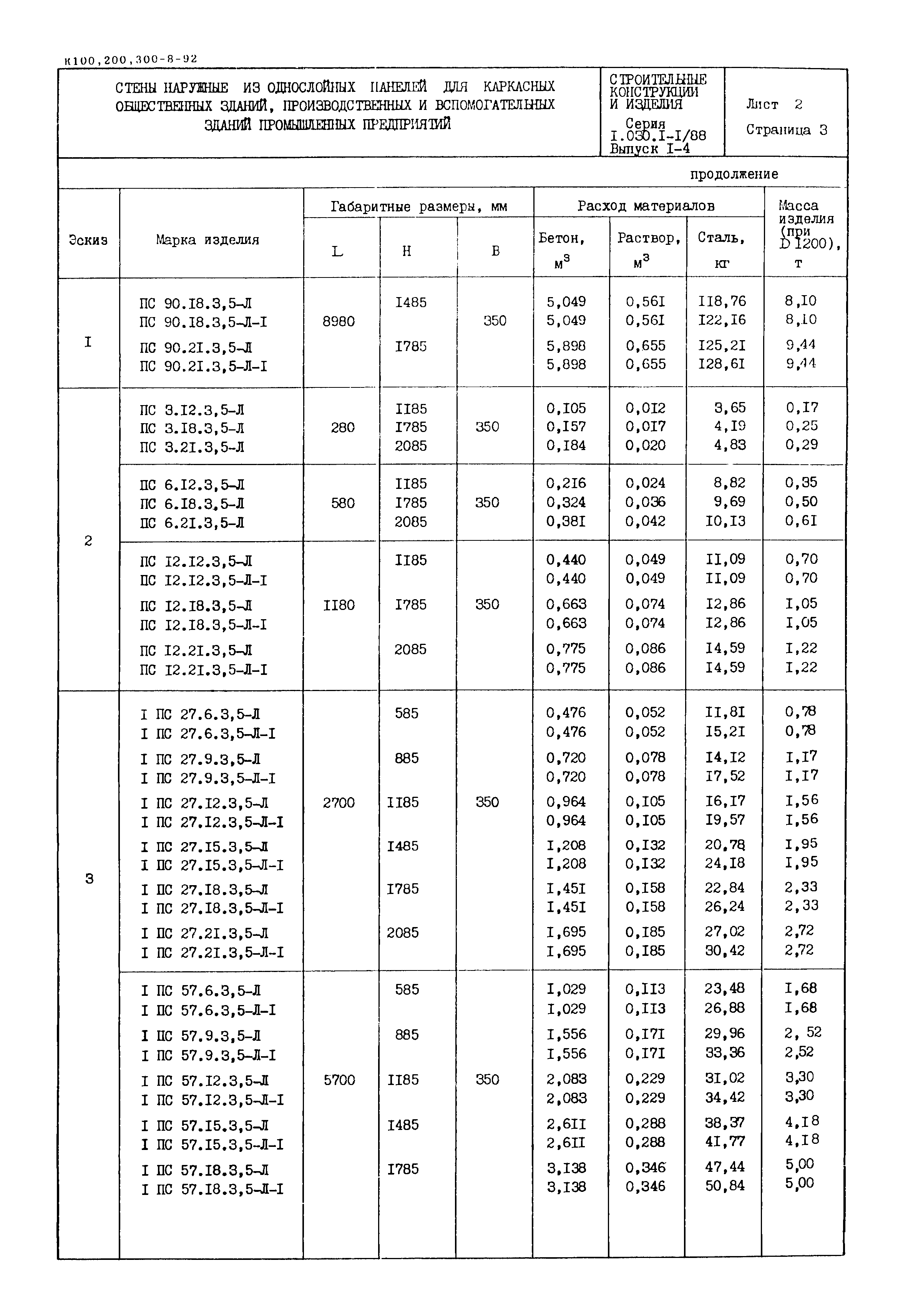 | Оглавление: | 1.030.1-1/88.1-4-ТТ Технические требования 1.030.1-1/88.1-4-К1 Панели ПС 30.6.3.5…, ПС30.9.3.5… 1.030.1-1/88.1-4-К2 Панели ПС 30.12.3.5…, ПС 60.15.3.5… 1.030.1-1/88.1-4-К3 Панели ПС 30.18.3.5…, ПС 30.21.3.5… 1.030.1-1/88.1-4-К4 Панели ПС 60.6.3.5…, ПС 60.9.3.5… 1.030.1-1/88.1-4-К5 Панели ПС 60.12.3.5…, ПС 60.15.3.5… 1.030.1-1/88.1-4-К6 Панели ПС 60.18.3.5…, ПС 60.21.3.5… 1.030.1-1/88.1-4-К7 Панели ПС 72.9.3.5 1.030.1-1/88.1-4-К8 Панели ПС 72.12.3.5…, ПС 72.15.3.5… 1.030.1-1/88.1-4-К9 Панели ПС 72.18.3.5…, ПС 72.21.3.5… 1.030.1-1/88.1-4-К10 Панели ПС 90.12.3.5…, ПС 90.15.3.5… 1.030.1-1/88.1-4-К11 Панели ПС 90.18.3.5…, ПС 90.21.3.5… 1.030.1-1/88.1-4-К12 Панели 1ПС 27.6.3.5…, 1ПС 27.9.3.5… 1.030.1-1/88.1-4-К13 Панели 1ПС 27.12.3.5…, 1ПС 27.15.3.5… 1.030.1-1/88.1-4-К14 Панели 1ПС 27.18.3.5…, 1ПС 27.21.3.5… 1.030.1-1/88.1-4-К15 Панели 2ПС 27.6.3.5…, 2ПС 27.9.3.5… 1.030.1-1/88.1-4-К16 Панели 2ПС 27.12.3.5…, 2ПС 27.15.3.5… 1.030.1-1/88.1-4-К17 Панели 2ПС 27.18.3.5…, 2ПС 27.21.3.5… 1.030.1-1/88.1-4-К18 Панели 1ПС 57.6.3.5…, 1ПС57.9.3.5… 1.030.1-1/88.1-4-К19 Панели 1ПС 57.12.3.5…, 1ПС 57.15.3.5… 1.030.1-1/88.1-4-К20 Панели 1ПС 57.18.3.5…, 1ПС 57.21.3.5… 1.030.1-1/88.1-4-К21 Панели 2ПС 57.6.3.5…, 2ПС 57.9.3.5… 1.030.1-1/88.1-4-К22 Панели 2ПС 57.12.3.5…, 2ПС 57.15.3.5… 1.030.1-1/88.1-4-К23 Панели 2ПС 57.18.3.5…, 2ПС 57.21.3.5… 1.030.1-1/88.1-4-К24 Панели ПС 3.12.3.5…, ПС 3.18.3.5…, ПС 3.21.3.5… 1.030.1-1/88.1-4-К25 Панели ПС 6.12.3.5…, ПС 6.18.3.5…, ПС 6.21.3.5… 1.030.1-1/88.1-4-К26 Панели ПС 12.12.3.5…, ПС 12.18.3.5…, ПС 12.21.3.5… 1.030.1-1/88.1-4-К27 Панели ПС 12.12.3.5…-1, ПС 12.18.3.5…-1, ПС 12.21.3.5…-1 1.030.1-1/88.1-4-К28 Панели 3ПС 56.60.35-Л, 3ПС 56.90.35…-Л 1.030.1-1/88.1-4-К29 Панели 3ПС 56.120.35-Л, 3ПС 56.150.35…-Л 1.030.1-1/88.1-4-К30 Панели 3ПС 56.180.35-Л, 3ПС 56.210.35…-Л 1.030.1-1/88.1-4-К31 Панели 4ПС 67.120.35-Л, 3ПС 67.180.35-Л, 3ПС 67.210.35…-Л 1.030.1-1/88.1-4-К32 Панели ПСК 60.6.3.5…, ПСК 60.9.3.5… 1.030.1-1/88.1-4-К33 Панели 1ПСК 57.6.3.5…, 1ПСК 57.9.3.5… 1.030.1-1/88.1-4-К34 Панели 2ПСК 57.6.3.5…, 2ПСК 57.9.3.5… 1.030.1-1/88.1-4-К35 Панели 1ПС 27,5.6.3.5…, 1ПС 27,5.9.3.5… 1.030.1-1/88.1-4-К36 Панели 1ПС 27,5.12.3.5…, 1ПС 27,5.15.3.5… 1.030.1-1/88.1-4-К37 Панели 1ПС 27,5.18.3.5…, 1ПС 27,5.21.3.5… 1.030.1-1/88.1-4-К38 Панели 2ПС 27,5.6.3.5…, 2ПС 27,5.9.3.5… 1.030.1-1/88.1-4-К39 Панели 2ПС 27,5.12.3.5…, 2ПС 27,5.15.3.5… 1.030.1-1/88.1-4-К40 Панели 2ПС 27,5.18.3.5…, 2ПС 27,5.21.3.5… 1.030.1-1/88.1-4-К41 Панели 1ПС 57,5.6.3.5…, 1ПС 57,5.9.3.5… 1.030.1-1/88.1-4-К42 Панели 1ПС 57,5.12.3.5…, 1ПС 57,5.15.3.5… 1.030.1-1/88.1-4-К43 Панели 1ПС 57,5.18.3.5…, 1ПС 57,5.21.3.5… 1.030.1-1/88.1-4-К44 Панели 2ПС 57,5.6.3.5…, 2ПС 57,5.9.3.5… 1.030.1-1/88.1-4-К45 Панели 2ПС 57,5.12.3.5…, 2ПС 57,5.15.3.5… 1.030.1-1/88.1-4-К46 Панели 2ПС 57,5.18.3.5…, 2ПС 57,5.21.3.5… 1.030.1-1/88.1-4-К47 Панели 3ПС 51.60.3.5…-Л, 3ПС 51.90.35-Л 1.030.1-1/88.1-4-К48 Панели 3ПС 51.120.3.5…-Л, 3ПС 51.150.35-Л 1.030.1-1/88.1-4-К49 Панели 3ПС 51.180.3.5…-Л, 3ПС 51.210.35-Л 1.030.1-1/88.1-4-К50 Панели 4ПС 51.180.3.5…-Л, 4ПС 51.150.35-Л, 4ПС 51.210.35-Л 1.030.1-1/88.1-4-К51 Панели 1ПСК 57.5.6.3.5…, 1ПСК 57.5.9.3.5… 1.030.1-1/88.1-4-К52 Панели 2ПСК 57.5.6.3.5…, 2ПСК 57.5.9.3.5… 1.030.1-1/88.1-4-К53 Узлы 1… 15 1.030.1-1/88.1-4-РС Ведомость расхода стали |