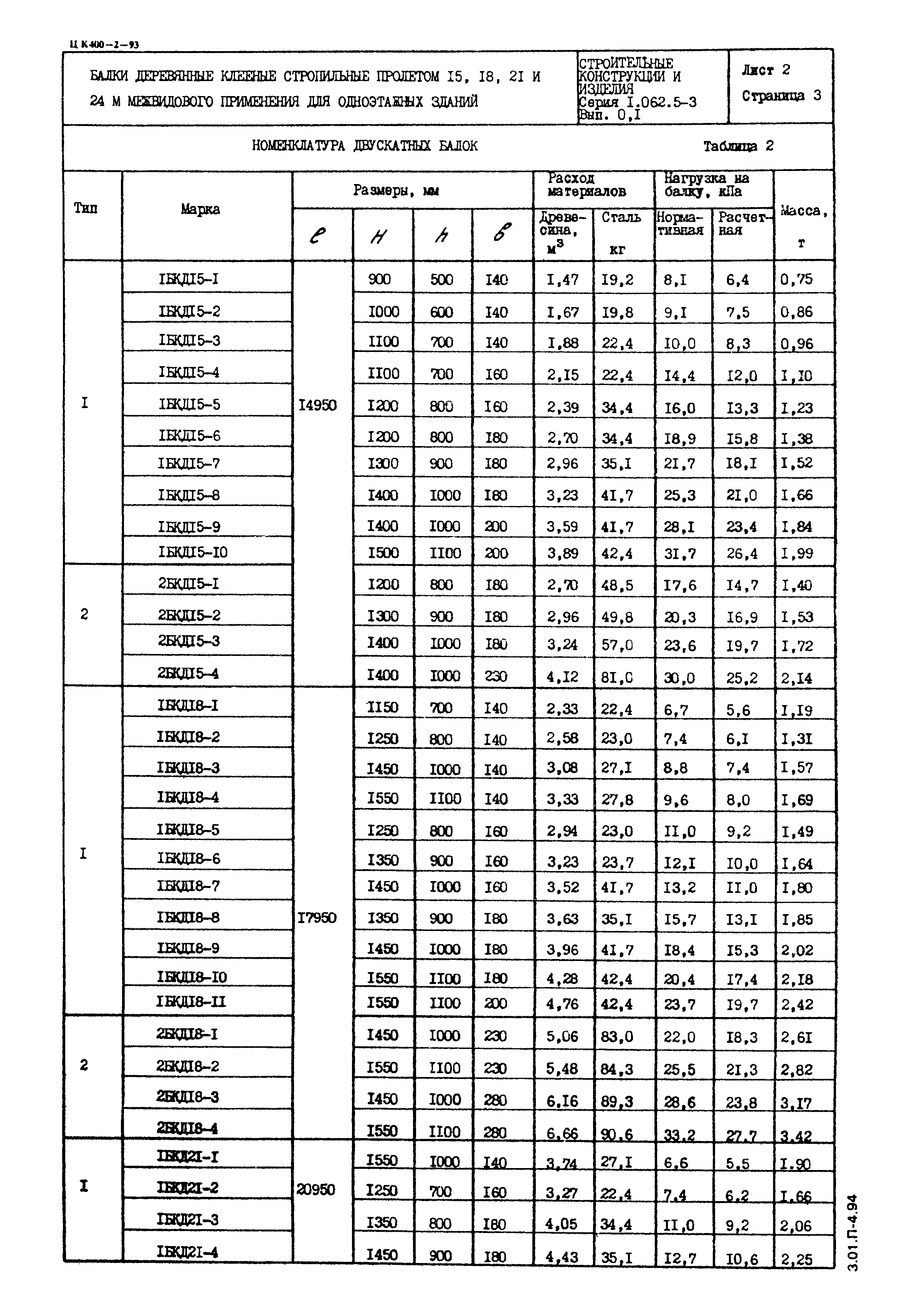 Скачать Серия 1.062.5-3 Балки деревянные клееные стропильные пролетом 15, 18, 21 и 24 м межвидового применения для одноэтажных зданийДата актуализации: 01.01.2021 Серия 1.062.5-3
