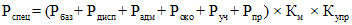 6. Ежемесячные расходы специализированных подразделений и отделов на обеспечение выполнения противофонтанных работ (Рспец) определяются по формуле:
