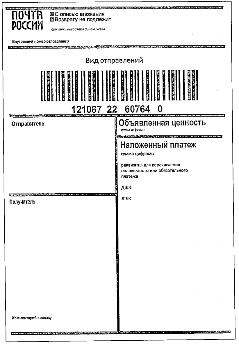 - "с объявленной ценностью и наложенным платежом";