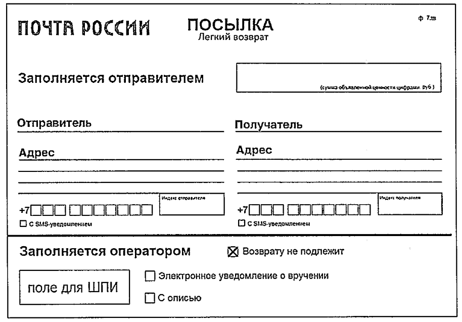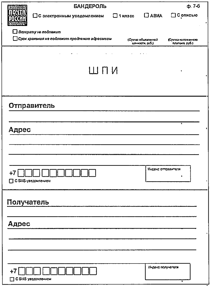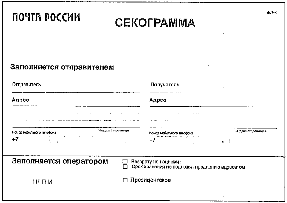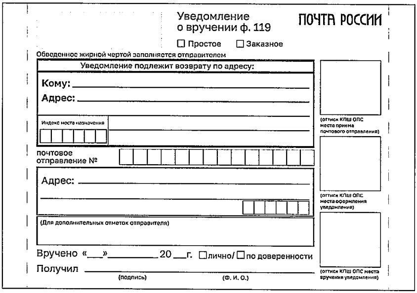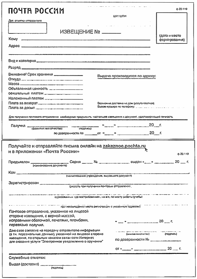 ф. 22/119 на поступившие отправления не подлежат печати и доставке почтальонами.