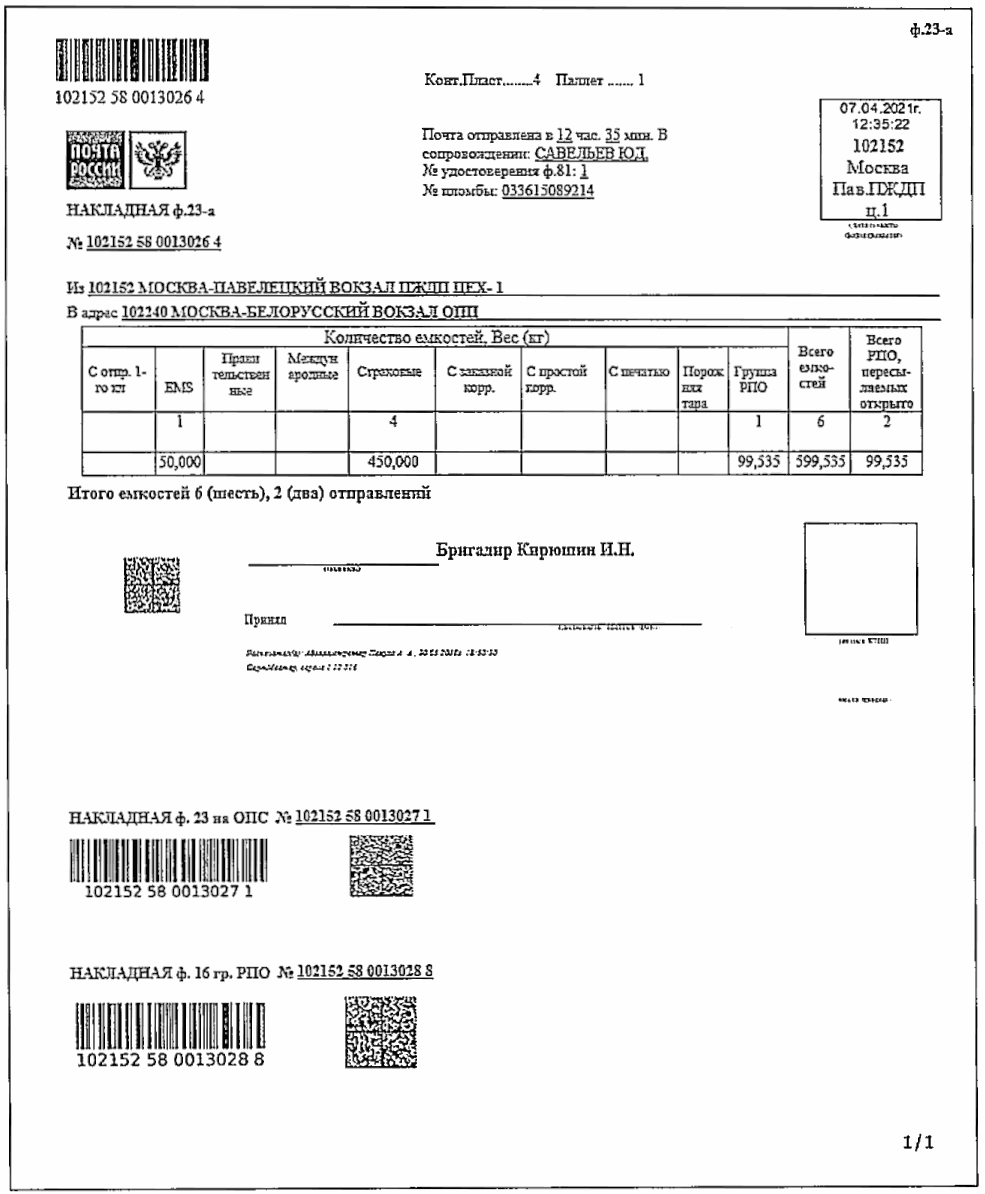 2.12. При расхождении сведений о РПО, в т.ч. разряда "Судебное" и "Административное", в ИС Общества с данными на оболочке/адресном ярлыке, корректными являются сведения, указанные в ИС Общества.