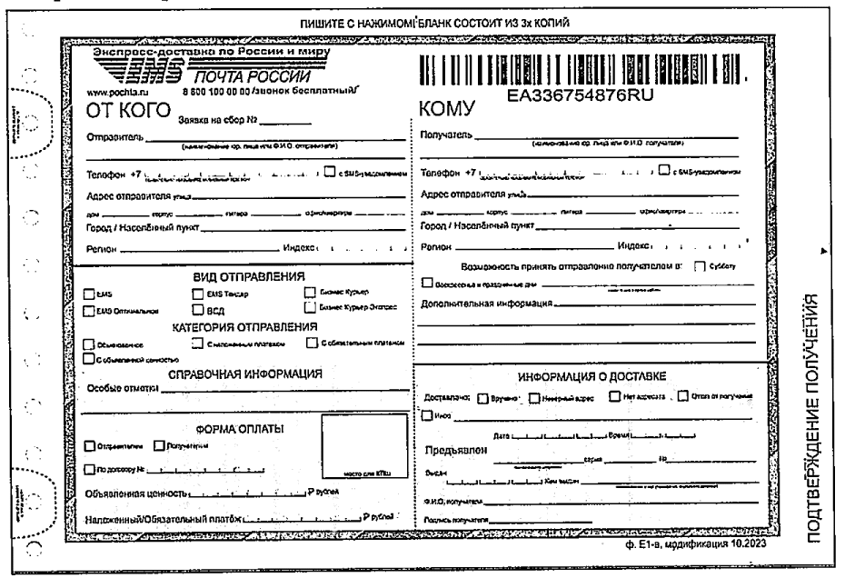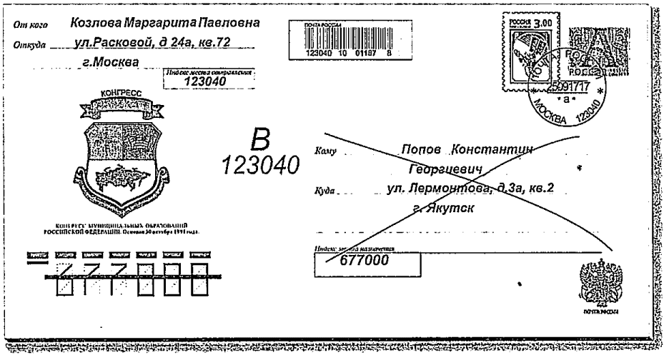 │АО "Почта России", 125252, г. Москва, ул. 3-я Песчаная, │