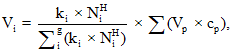 в показателях объема (Vi) по формуле: