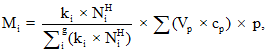 в показателях массы (Мi) по формуле: