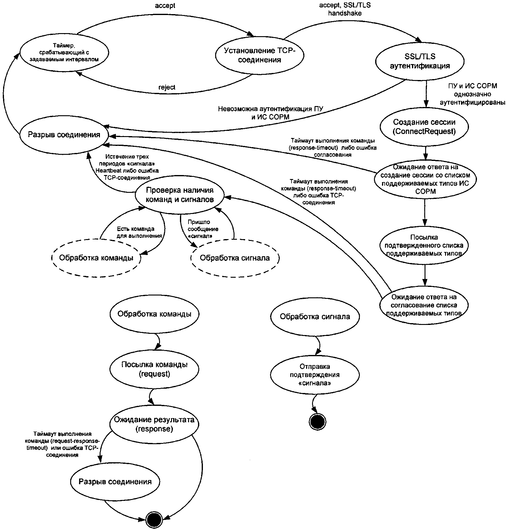 1) ПУ с задаваемым интервалом должен выполнять попытки установления TCP-соединения с ПТС ОРИ по заданному порту. После установления соединения должна выполняться взаимная SSL/TLS-аутентификация;