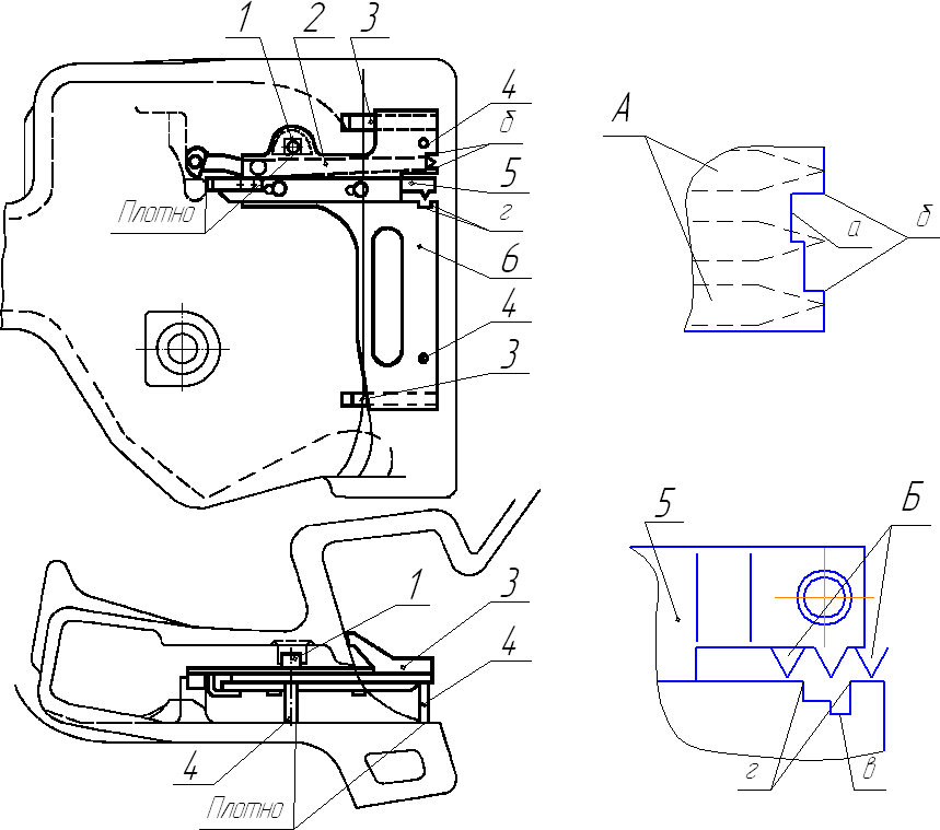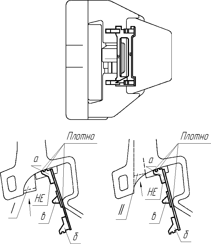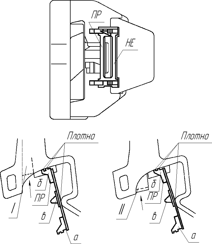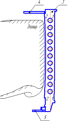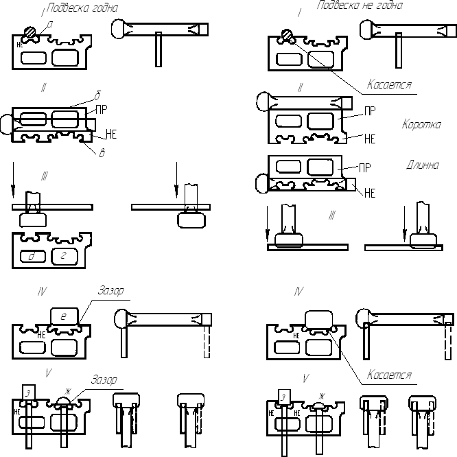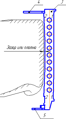 (рисунок 2.4, в), если профильная планка прилегает плотно к нижнему 5 контурному листу, но не прилегает к верхнему 4 контурному листу или наоборот.