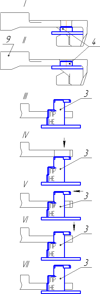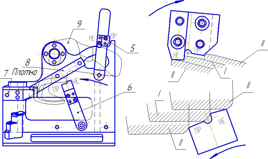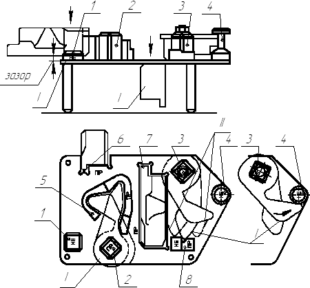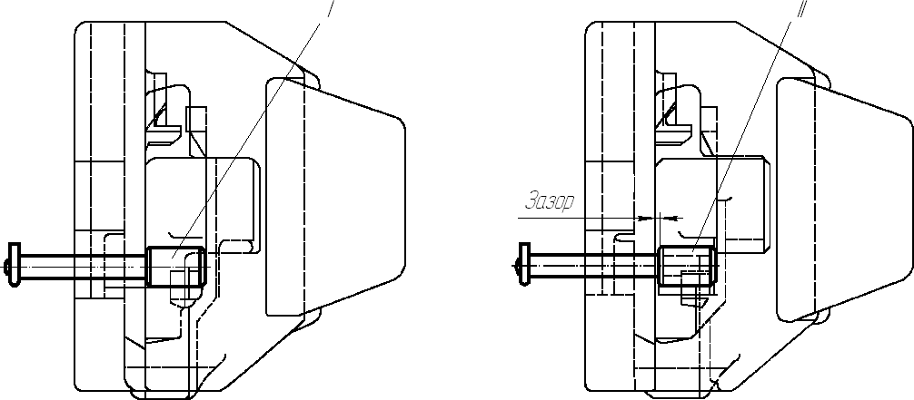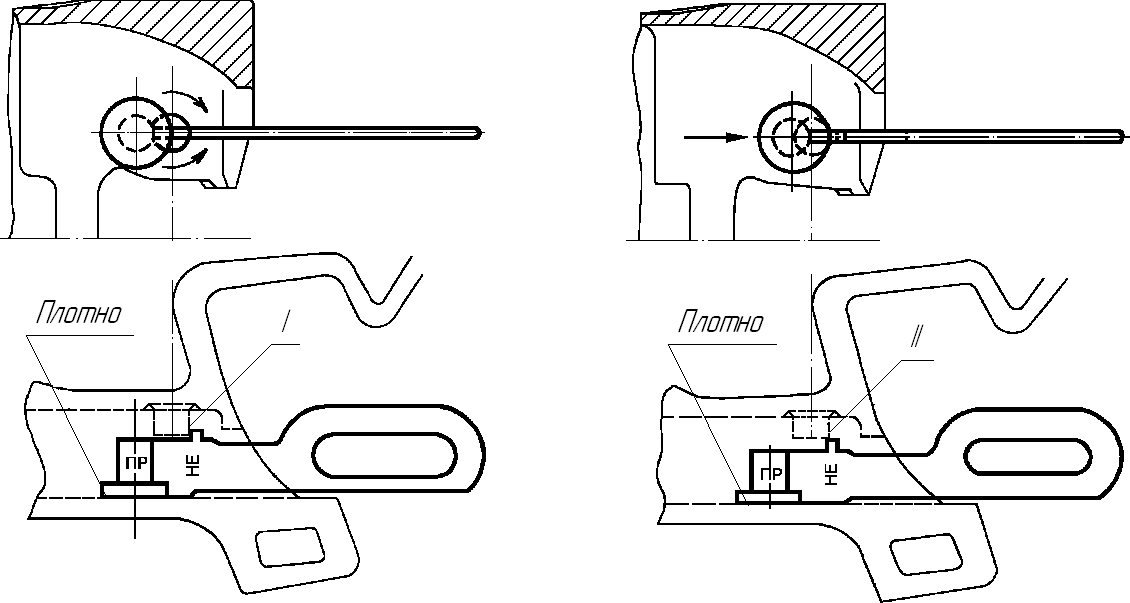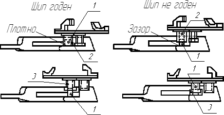 рисунок 2.4, г, поз. I), если щуп 6 не проходит между профильной планкой и ударной поверхностью малого зуба.