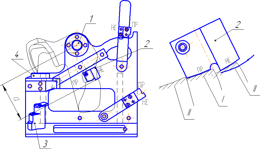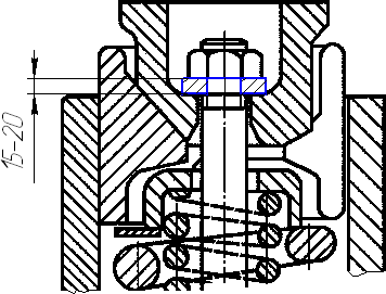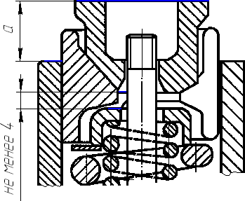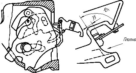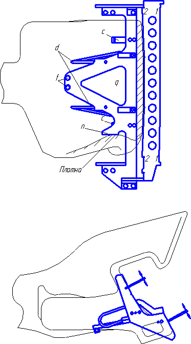 (рисунок 2.4, а) были прижаты к ударной стенке зева, а нижняя часть n основания опиралась на нижнюю перемычку малого зуба. Пружины d, опираясь на кромки окна для замка, прижимают опоры f и q основания шаблона к внутренней стенке малого зуба.