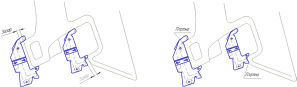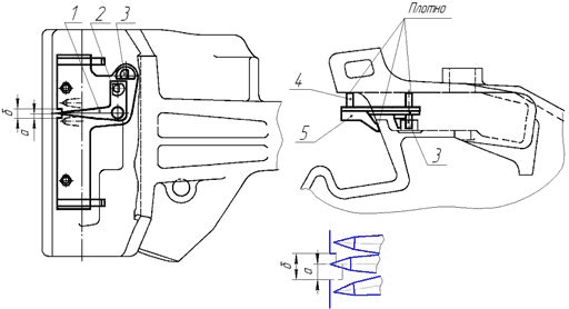 Разность зазоров между профильной планкой и ударными поверхностями малого зуба и зева вверху и внизу не должна превышать 2 мм.