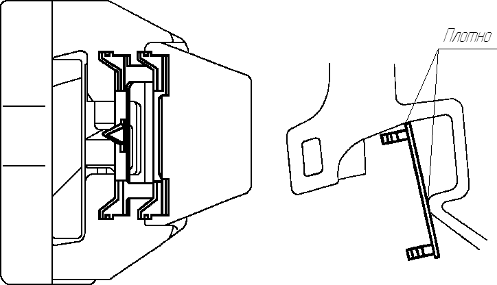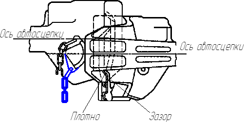 2.1.1 Ширину зева корпуса автосцепки проверяют непроходным шаблоном 821р-1 по всей высоте носка большого зуба. Шаблон прикладывают одним концом к углу малого зуба