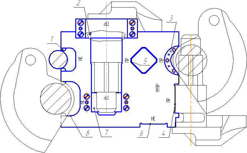 При наличии на корпусе автосцепки верхнего и/или нижнего кронштейна вместо шаблонов 914р-м, 914р/22-м следует использовать шаблоны 914р-2м и 914р/22-2м.