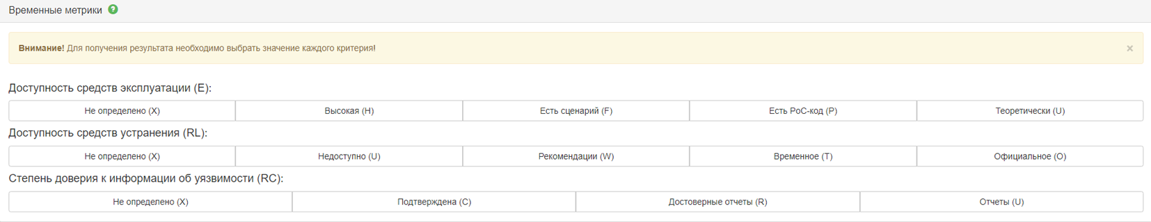 Рисунок 2 - Расчет временных метрик уязвимости