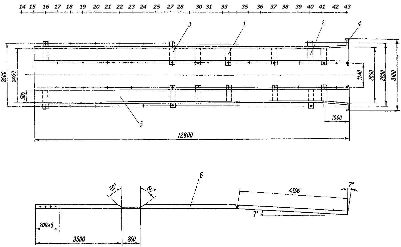 2 шт.; 5 - швеллер 12, ГОСТ 8240-72, - 2 шт.; 6 - уголок