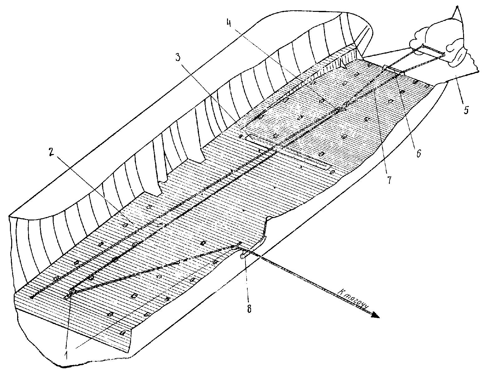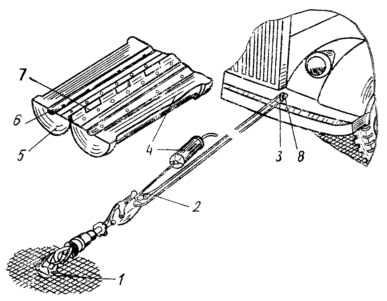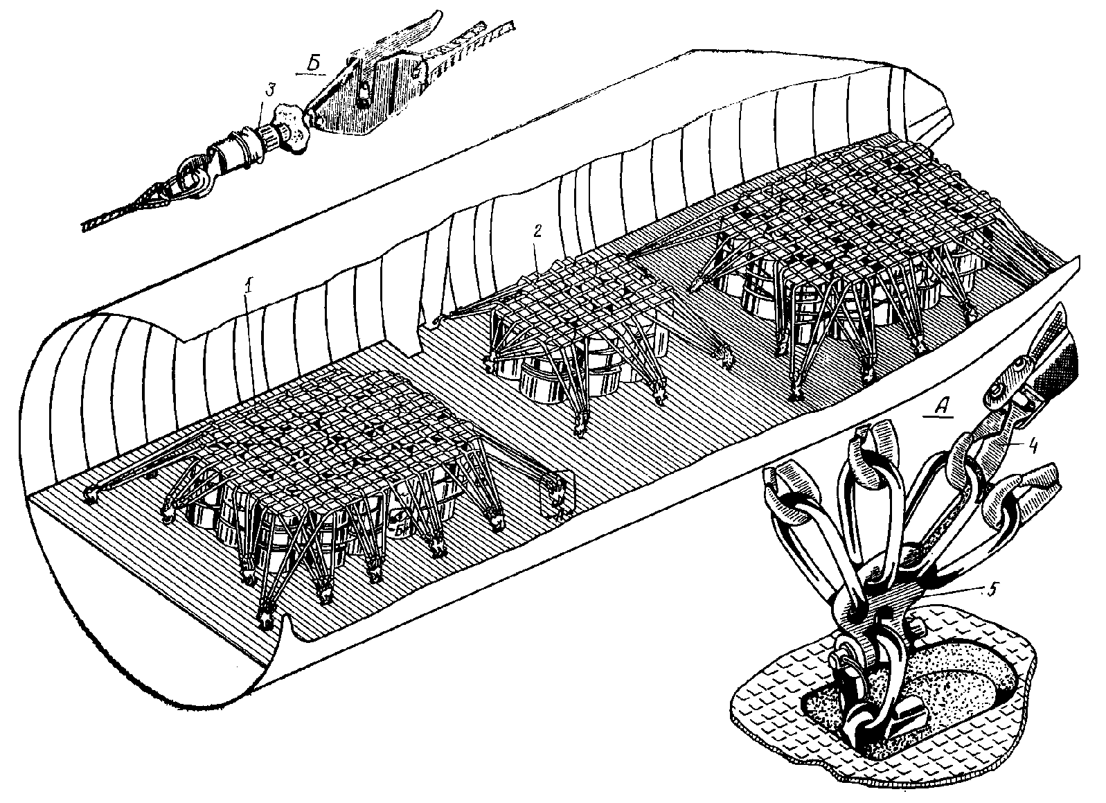 1 - контейнер для сеток; 2 - контейнер для тросов; 3 - винт;
