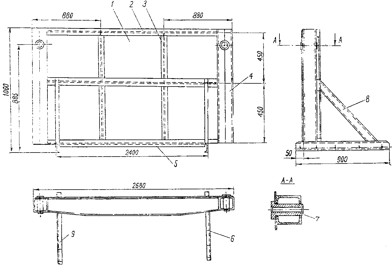 8 - швеллер 12 - 2 шт.; 9 - лист 2540 x 940 x 3,