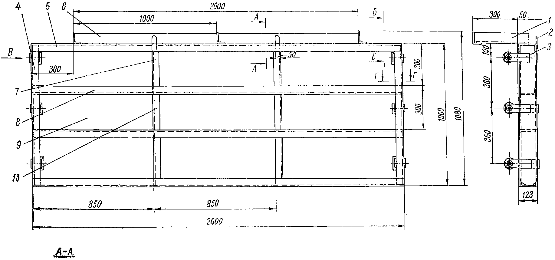 2 шт.; 8 - швеллер 10 - 2 шт.; 9 - швеллер; 10 - 1 шт.