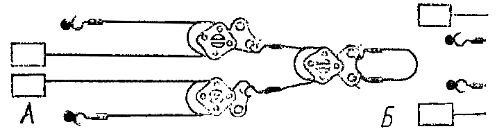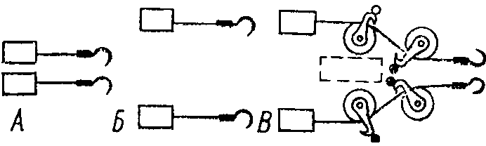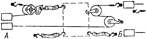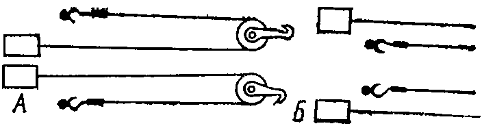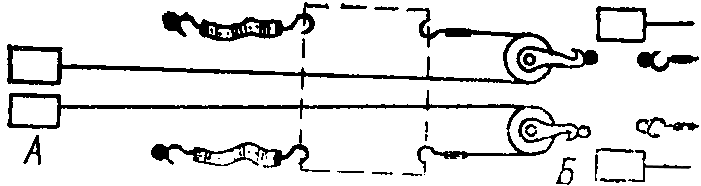 - обвязать (стянуть) группу бочек одним тросом посередине, между верхними и нижними обручами, для чего соединить крюк замка с кольцом троса, стопор крюка закрепить муфтой и натянуть трос тендером. Эту операцию выполняют два грузчика;