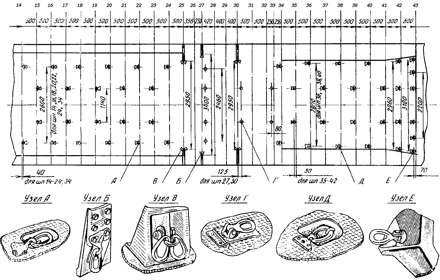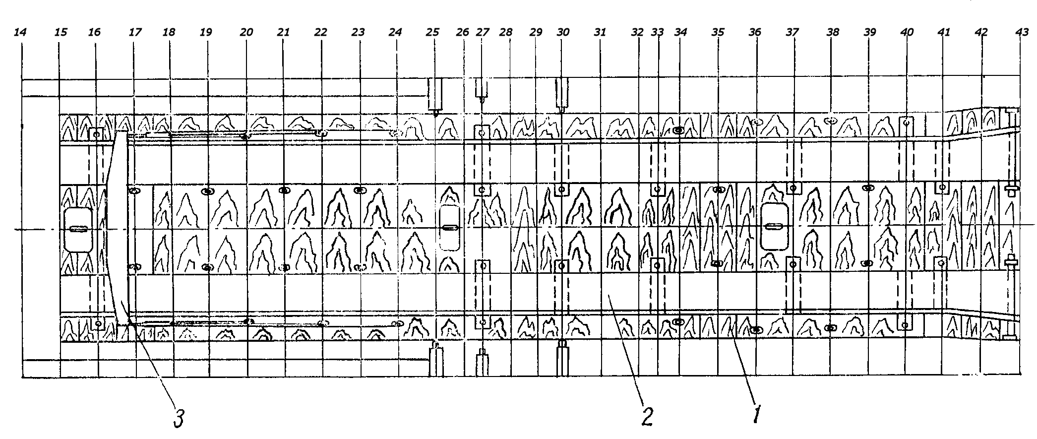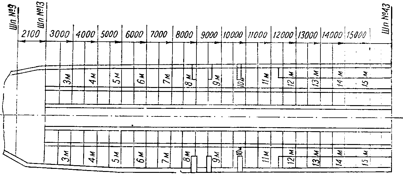 ось шпангоута N 19 | ось шпангоута N 25 | ось шпангоута N 127 | ось шпангоута N 33 | ось шпангоута N 43 |