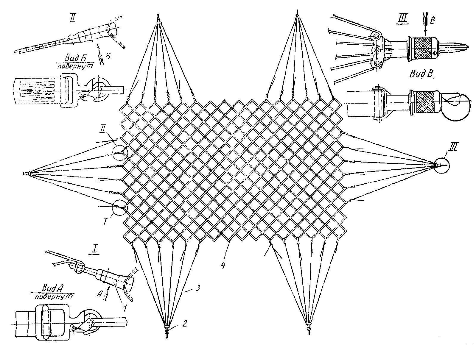 4.25. Для обеспечения быстрой расшвартовки сеток необходимо муфту на швартовочном замке развернуть, оттянуть вверх и развернуть в обратную сторону, при этом крюк замка выйдет из зацепления со швартовочным узлом.