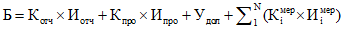 где: Б - объем издержек хозяйствующих субъектов (млн. руб.); Котч - количество полей в формах отчетности, заполненных хозяйствующими субъектами при подаче отчетности в органы власти; Иотч - издержки хозяйствующих субъектов на ознакомление с требованиями о предоставлении отчетности, заполнение форм отчетности, внутреннее согласование форм отчетности и предоставление отчетности в органы власти (рассчитывается как произведение усредненной оценки затраченных часов на сдачу одного поля отчетности на среднюю заработную плату в час) (млн. руб.); Кпро - количество проведенных проверок; Ипро - издержки хозяйствующих субъектов на прохождение проверок (рассчитывается как произведение средней продолжительности проверок на среднее число часов работников, задействованных в ее проведении, и среднюю заработную плату в час) (млн. руб.); Удол - материальный ущерб от действий (бездействий) должностных лиц контрольно-надзорного органа, в том числе с учетом отменных по решению суда результатов проверок (млн. руб.); | ||