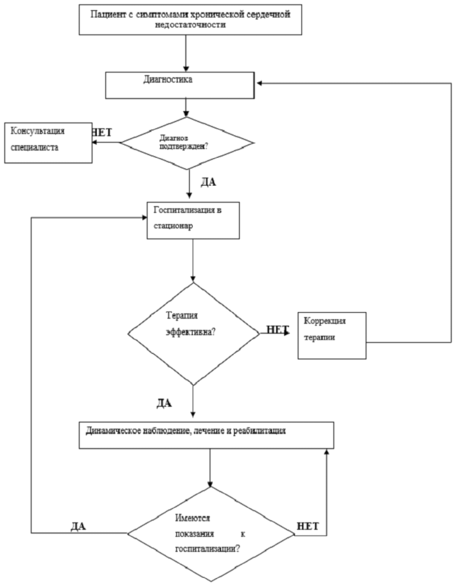 В случае выявления заболевания врачом будет рекомендована терапия, которой необходимо строго следовать. Объем терапии зависит от степени выраженности признаков СН, ее стадии и функционального класса. В ряде случаев может потребоваться госпитализация в стационар для проведения дообследования и подбора терапии (при выраженной/декомпенсированной СН может потребоваться внутривенное введение препаратов и искусственная вентиляция легких).