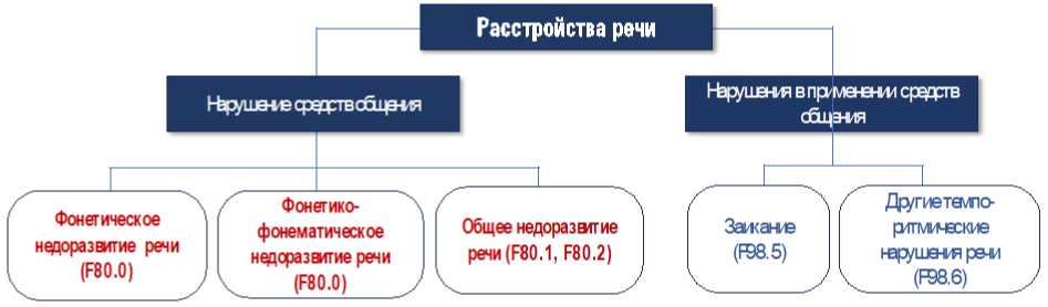 Дети с расстройствами речи по экспрессивному или импрессивному типу (F80.1; F80.2) испытывают трудности при понимании речи и/или произношении слов, предложений.