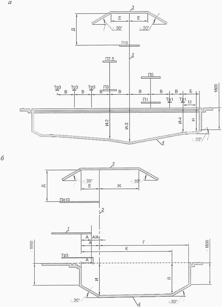 Глубина ванн, м | Не более 0,6 | 1,2 - 1,8 | Произвольно | - |