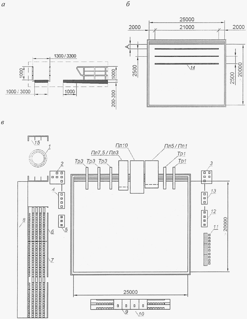 Размеры ванн, м | Произвольно, но не более 60 м2 | 25 x 10 - 16 | Произвольно | 50 x 25 25 x 25 25 x 16 | 50 x 25 25 x 25 25 x 16 | 50 x 25 30 x 25 | 30 x 25 | 50 x 25 | 36 x 25 | 25 x 25 | 25 x 20 |