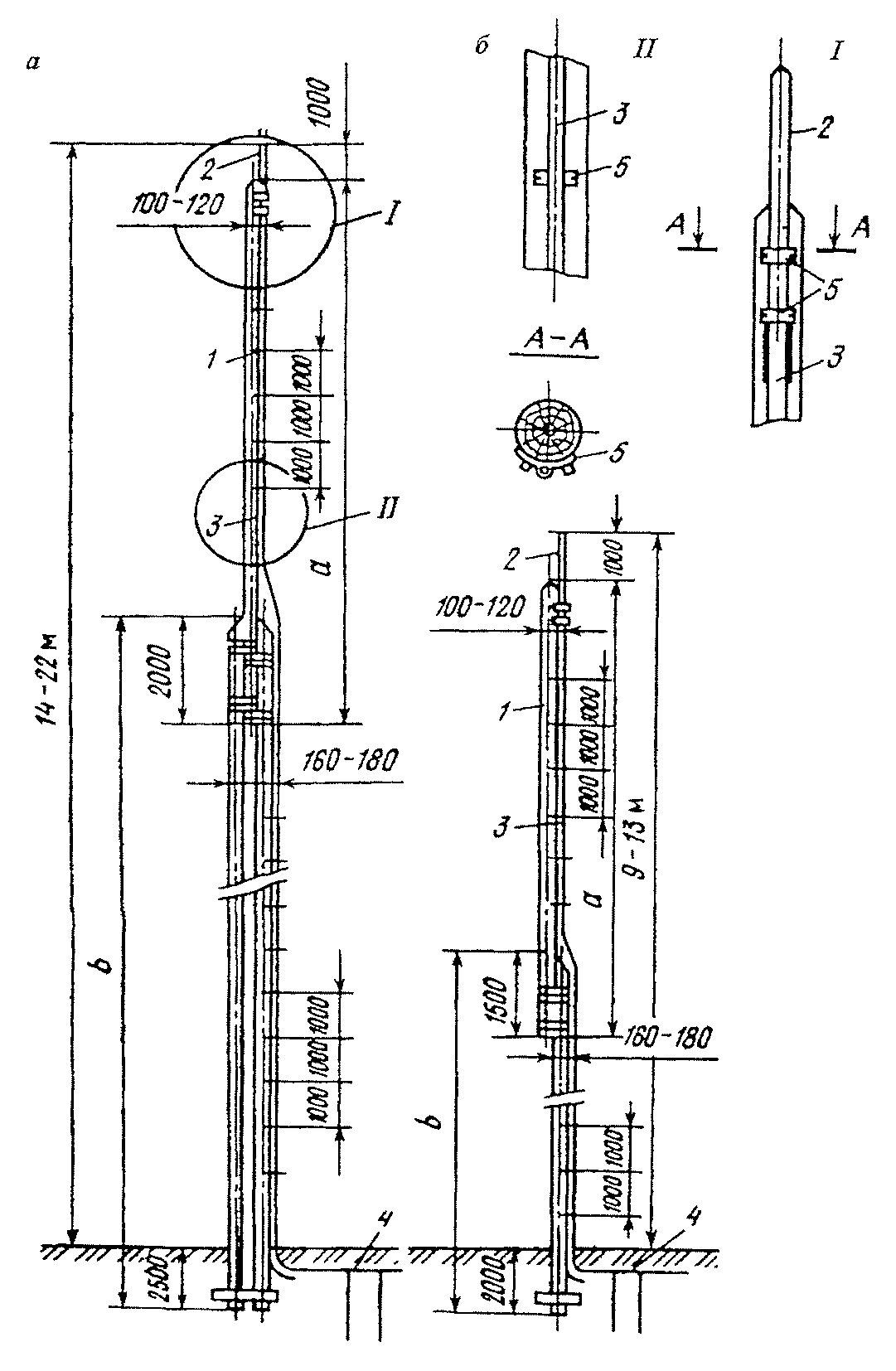 пп. 8.1.1, 8.1.3). Устройство стержневых молниеотводов на деревянных опорах: а - двух: б - одной.