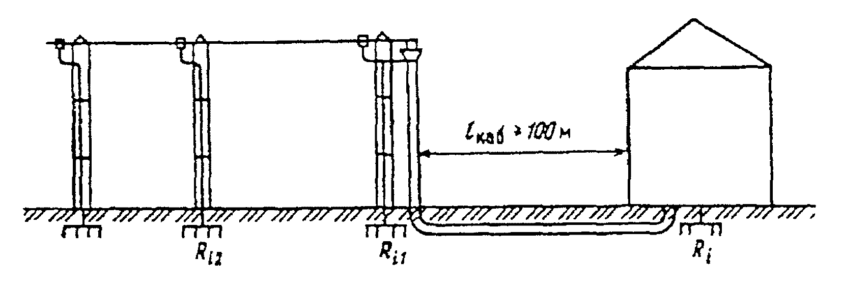 п. 11.12). Схема измерения сопротивления заземлителей способом трех измерений.