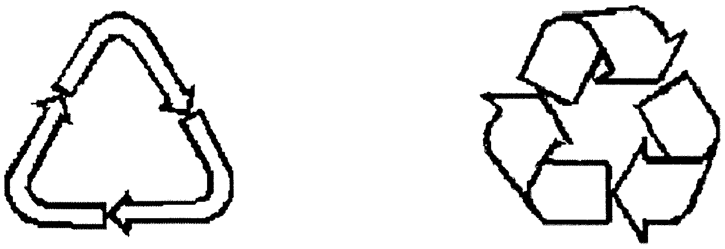 Примечания: 1. Знаки идентификации проставляются следующим образом: внутри петли Мебиуса - цифровой код и (или) буквенное обозначение, под петлей Мебиуса -