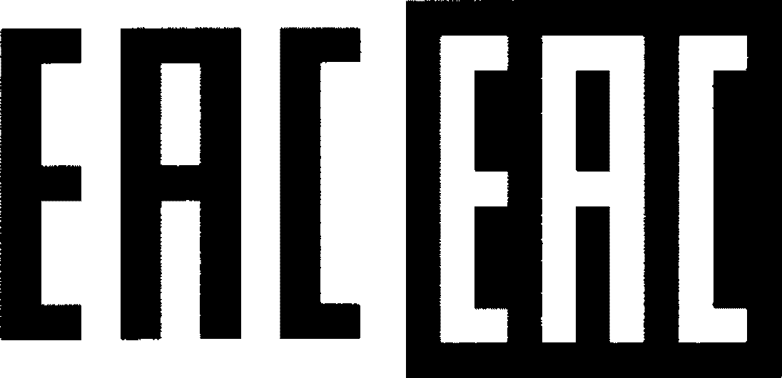 Изображение единого знака обращения продукции на рынке Евразийского экономического союза представляет собой сочетание трех стилизованных букв "E", "A" и "C", графически исполненных с применением прямых углов, имеет одинаковые высоту и ширину, составляет точные пропорции квадрата на светлом (рис. 1) или на контрастном фоне (рис. 2).