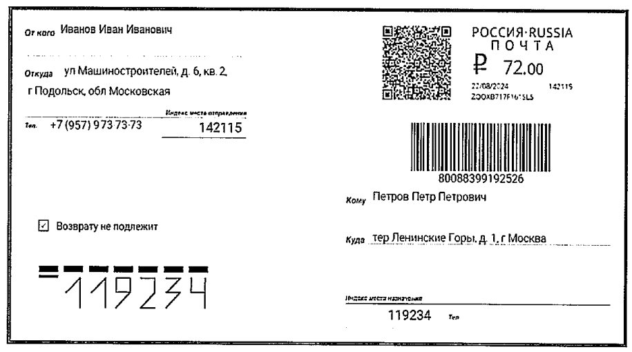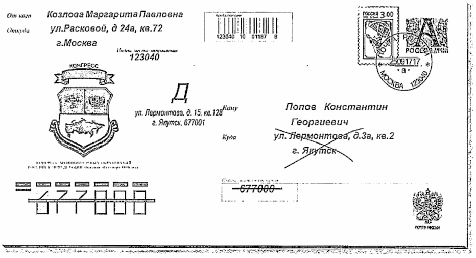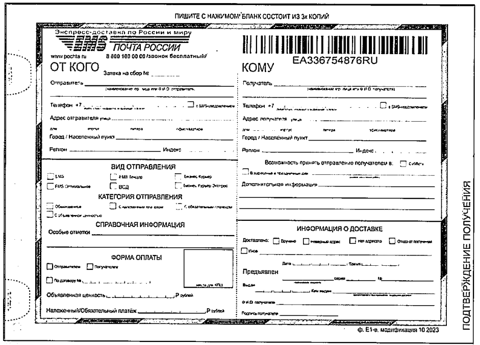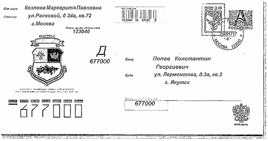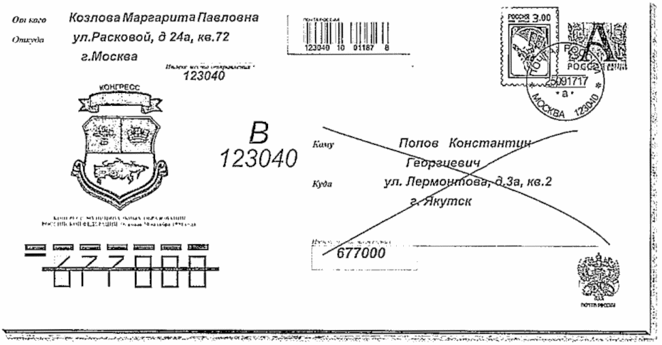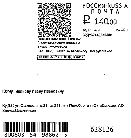 │АО "Почта России", 125252, г. Москва, ул. 3-я Песчаная, │
